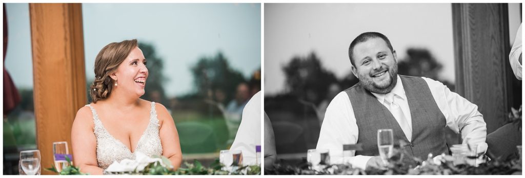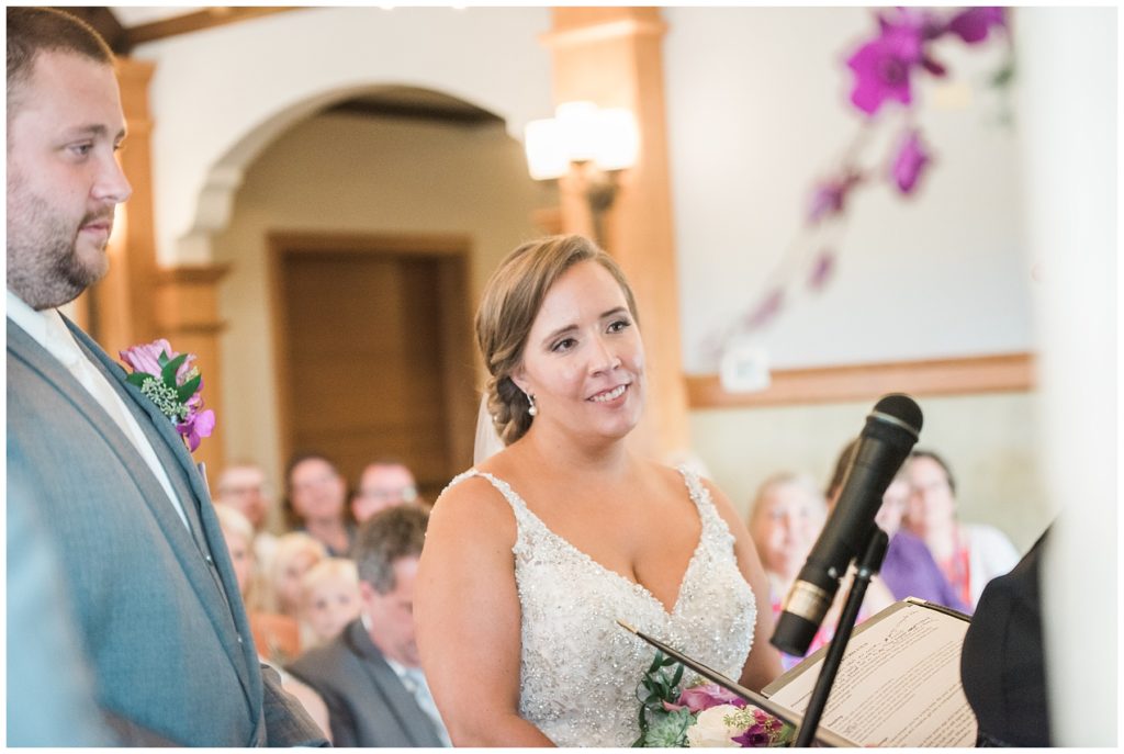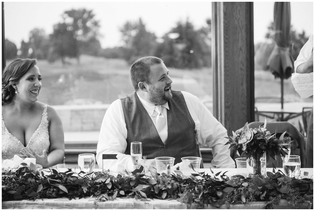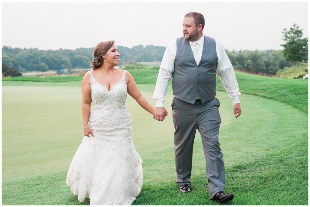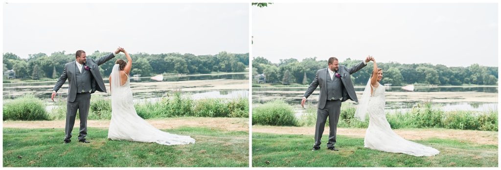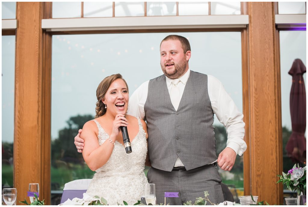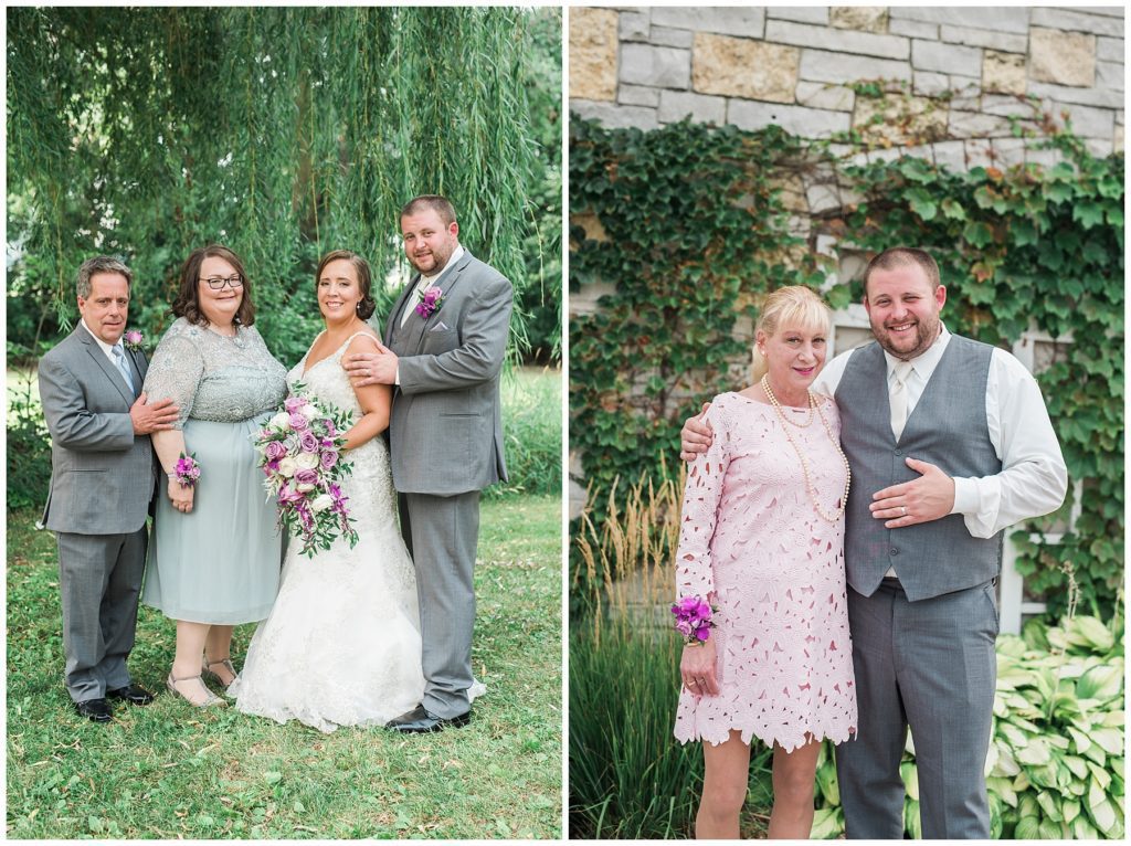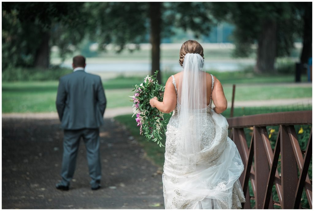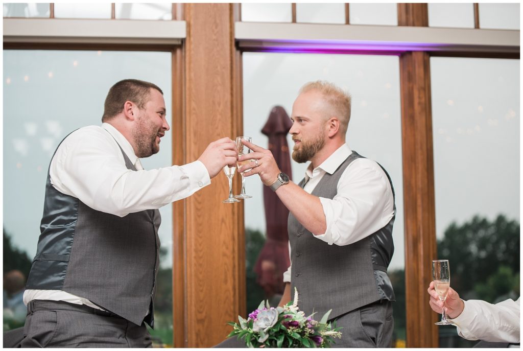 Their beautiful August wedding day was filled with glorious sunshine and friends and family who joyfully watched them exchange their wedding vows at Keller Golf Course in Maplewood.  Molly’s elegant ivory Essense of Australia gown from Raffine Bridal paired perfectly with the elegant lavender Bill Levkoff dresses her bridesmaids wore also from Raffine Bridal. Their beautiful summer bouquets with succulents, roses and orchids from Sweet Peas Floral were a perfect pop of color against the dresses.