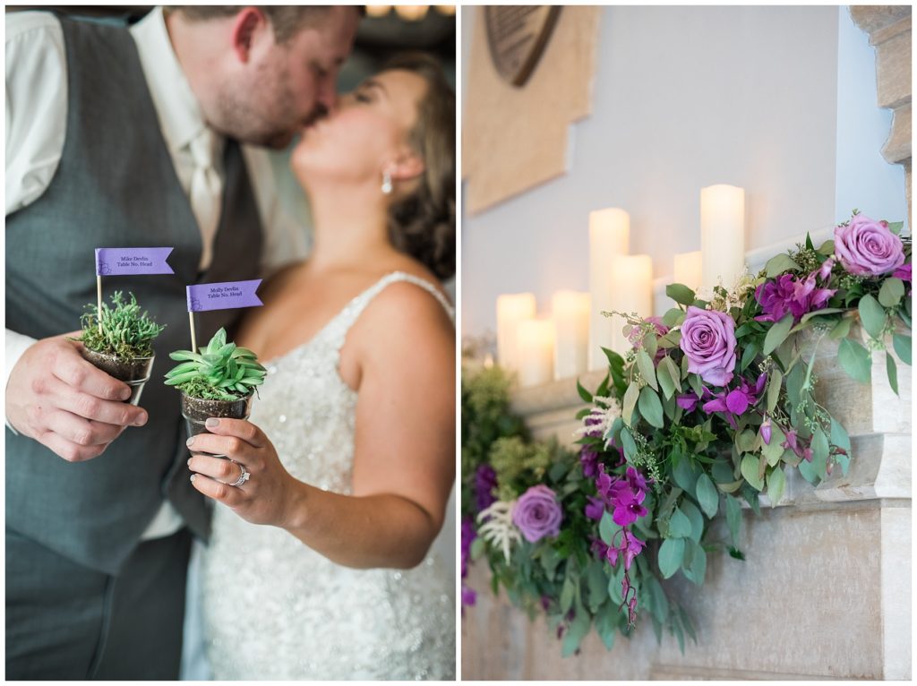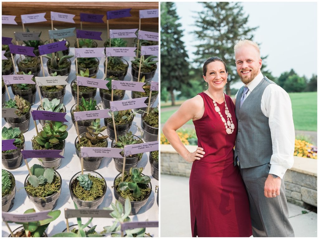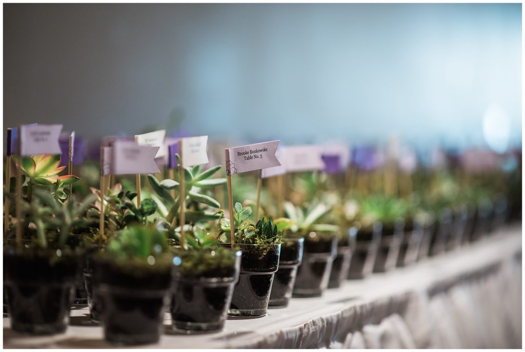 Lancer Catering provided an incredible meal, while Buttercream knocked it out of the park with a delectable chocolate and Bailey’s cake.  The centerpieces on each of the tables contained succulents grown individually by Molly’s mom through the year and the theme continued as guests entered to find their seating.  Individual succulents with a name card attached help friends know which table to go to.