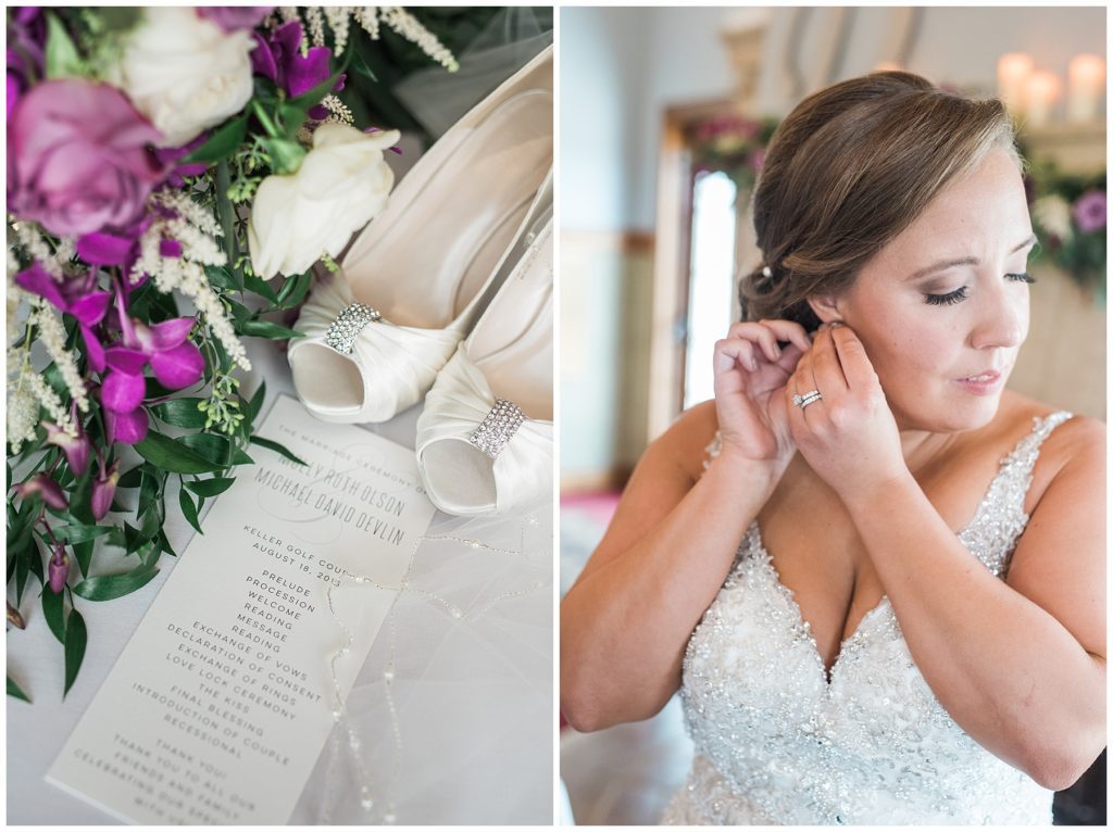Vendors for the day included::// Ceremony and Reception:: Keller Golf Course// Hair:: Kelly O’Conner from Beau Monde Salon// Make-up:: Chris from Gunpowder and Gloss //  Florist:: Sweet Peas Floral // Wedding Dress:: Essense of Australia from Raffine Bridal // Bridesmaids Dresses:: Bill Levkoff purchased at Raffine Bridal // Men’s Ware:: Savvi Formalwear//Rings:: Shane Co. // Caterer:: Lancer Catering// DJ:: Instant Request  // Bride’s Shoes:: David’s Bridal //  Baker:: Buttercream Bakery // Stationary:: Get Krafty with It //