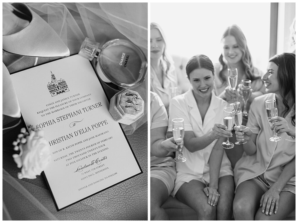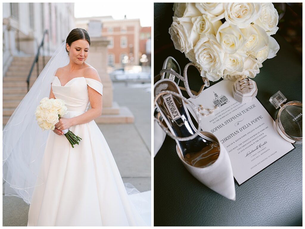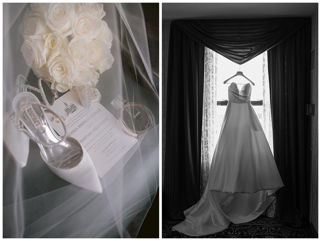 The day began at the historic Saint Paul Hotel, where Sophia and her bridesmaids were pampered by the talented Marissa from Styled by Marissa and Amelia with Soft Glow Makeup. Champagne flowed freely in the L’etoile Bridal Suite as Sophia and her bridesmaids got ready and Sophia’s mother helped her into her elegant dress from Che Bella Boutique and her classic white shoes from Badgley Mischka.