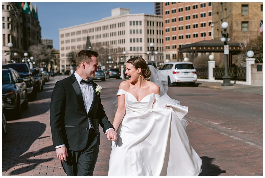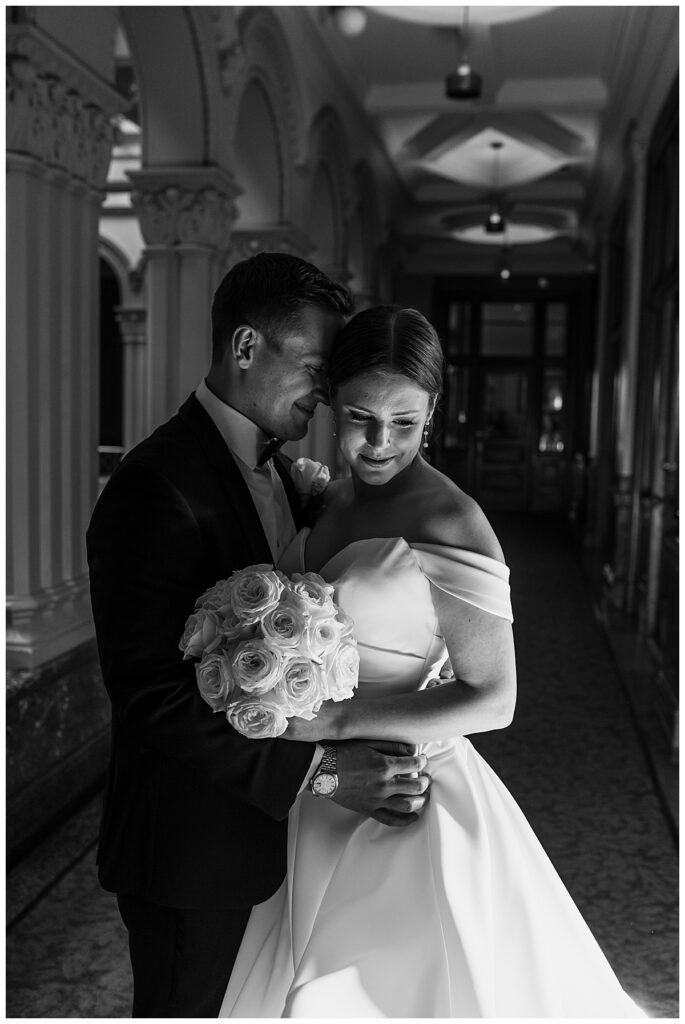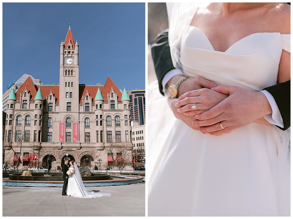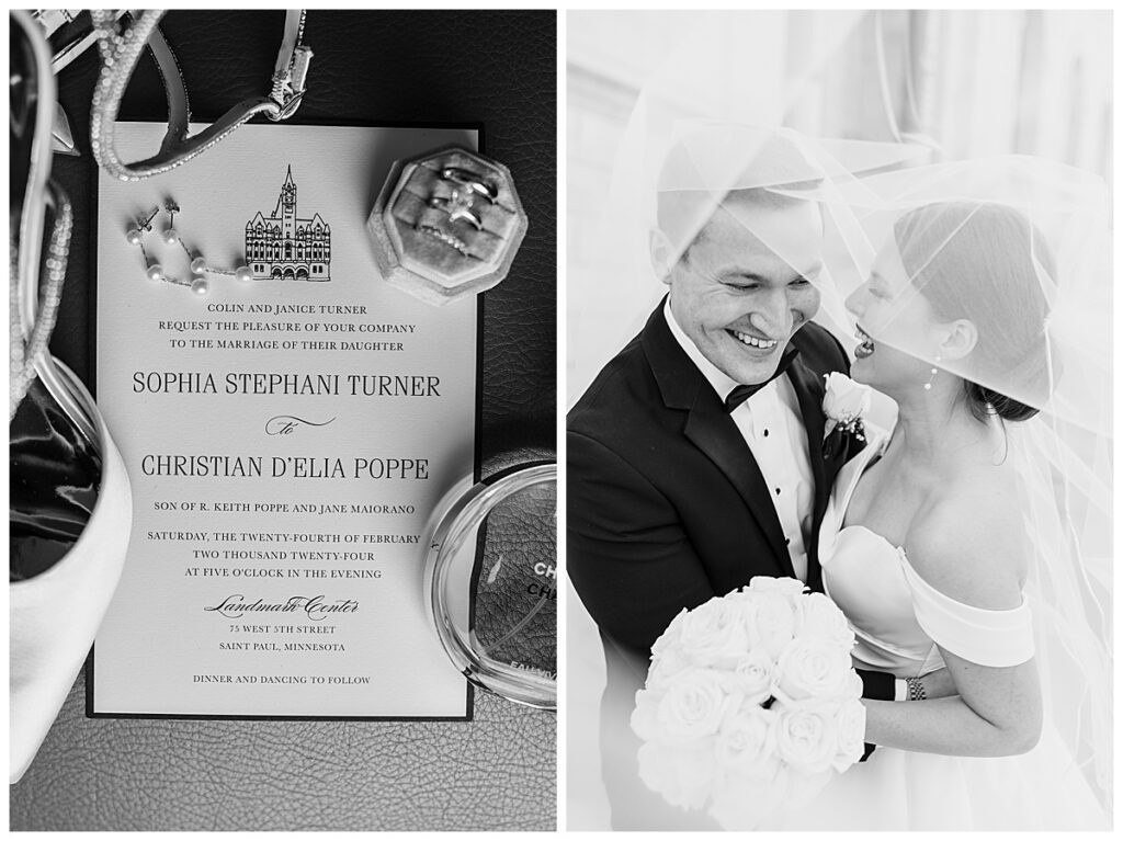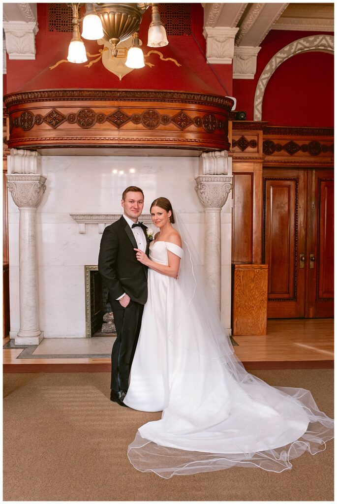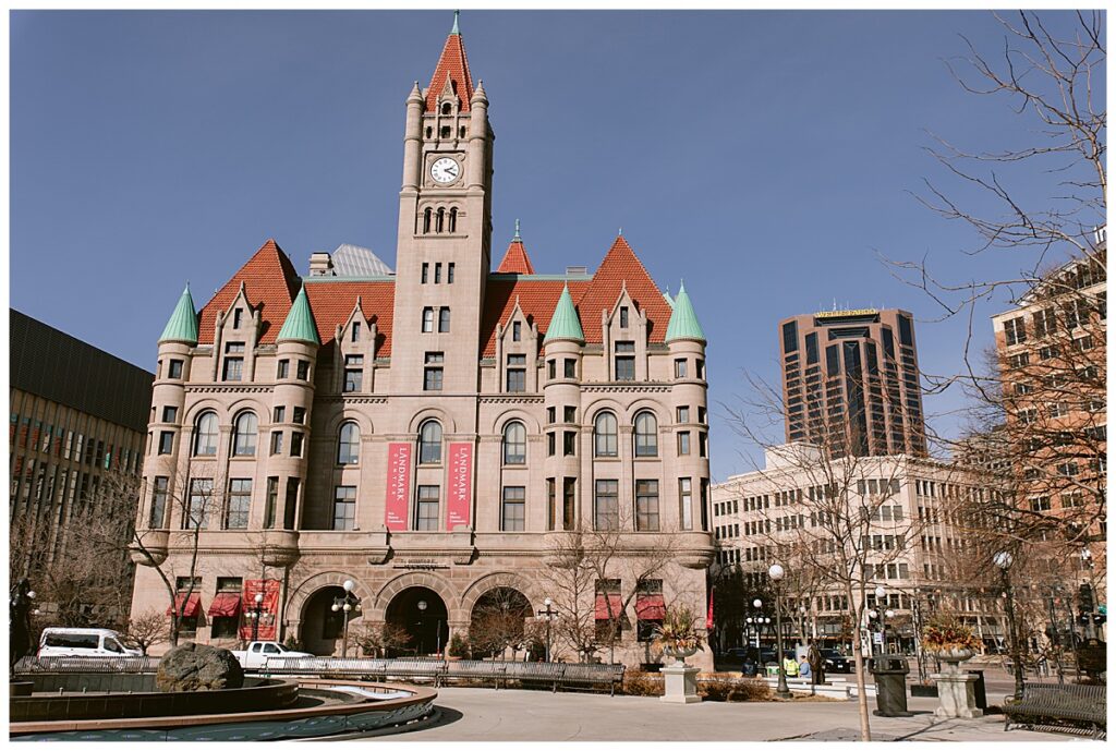 In the heart of downtown St. Paul, amidst the timeless grandeur of the Landmark Center, Sophia and Christian’s love story unfolded on a crisp and sunny February day. Planned meticulously by Cat of Lupine & Co. Events, their wedding was a harmonious blend of classic elegance, romance, and heartfelt moments.