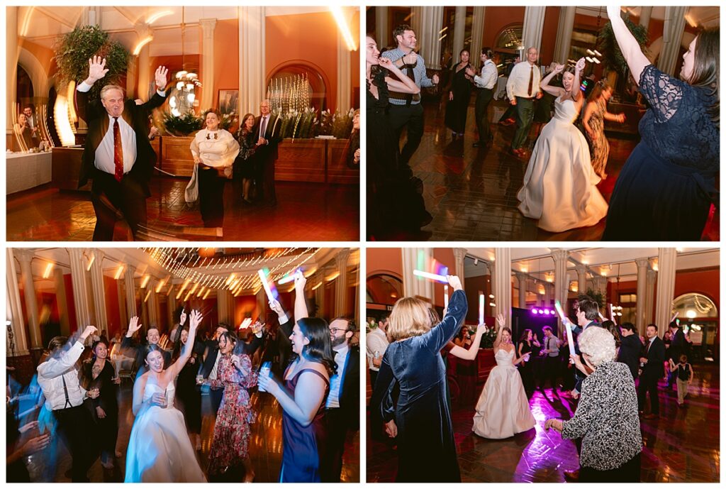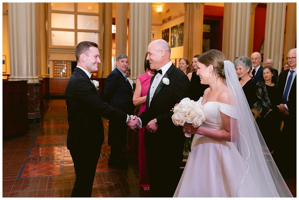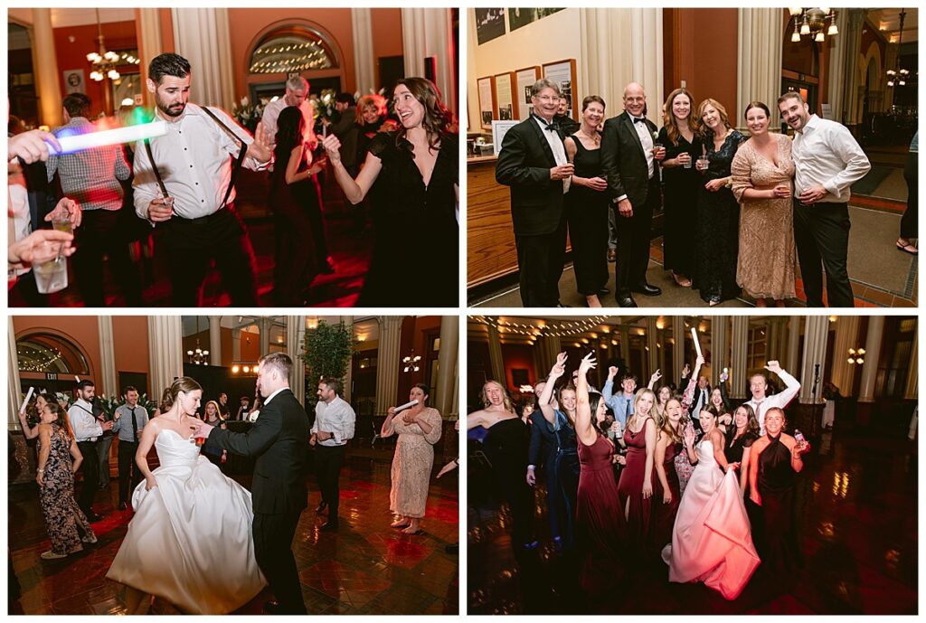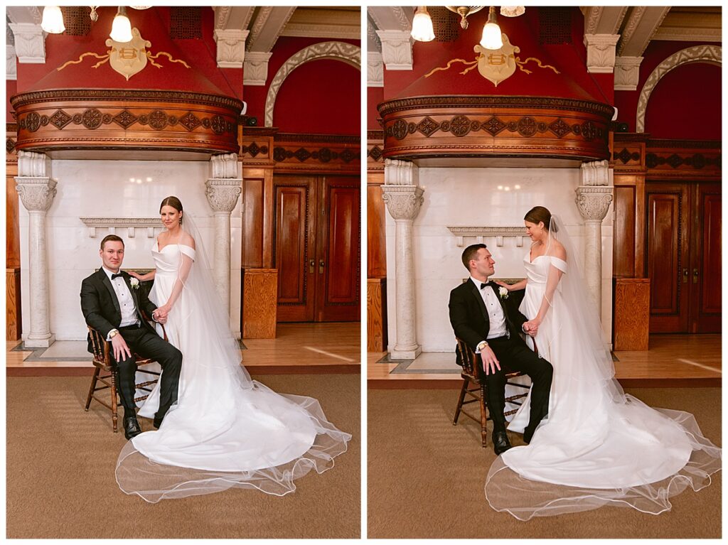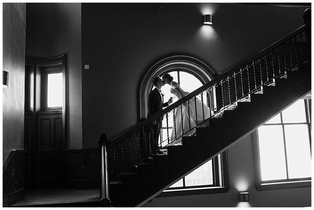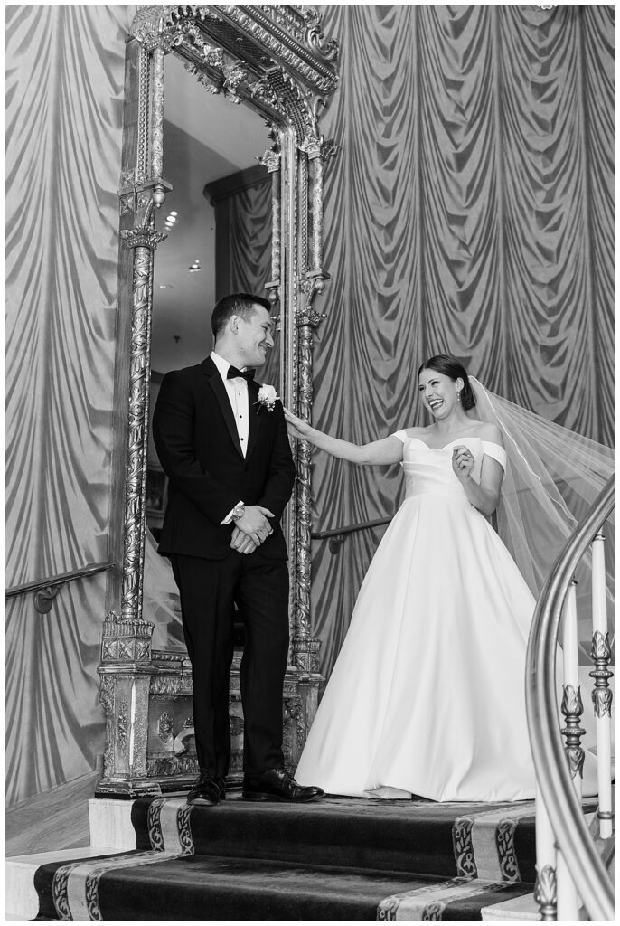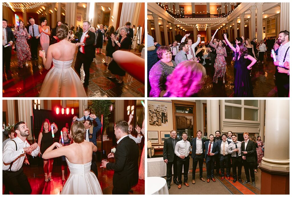 Back inside the Landmark Center, the couple and their wedding party explored the historic beauty of the building making sure to take photos in staircases and old courtrooms. From there, the family met the couple for family photos in the beautiful white entry way of the building.