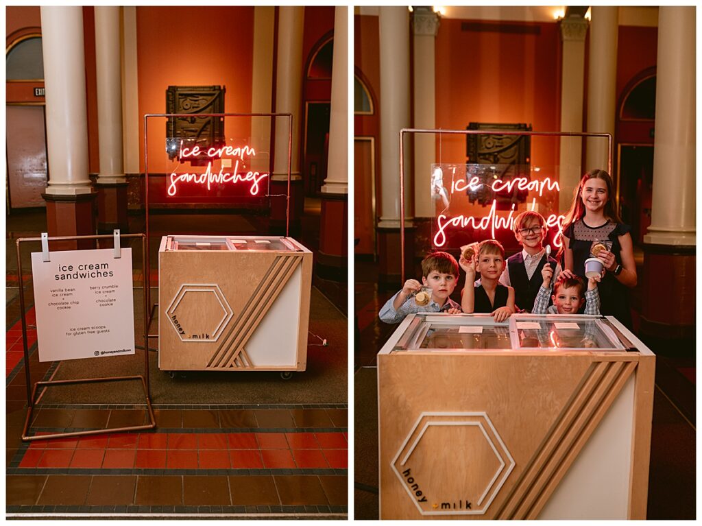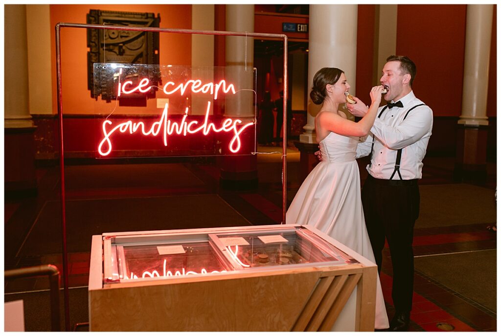 Following the ceremony, guests moved to the second floor for cocktail hour, where Sophia and Christian warmly greeted their loved ones and the reception kicked off with an incredible feast from Lake Elmo Catering Company. Speeches and ice cream sandwiches from Honey & Milk followed, while Instant Request invited Sophia and Christian on the dance floor as husband and wife for their first dance and then kept the dance floor alive as the night progressed.