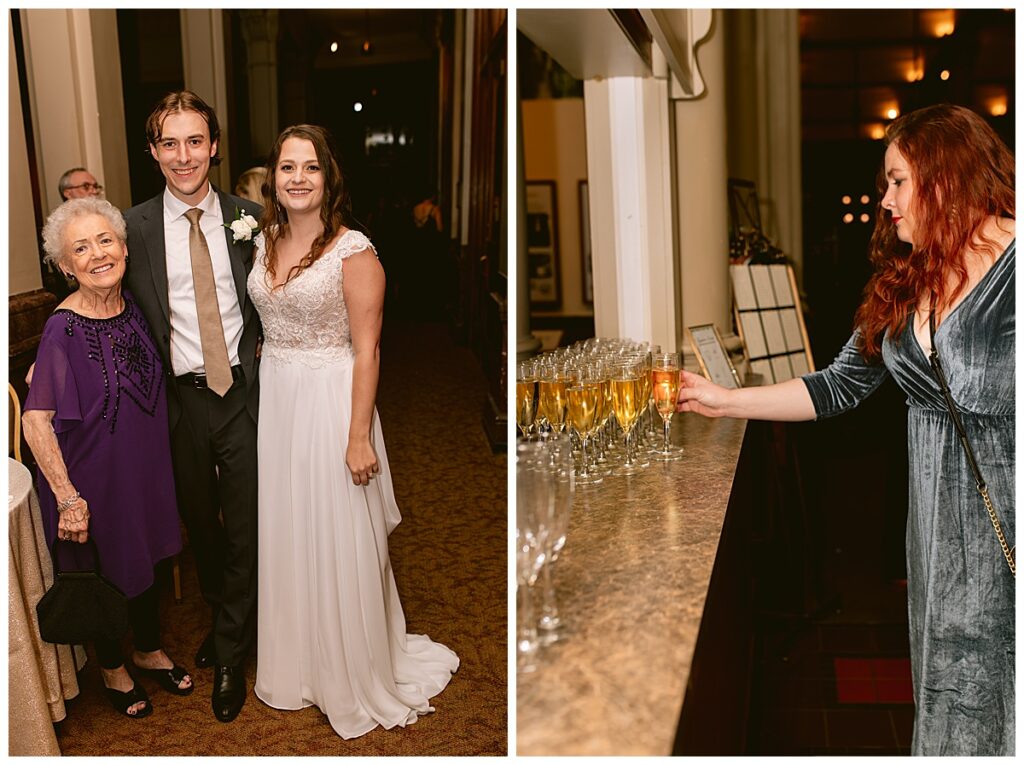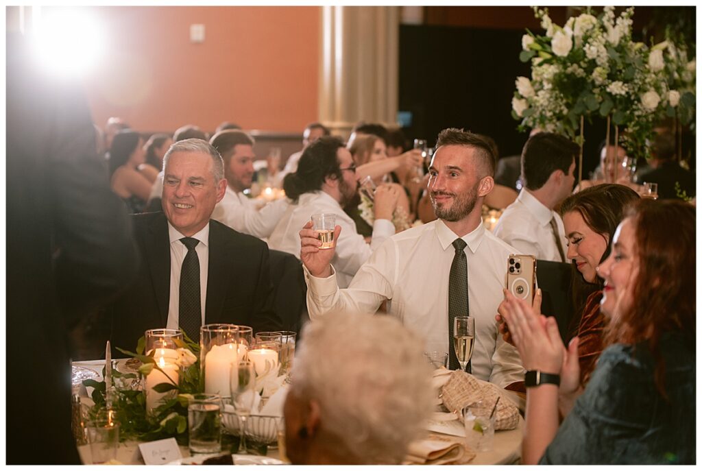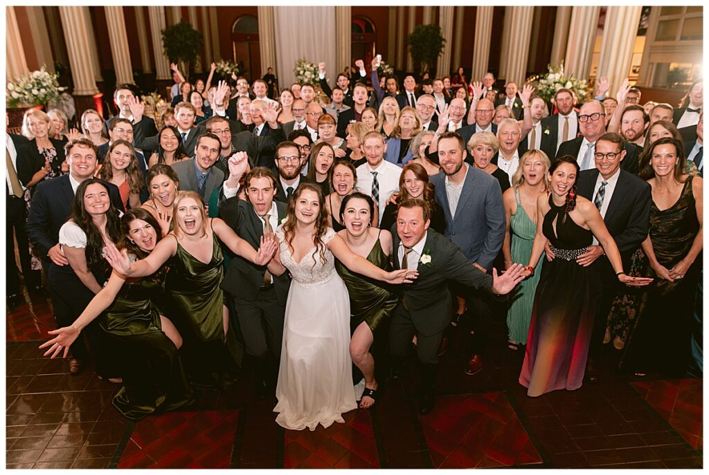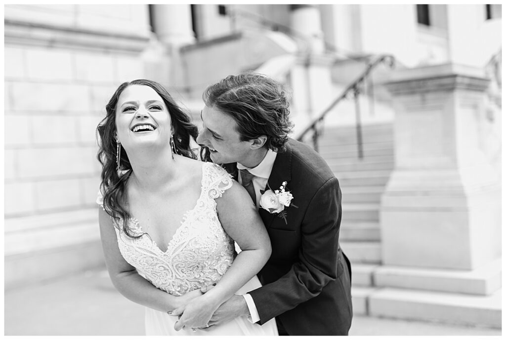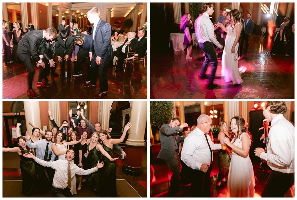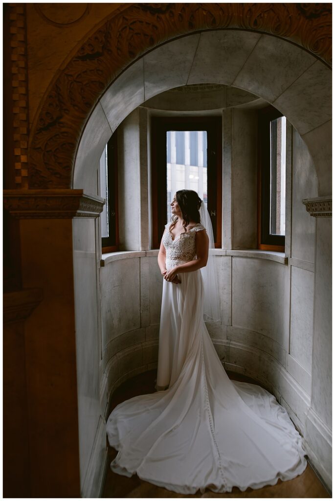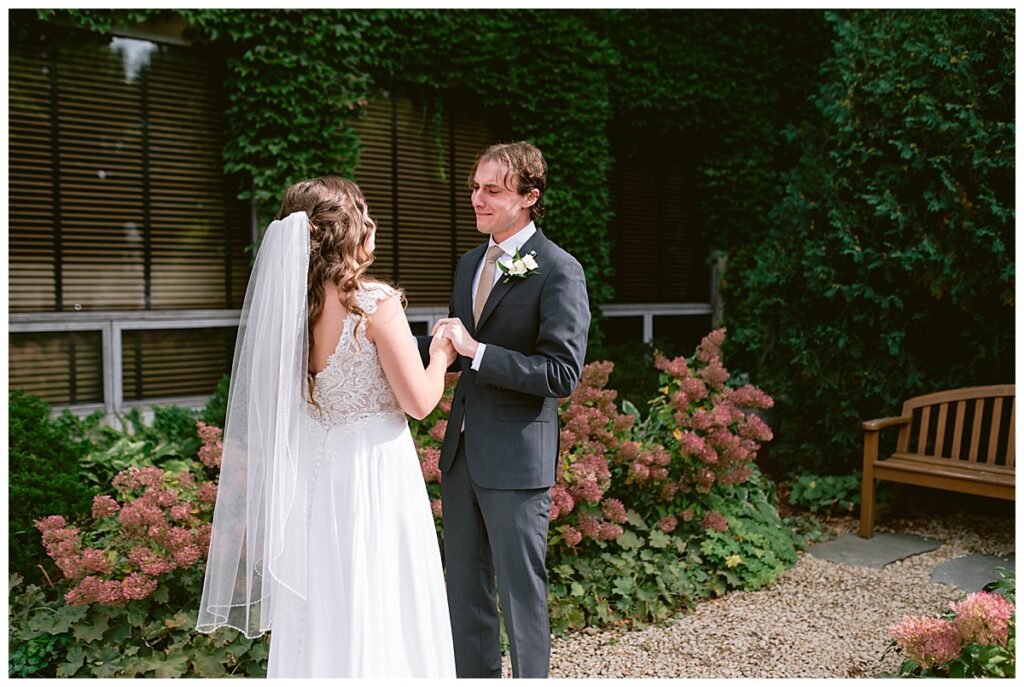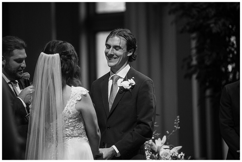 The wedding party then joined us for photos in Rice Park, the James J Hill Library, and in front of the Saint Paul Hotel. The women looked beautiful in their olive green dresses from David’s Bridal, while the men supported dapper grey suits from The Suit Shop. Family then joined us for more photos, and then we headed inside to get ready for their ceremony.