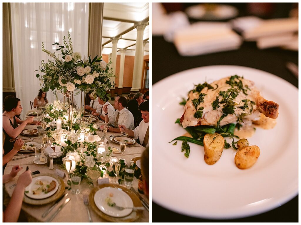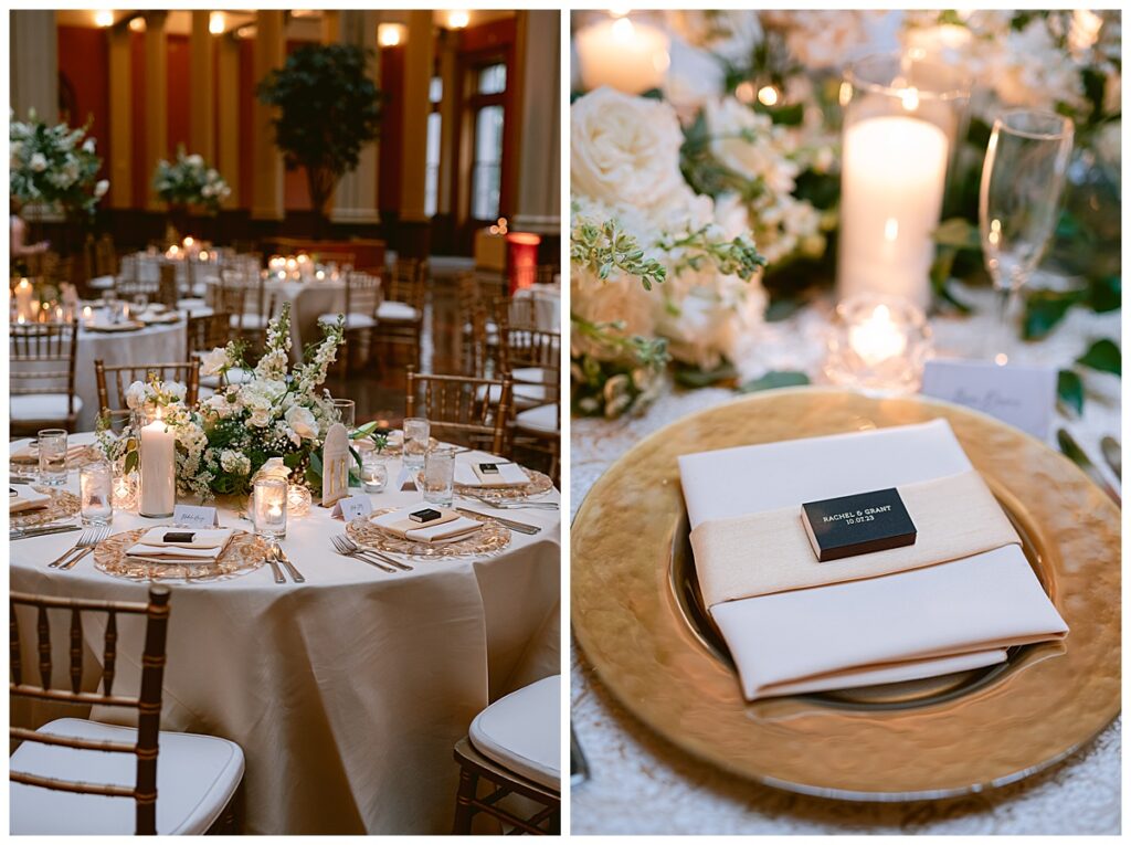 Heidi from Jenna Culley Events made sure the day ran smoothly, and Jamie of Wilderland Floral created the most stunning florals for the day. Linen Effects provided the gold chairs and decor that matched Rachel’s vision for the day. Laurie Leigh Harpist provided beautiful music as Rachel walk down the aisle, and Matt Deboer, a friend of the couple, married Grant and Rachel. The two exchanged rings; Grants from Buchkosky Jewelers and Rachel’s gold band from her grandmother. As the two were pronounced husband and wife, guests cheered and the couple took a few moments to themselves. D’Amico Catering provided an incredible meal and dessert table for guests, while Mitch from Instant Request brought the party to life.