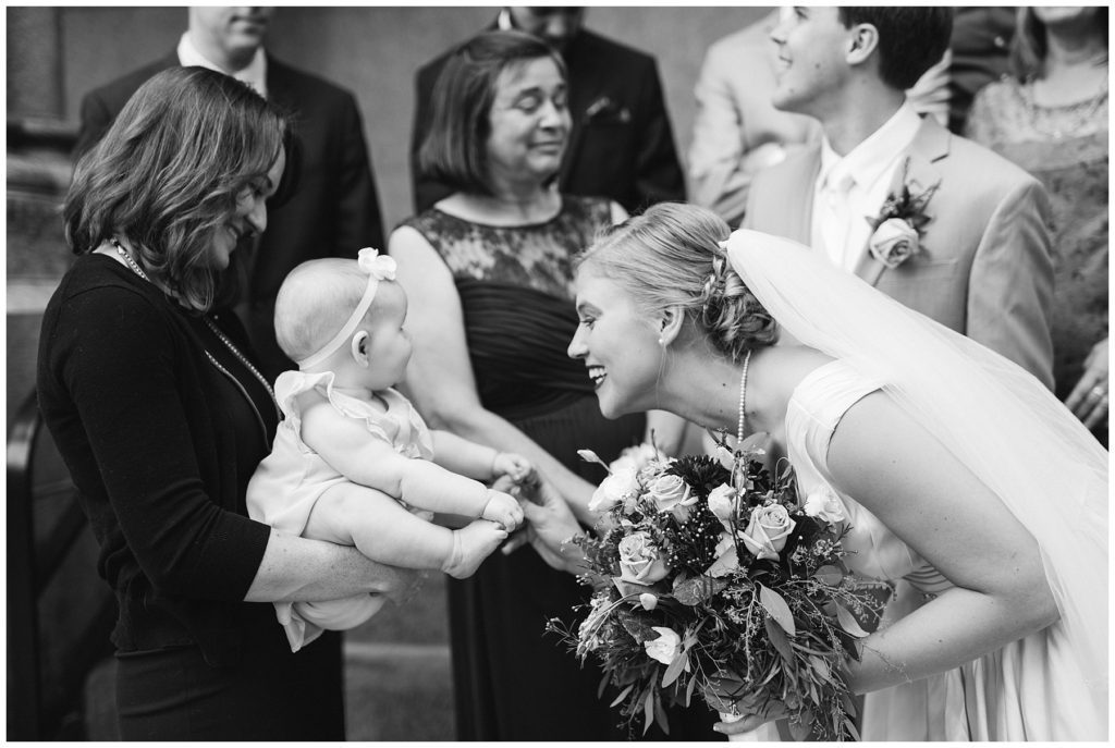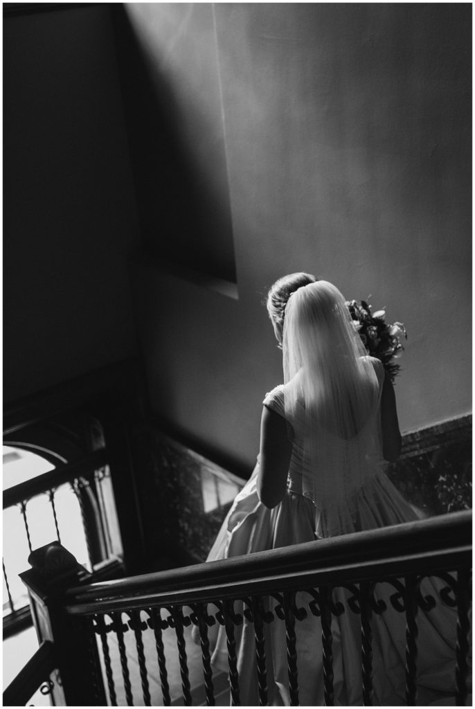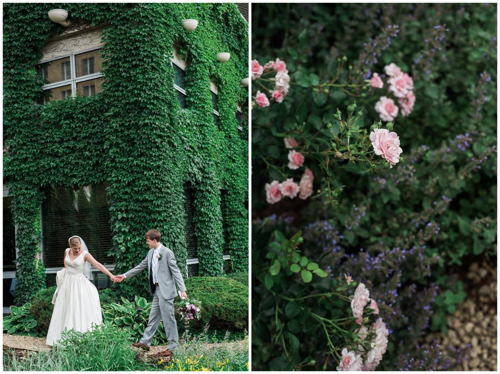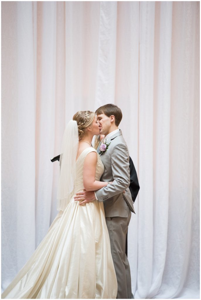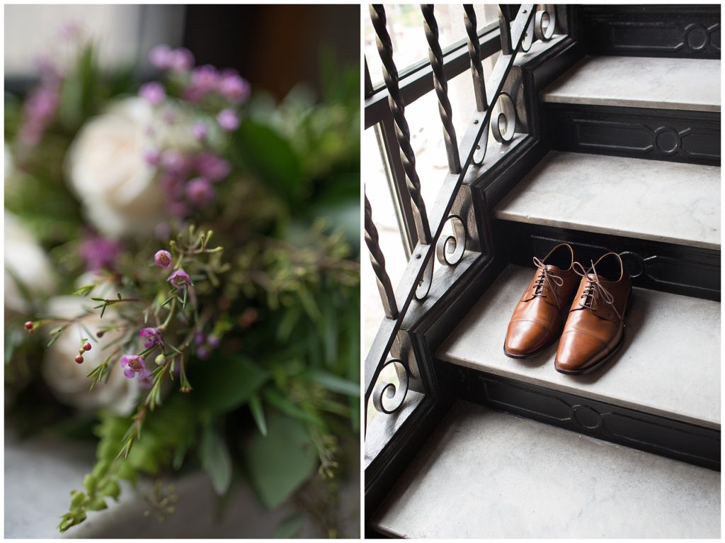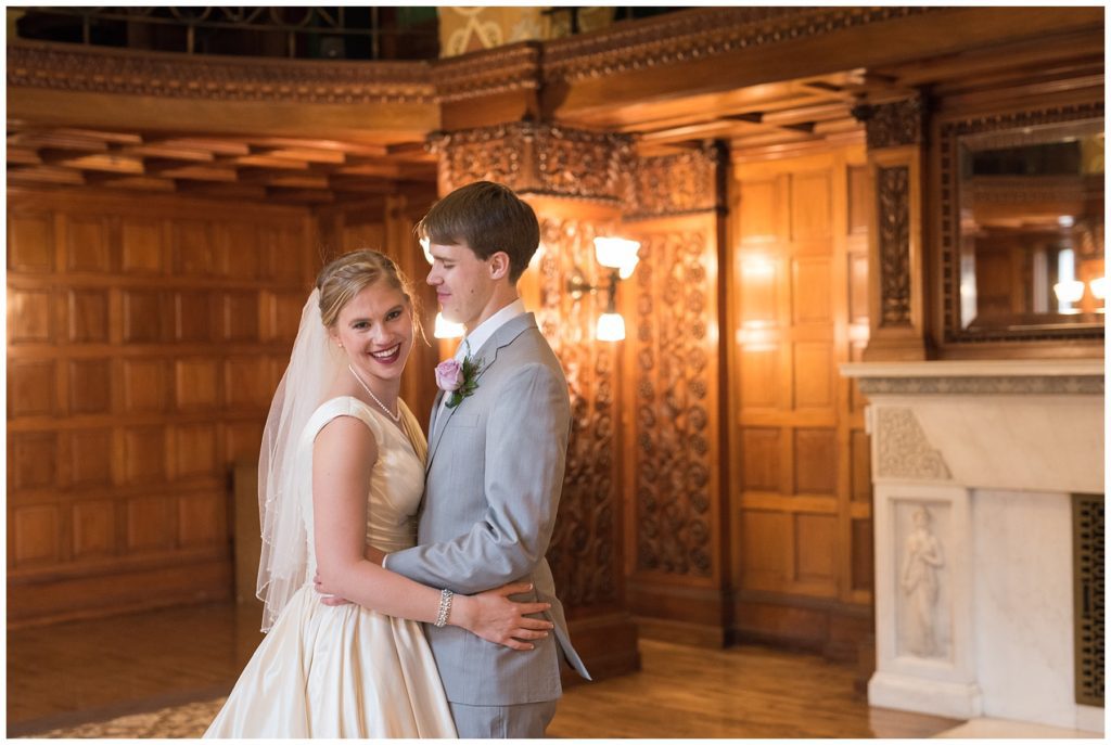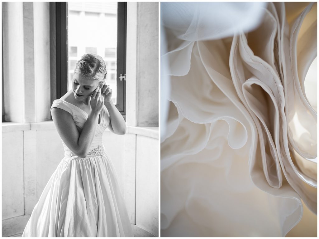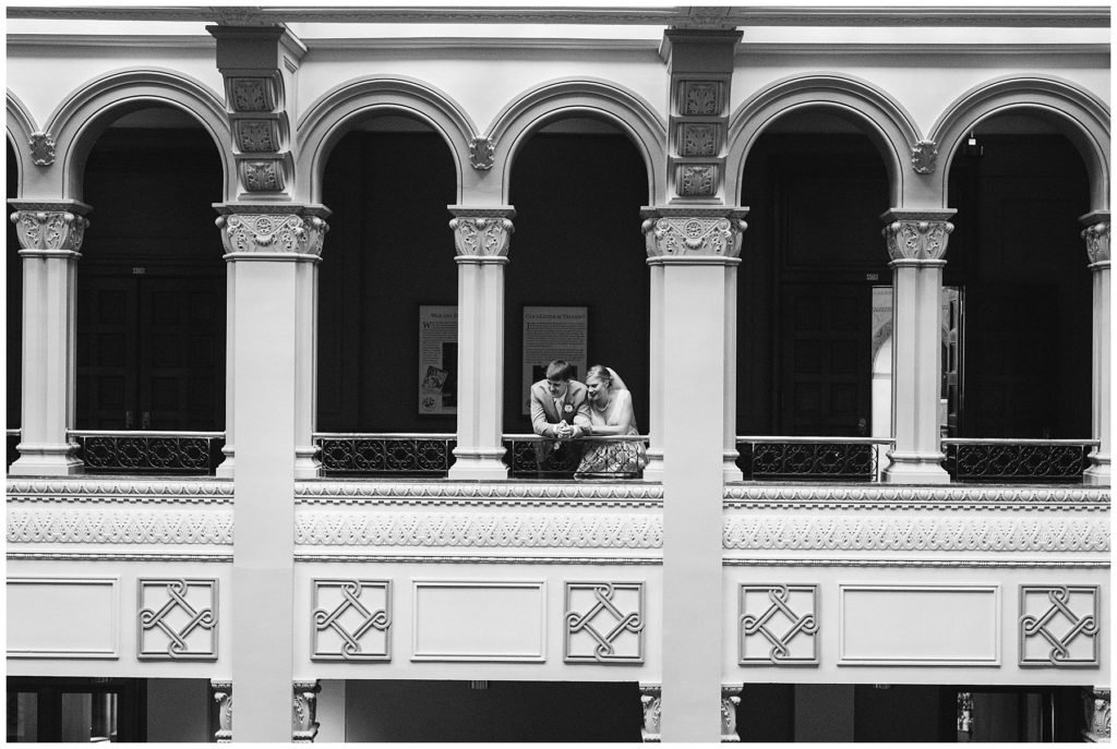 Their wedding day was just as beautiful. Surrounded by family and friends from all over the world, the two were wed in the historic Landmark Center of St. Paul. Their summer evening wedding could not have been more comfortable as the couple walked around the streets of Rice Park and along the river for photos. Rachel’s elegant satan Allure dress was stunning against Dan’s Josph Abbound grey suit. The violet and green bouquets from Florals by Claire added a stunning pop of color against the purple bridesmaid dresses from the Wedding Shoppe. Rachel and Dan both added heirloom pieces of jewelry to their day. Pearl earrings that Rachel’s mother on her wedding day, her necklace was her paternal grandmother’s and her bracelet was her maternal grandmother’s and a tie Clip that Dan’s grandfather passed on to him. Their ceremony was inside the Landmark Center and guests were invited to share in the festivities of dinner provided by BRIE catering and dancing DJ’d by Fulton Productions.