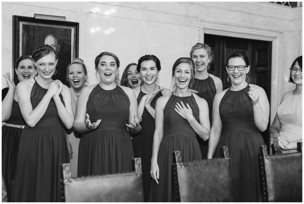 Ceremony and Reception:: Landmark Center of St. Paul// Hair::Ehr Styling // Make- up:: Gunpowder ‘n Gloss // Caterer:: BRIE Catering // Florist:: Florals by Claire// DJ:: Kyle from Fulton Productions // Stationary:: Vista Print // Wedding Dress:: Allure purchased from Bella Bridal Boutique // Bridesmaid Dresses:: Jasmine purchased from The Wedding Shoppe// Men’s Designer:: Joseph Abboud from Men’s Warehouse// Rings:: Wedding Day Diamonds and Kay Jewelers// Jewelry:: Rachel’s grandmothers nd mother// Dan’s Tie clip:: Dan’s grandfather// Dan’s tie:: Macy’s