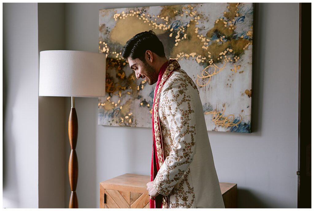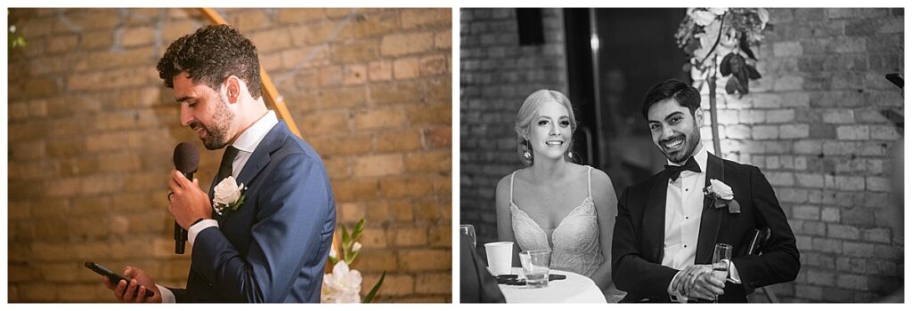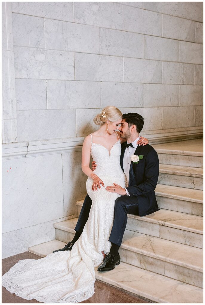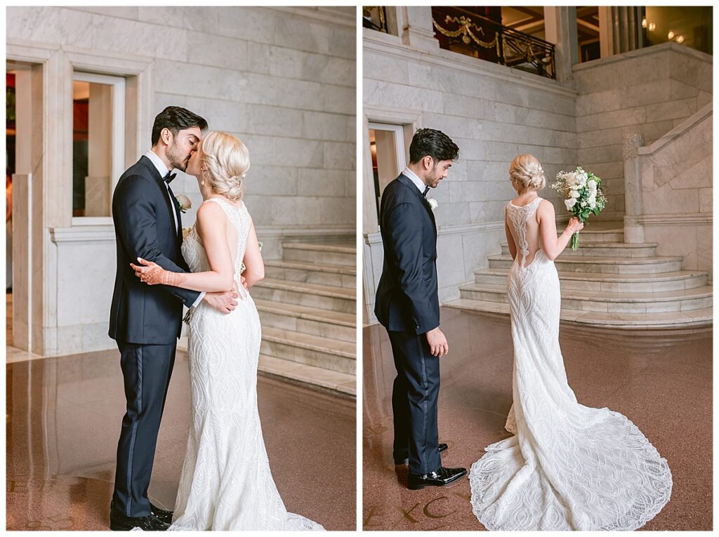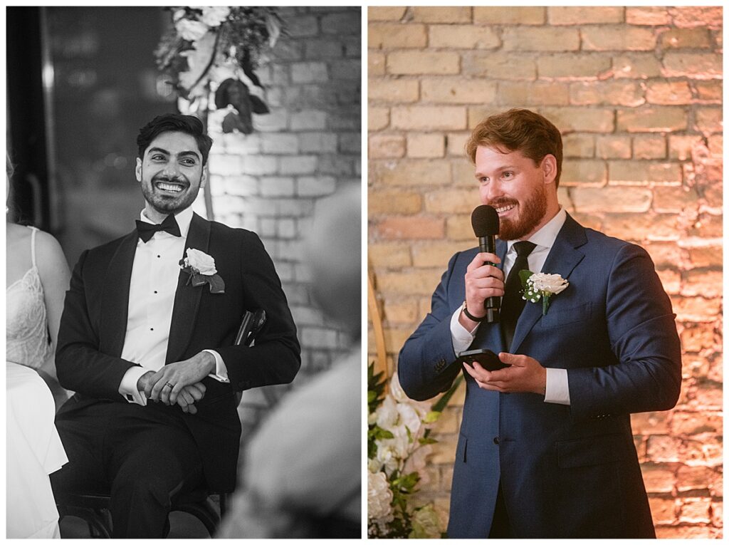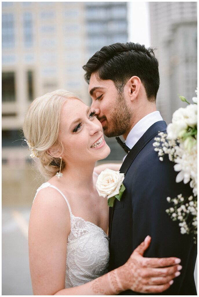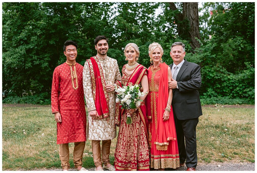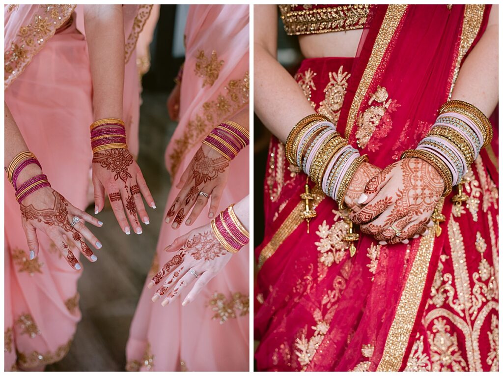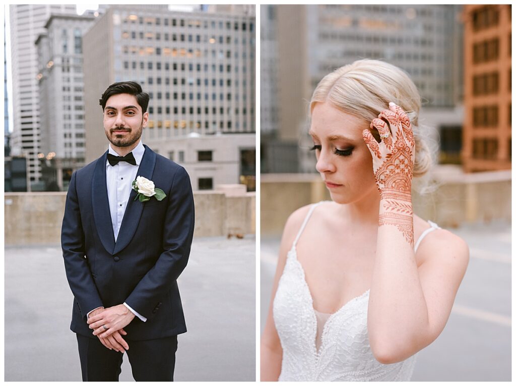 Both Heather and Ryan chose to get married in 2021 in Heather’s parent’s backyard with only family in attendance and decided on 2022 being the year they would host a large celebration for both family and friends from near and far. The couple chose to host their ceremony and reception at the industrial Lumber Exchange in downtown Minneapolis. Being that Ryan comes from an Indian heritage, the couple chose to start the day in Indian garb. Full of color and vibrance and representing good luck and happiness, Heather wore a traditional red and gold sari and Ryan word a beautifully embroidered Kafni. The bridesmaids and groomsmen also wore wedding sari’s and Kafni.