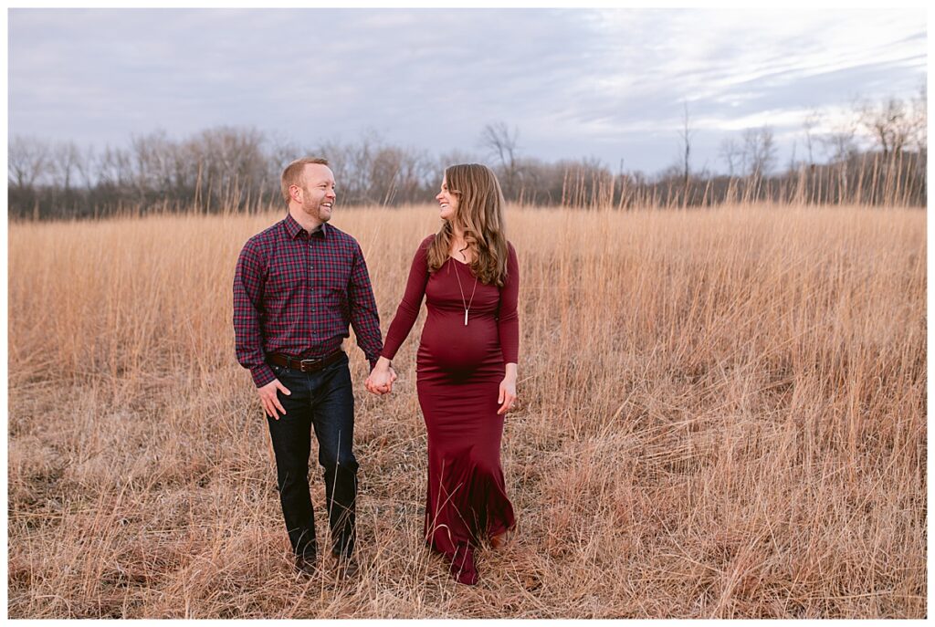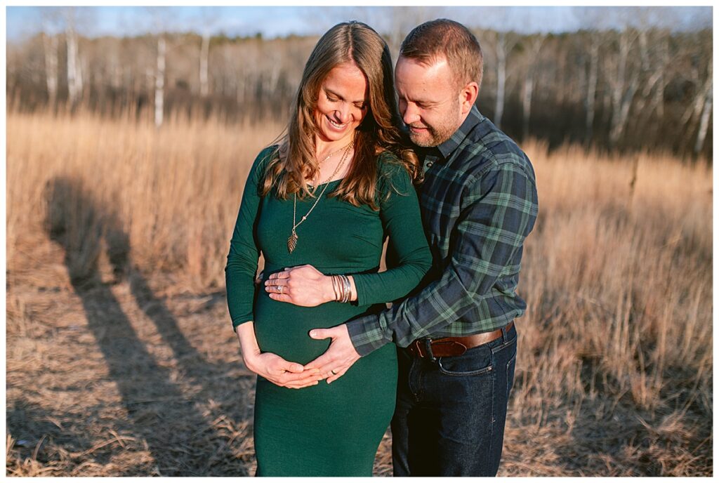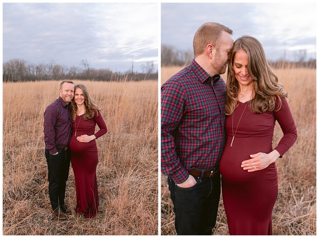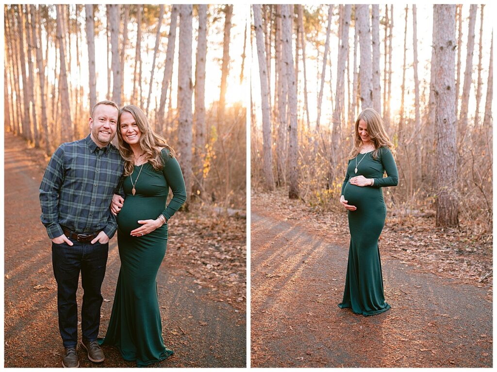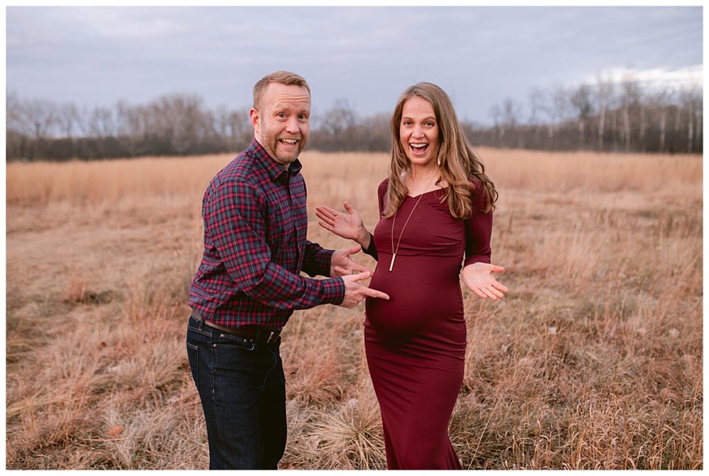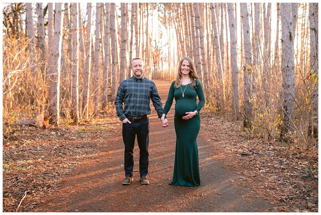 On a sunny day in Shoreview, MN, the weather seemed to mirror the warmth and excitement radiating from Marisa and Travis as they eagerly awaited the arrival of their little one. The picturesque location provided a perfect backdrop for the maternity session, with the sun breaking through the clouds just in time to cast its glow upon this growing family.