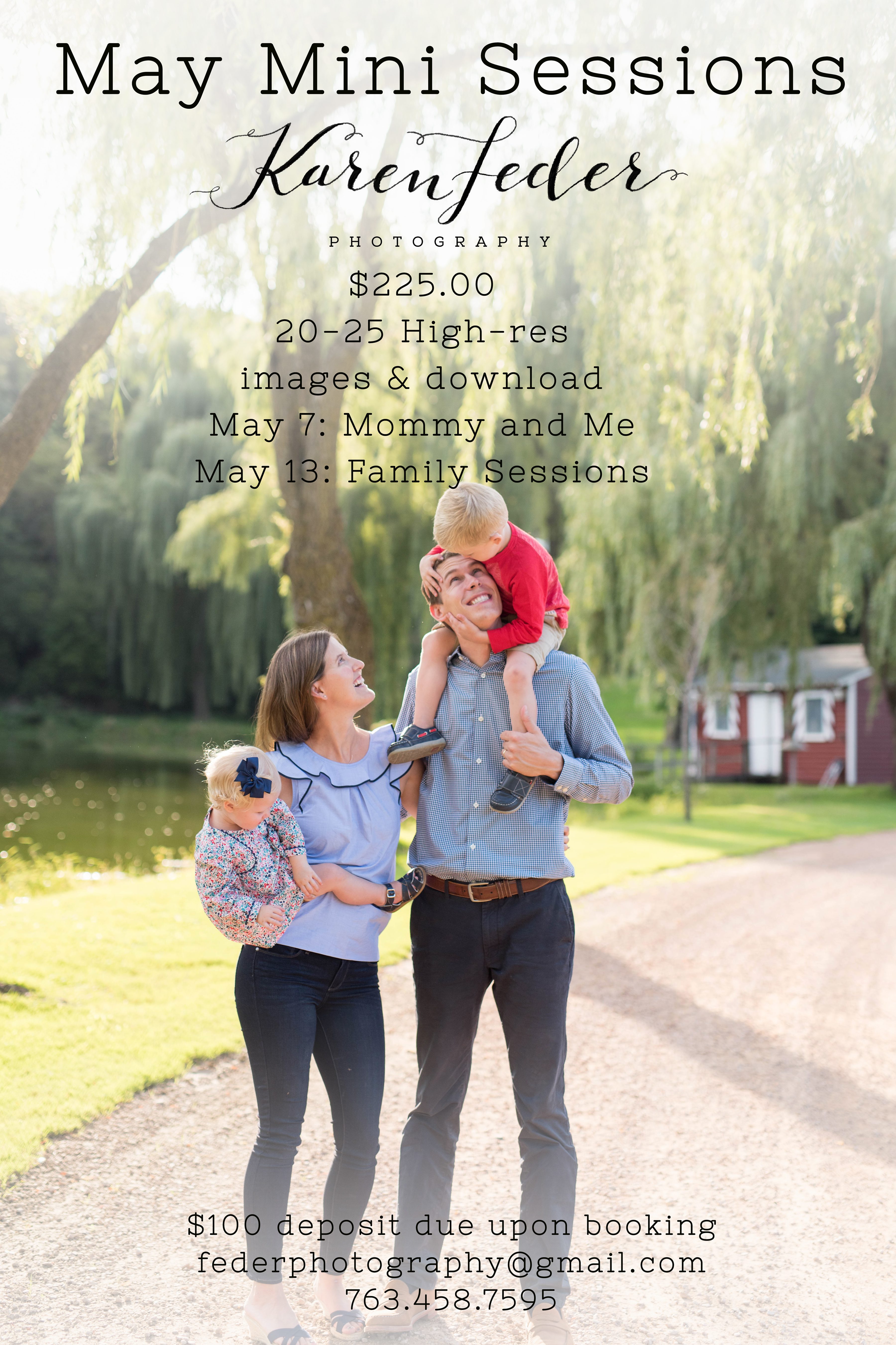 It is that time of the year again when spring is in the air and sessions are being booked! This year I will be doing two different sessions. The first is a GREAT gift to give mommas for Mother’s day; a photo shoot of the mommy’s and their children. Dads you are welcome to jump in these photos, but I will be teaming up with a florist to bring some floral crowns to add to the session. Morning and afternoon sessions are available. The second will be for families and will take place in the afternoon. These sessions tend to book quickly, so if you are interested, please let me know! I can’t wait to see your family!