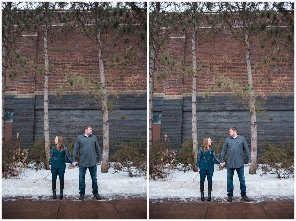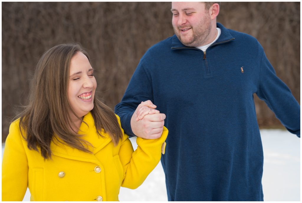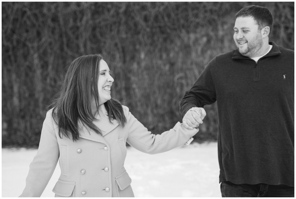 It was clear that when I met Mike and Molly I knew we would get along well. Free flowing conversation, talk of loving summer and all around kind people, their winter engagement session was another indication of how well we got along. They brought their sweet little Corkie, Fulton, and he only added to the fun of their winter engagement session. I simply can not wait to see them again in August when it will be nice and HOT and we won’t be scrambling to get back into warm coats!!