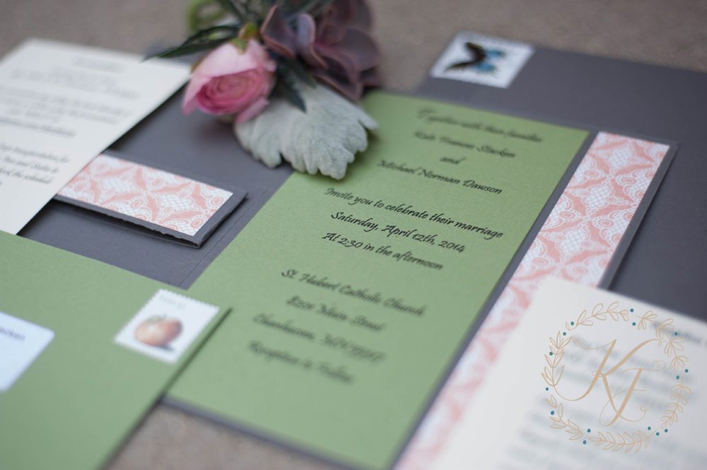 It couldn’t have been a better day! All the inches of snow had melted, the sun was shining, the birdies we singing and Kate and Mike were getting married! The spring details of this wedding were soft and airy and it was a perfect invite to bring in the warm weather. More to come of this beautiful wedding tomorrow!