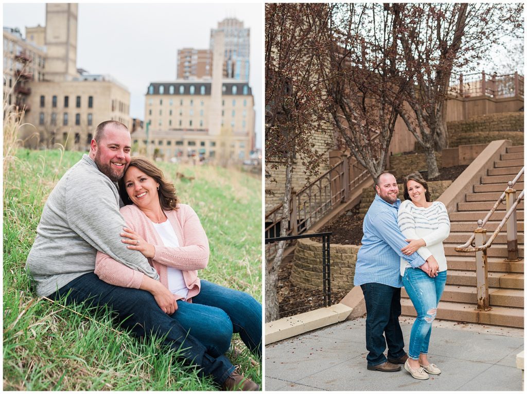 We scheduled their session back in February when the snow was still on the ground and forgetting what the spring sun felt like! Tony, Tami and I headed downtown on a Friday evening when Garth Brooks was preforming and the weather had hit a beautiful 65! The hustle and bustle of the City was a warm greeting for us all and we easily strolled the streets of Mill Ruins Park, and enjoyed the afternoon together.