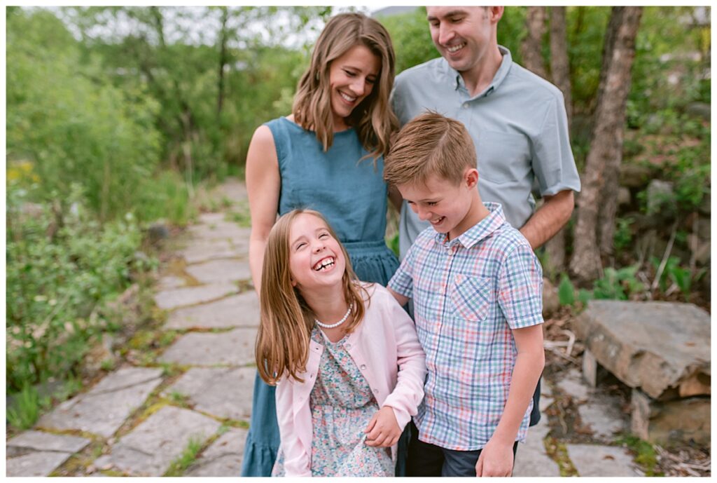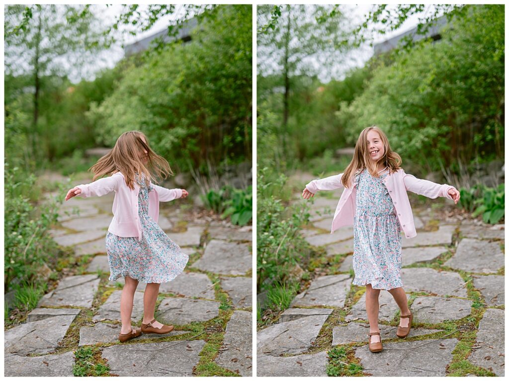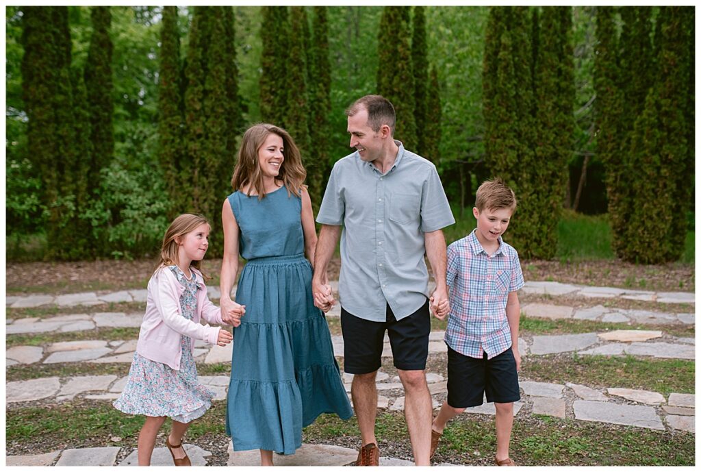 We chose to head to Millennium Gardens in Plymouth for their session. The gardens were blooming, and the soft summer night light was absolutely perfect to catch that golden glow I love so much. It’s been a few years since I’ve done this family’s photos, and Renee always chooses the cutest outfits. I love her dresses and she can always pull them off with such ease and comfort.