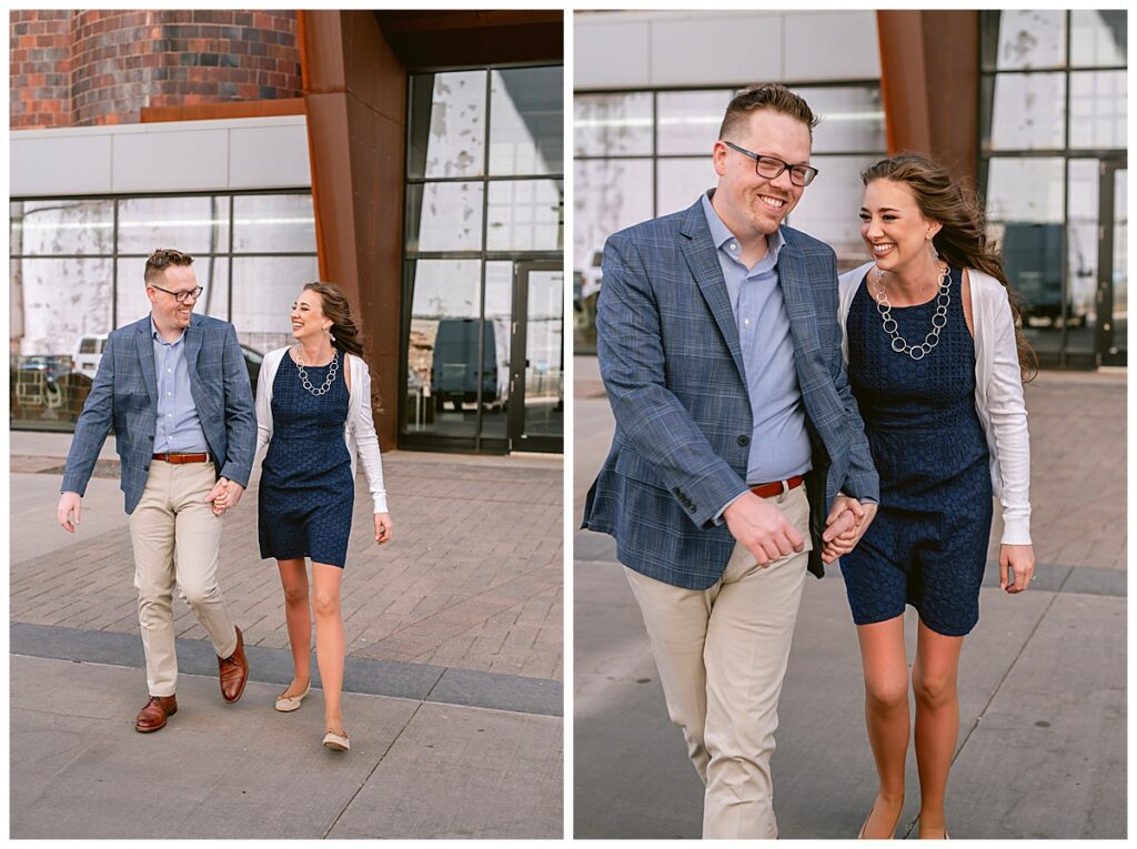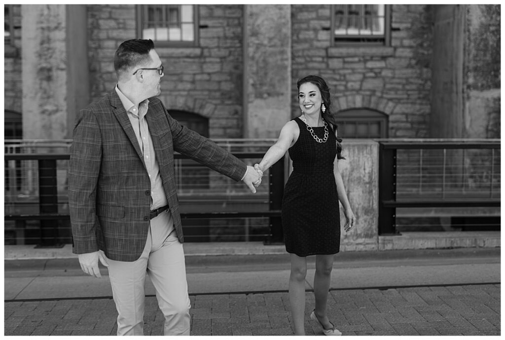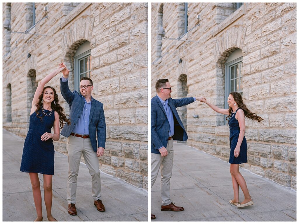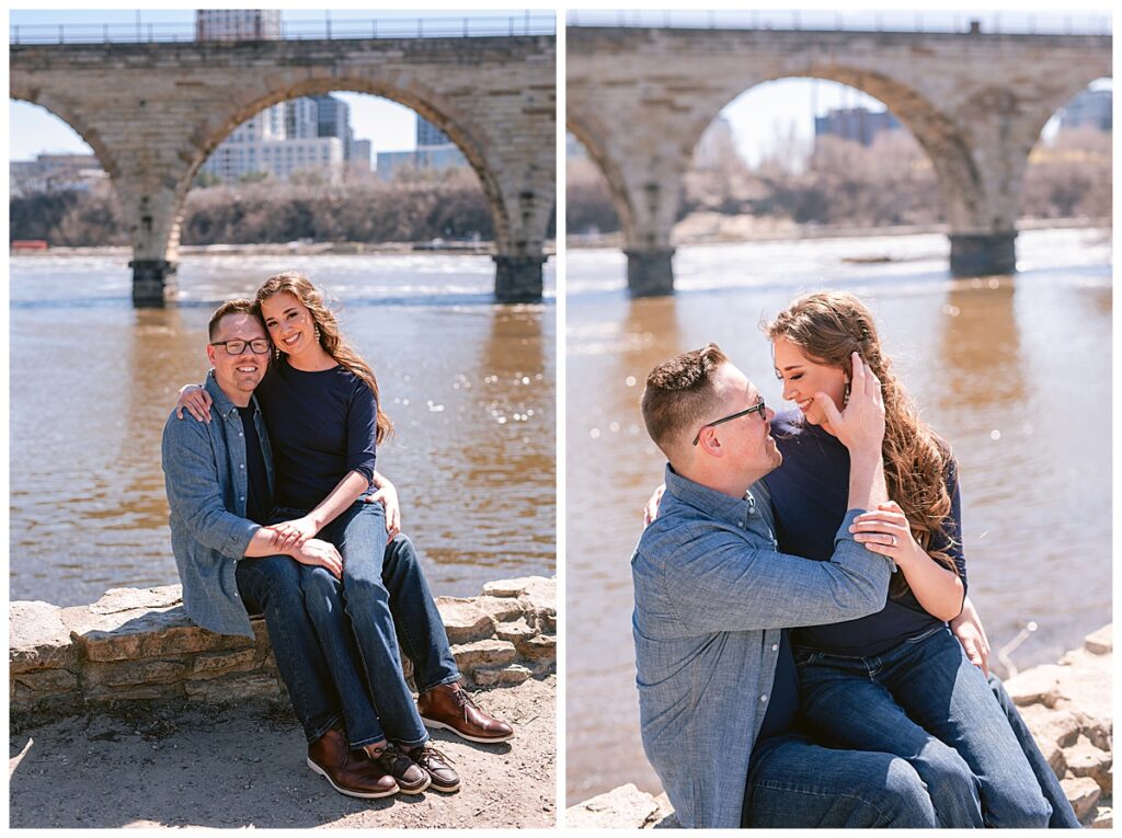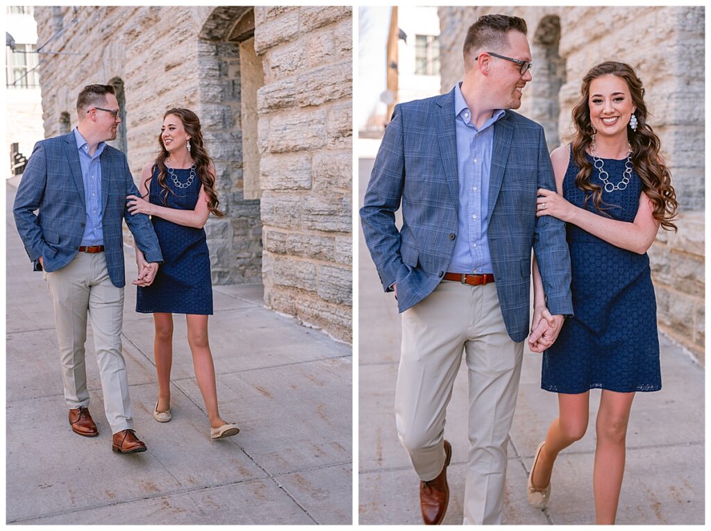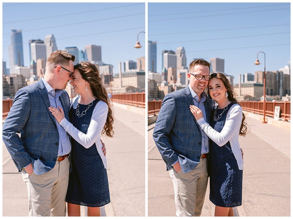Beautiful blue skies and an eighty degree day were upon us. We planned to meet right out front of Aster cafe near St. Anthony and Main to chat about what they wanted and then made our way past the Pillsbury building for some urban shots and then walked over to the iconic Stone Arch Bridge where it was free of people for a few short minutes. The sun glistened as we walked and talked about their May wedding at the University of Northwestern in St. Paul.