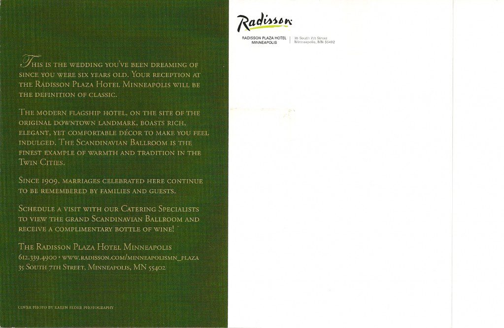 Special thanks to the Radisson Downtown for featuring my work in their most recent mailer, and to my wonderful bride Erin (see blog post HERE from my old blog) for looking radiant for her May wedding.