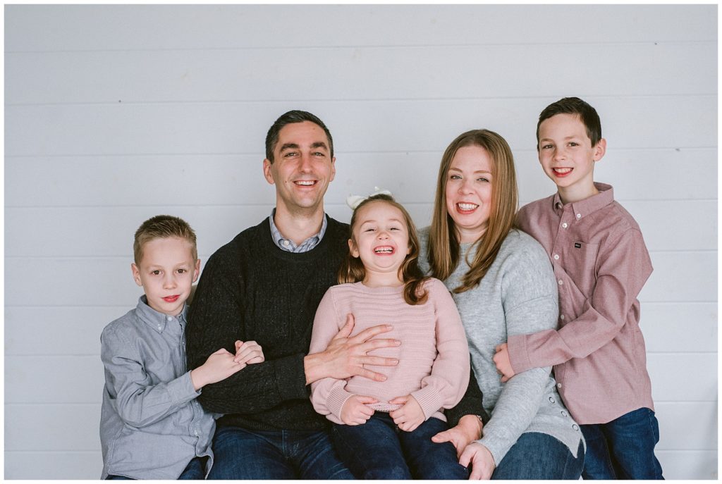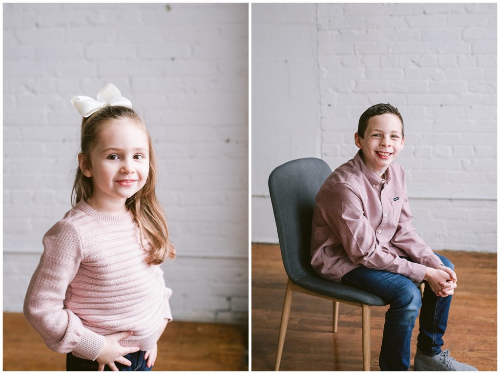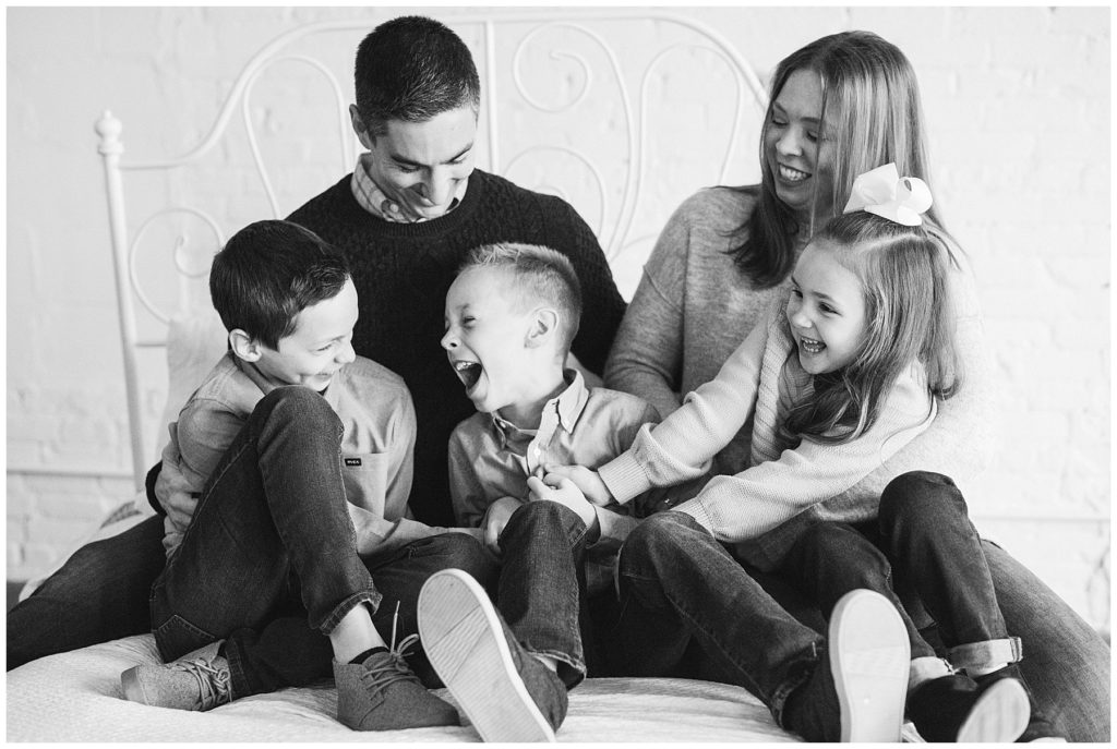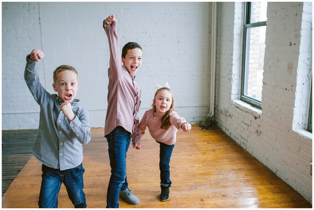 I love is being with sweet families in the studio as kids run and play and just.be.kids! Telling them that its all about having fun and playing games makes the session times speed by, and everyone stays happy. Playing tickle games, posing like a superhero, and making animal noses are just some of the tricks I keep up my sleeve. Don’t get me wrong, we do need some time where everyone is looking at the camera, but playing the freeze game might be more effective than just saying.. kids, say cheese and way more fun and memorable.