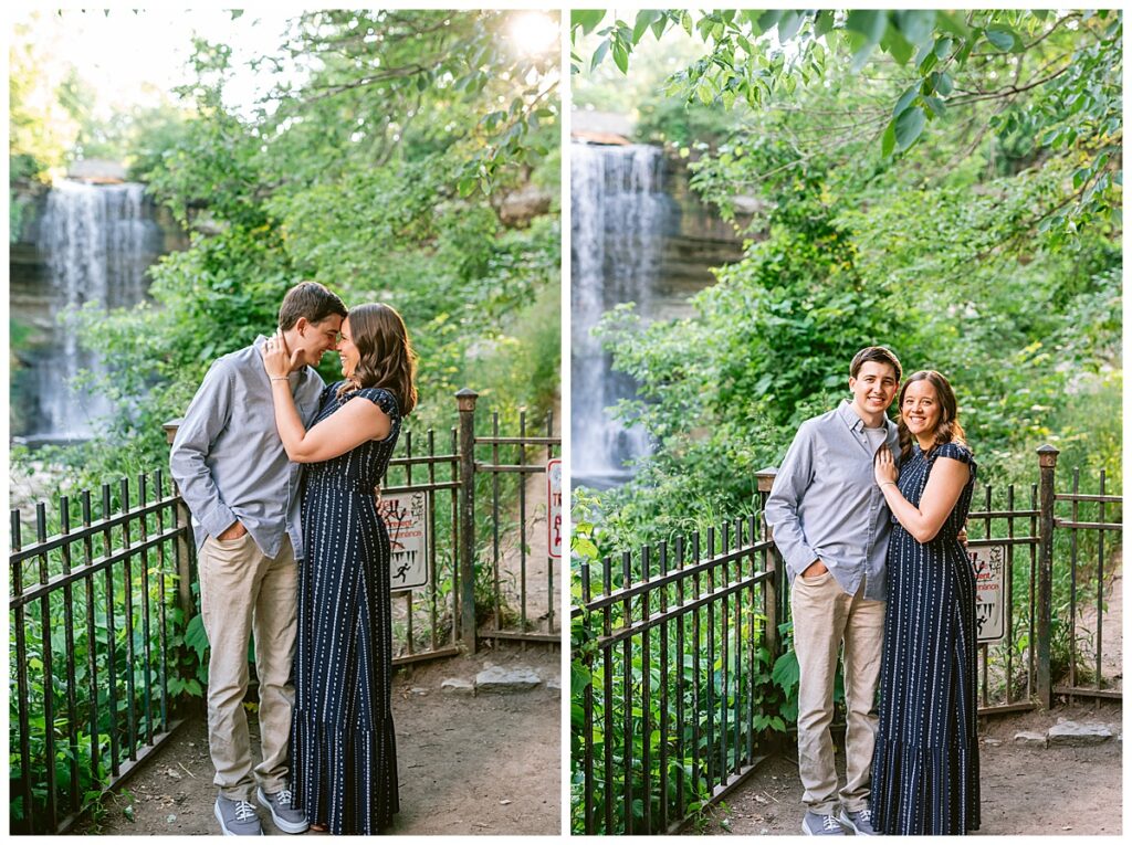 We began the session at the bottom of the falls where it flowed beautifully and Nick and Nia were so kind to walk the numerous steps to get down to the falls, but it was well worth it as we had the place almost to ourselves. As the sun continued to set, we had the most beautiful light for golden hour photos and wandered all over the park for the most beautiful light.