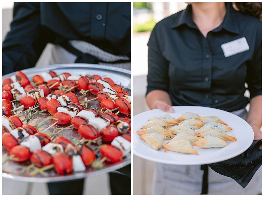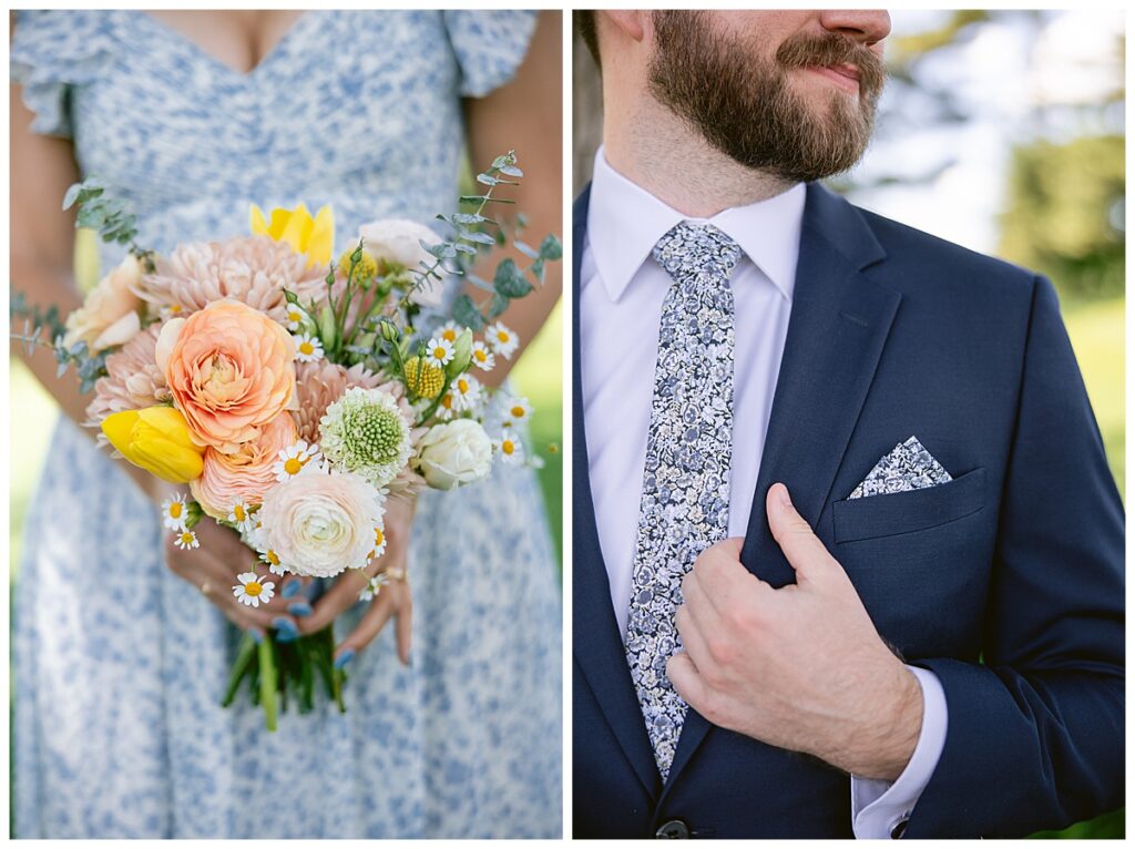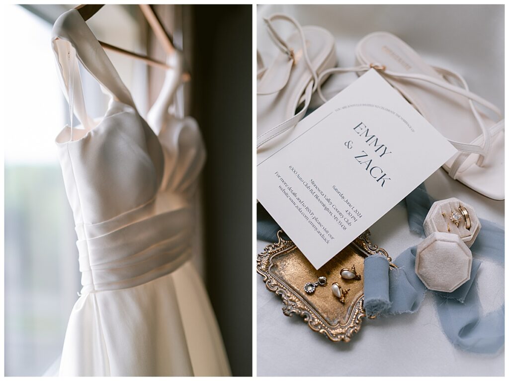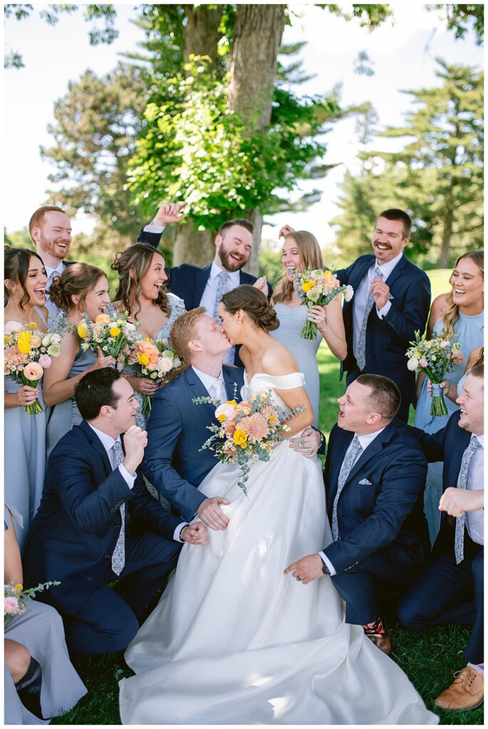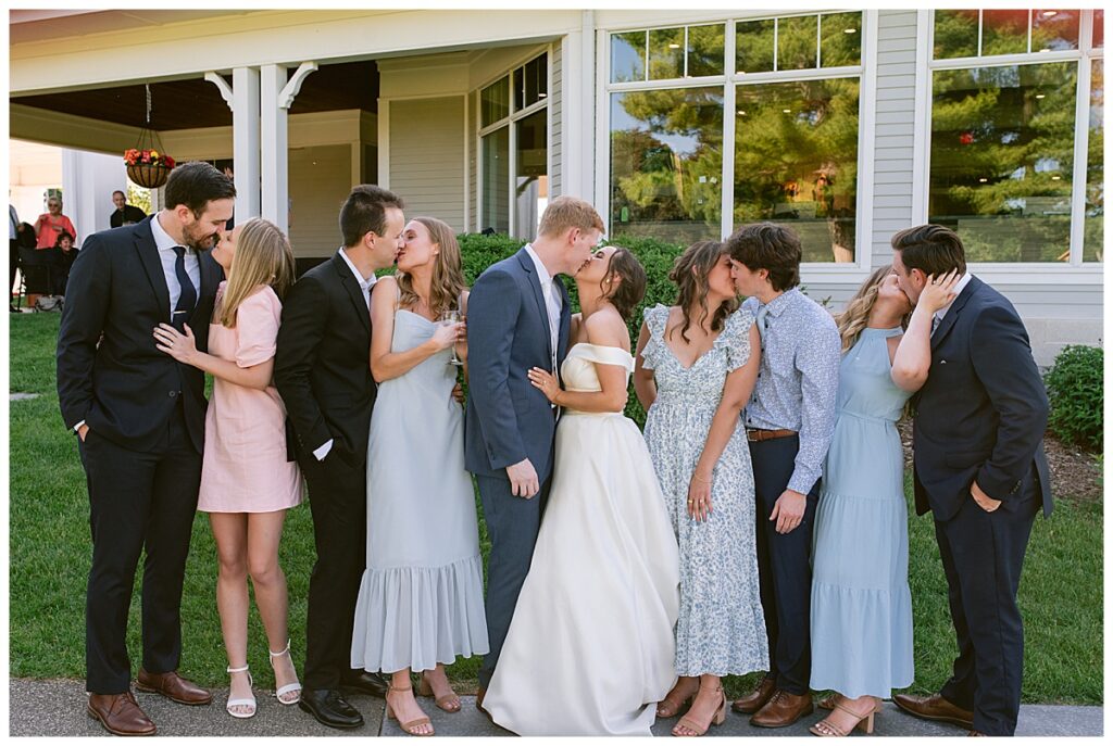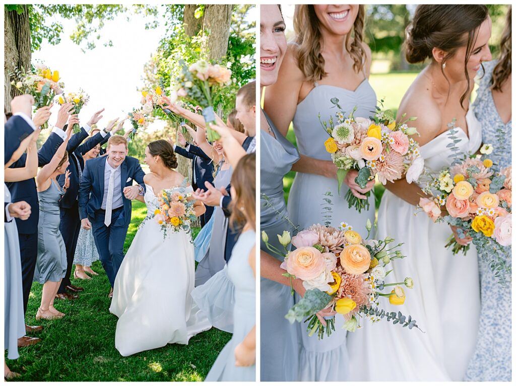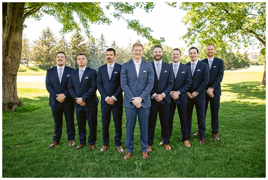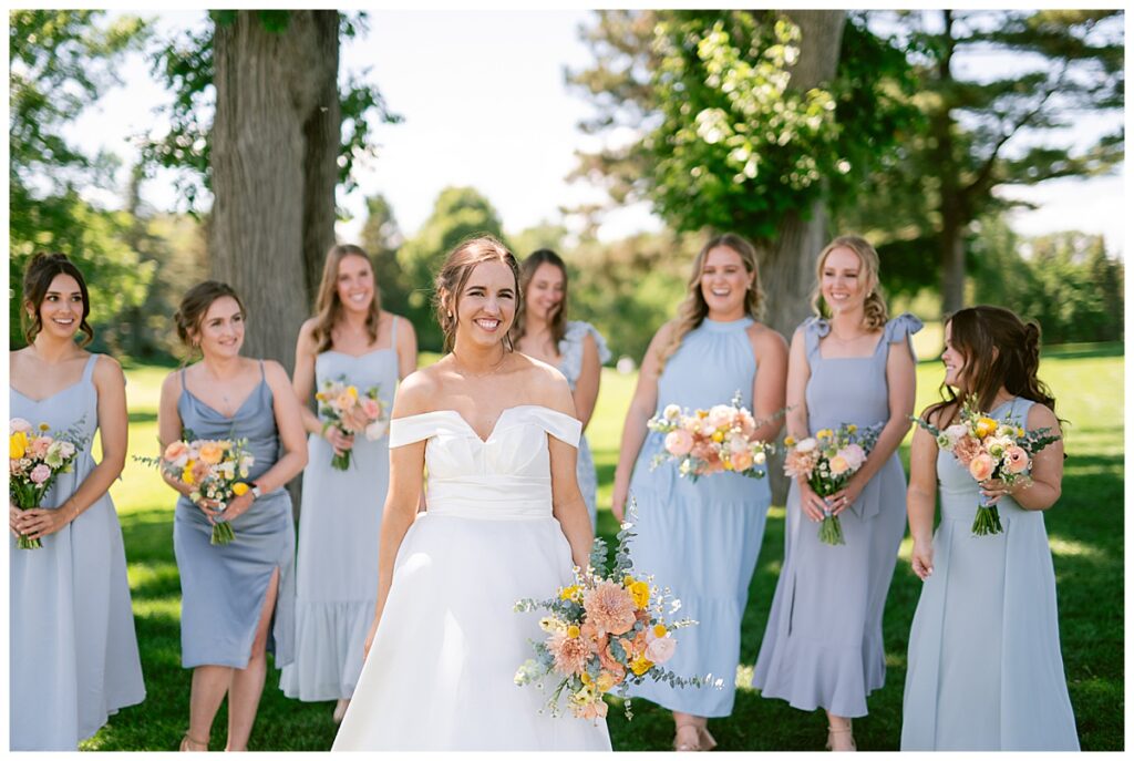 Emmy’s wedding dress, a beautiful satan ivory gown by Pronovias, was purchased from Budget Bridal Outlet and when she got in it, she looked incredible! The bridesmaids wore a variety of pale blue dresses from various designers, complementing Emmy’s gown perfectly. Zack and his groomsmen were equally as dapper, dressed in dark gray suits from Milbern Clothing Co.