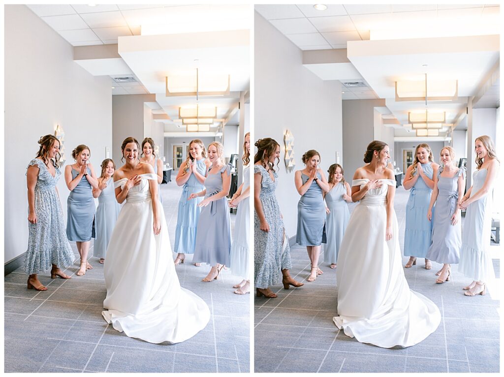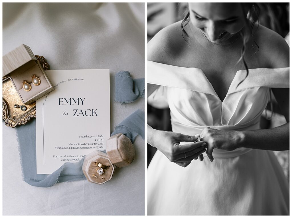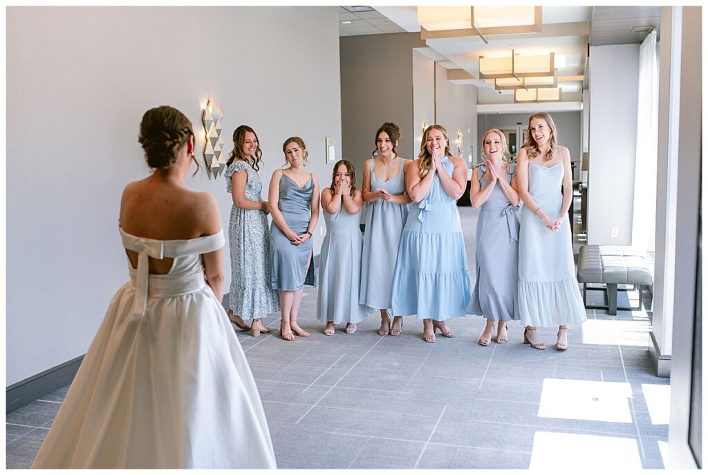 Their June wedding day started with Emmy and her bridal party getting ready at the Minneapolis Hilton. Jess Nelson from Blonde Studios and Ashley Parshley worked their magic on hair, while Sierra England and Mati Oeltjenbruns handled the makeup, ensuring Emmy and her bridesmaids looked stunning.