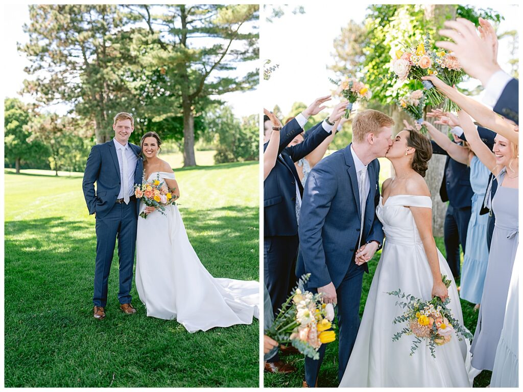Guests enjoyed a delectable meal catered by the Minnesota Valley Country Club, with sweets from Costco Wholesale adding a sweet touch to the celebration. Music was provided by DJ Mike Hongslo, who kept the dance floor lively all night. The couple’s rings were crafted by The Jeweler Ryan , symbolizing their enduring commitment to one another. Emmy and Zack’s personal touch was evident in their DIY stationary, adding a unique and heartfelt element to their wedding. This personal involvement reflected their journey together and the deep connection they share. As the night headed to a close, the couple exited with a grand bubble exit making for more memorable photos!
