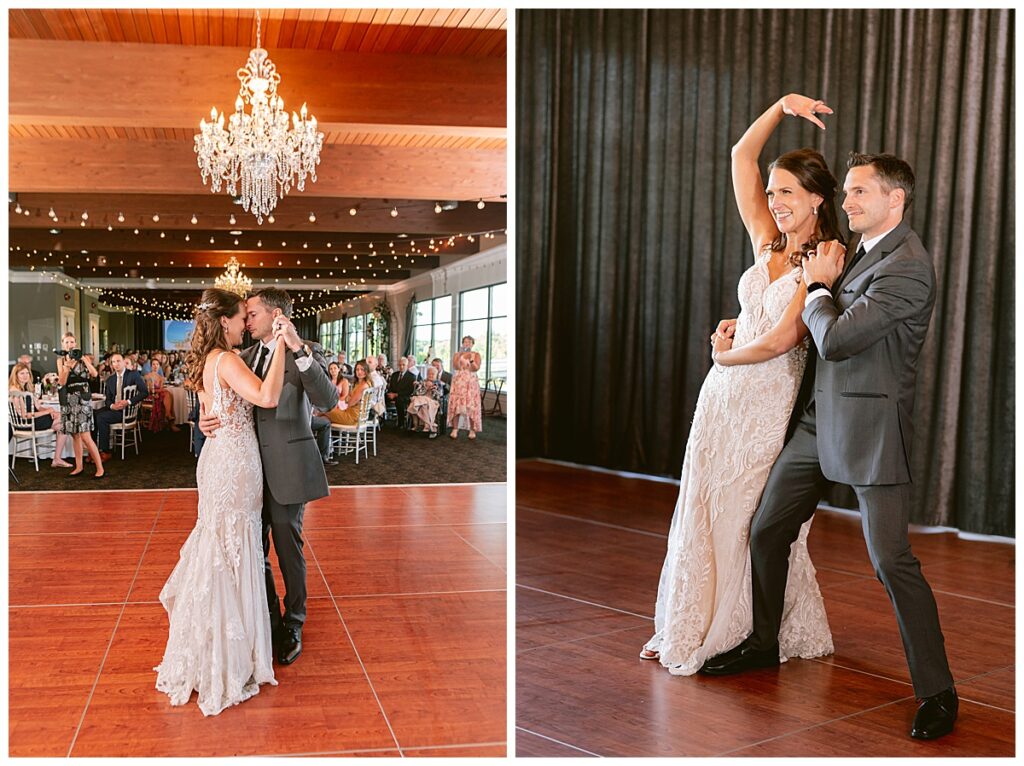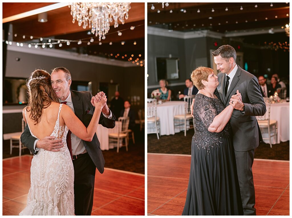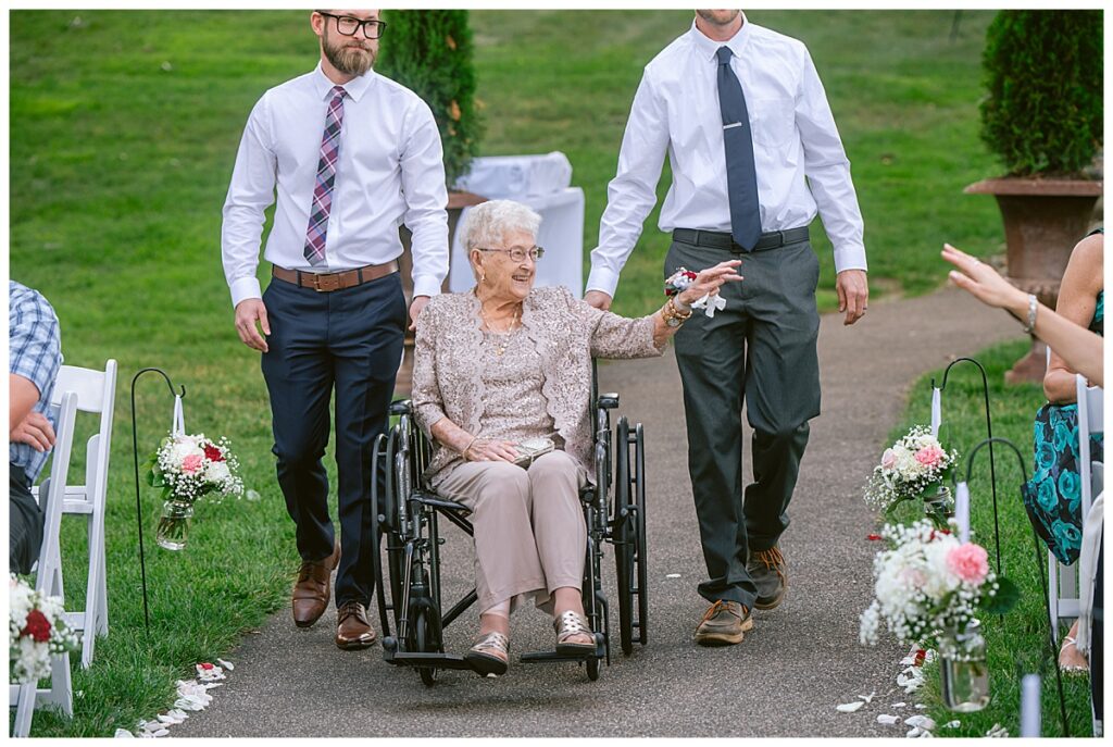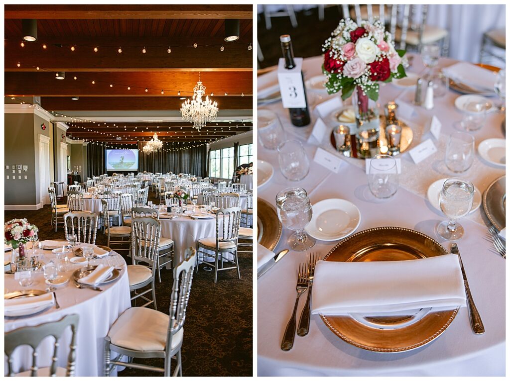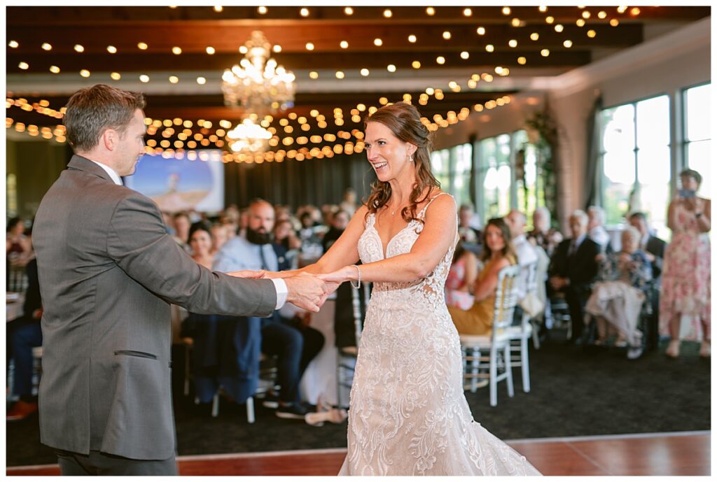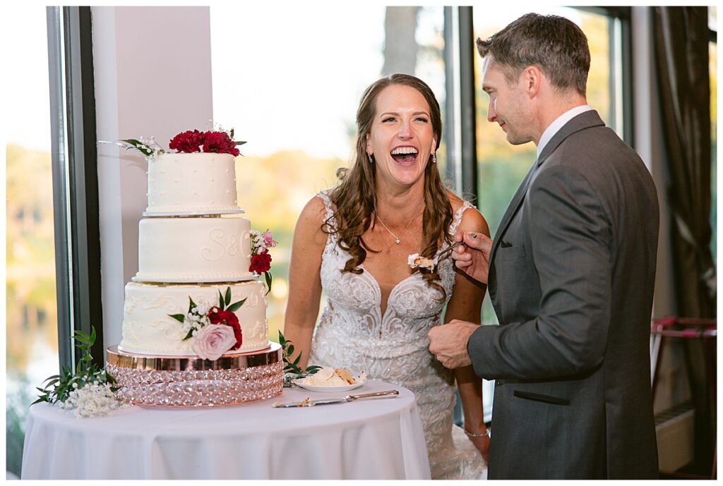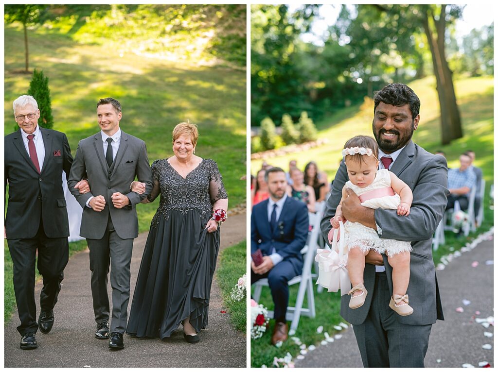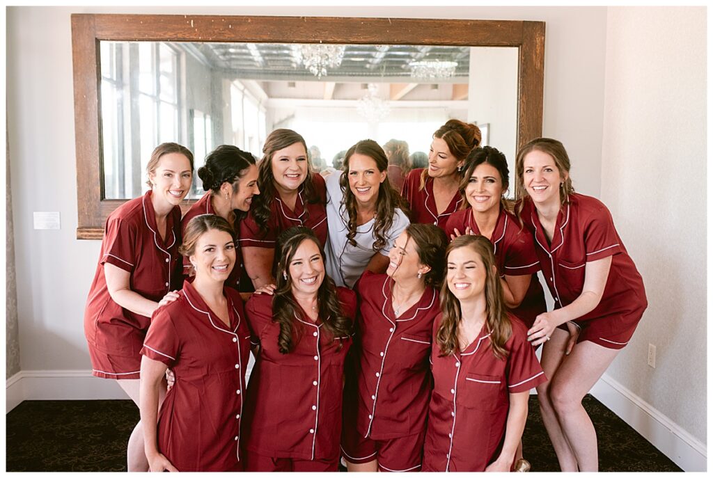The wedding party, then joined them for photos with the bridesmaids, wearing beautiful burgundy dresses from Azazie. The groomsmen‘s looked dapper in their gray suits from Men’s Warehouse while Michelle Copeland of Custom Floral Designs, brought the look together with a beautiful array of flowers that contained burgundy, white, and babies breath. Both family’s then joined us for more photos on the beautiful property. Carrie and Steve were wed under a beautiful arbor of flowers along the Mississippi River. They exchanged rings from Wedding Day Diamonds and then were announced husband and wife in front of family and friends. Guests welcome them at their cocktail hour where signature drinks of sidecars and Mojito‘s were served along with tasty appetizers from Mintahoe Catering and Events. Carrie and Steve welcomed guess by doing their first dance as they were announced and then everyone had dinner as they listened to speeches from the best Man and maid of honor. Buttercream wedding cakes provided a beautiful cake and Alex night with Instant Request DJ got the party started and Bill from Peterson Brothers productions caught the entire day on film.