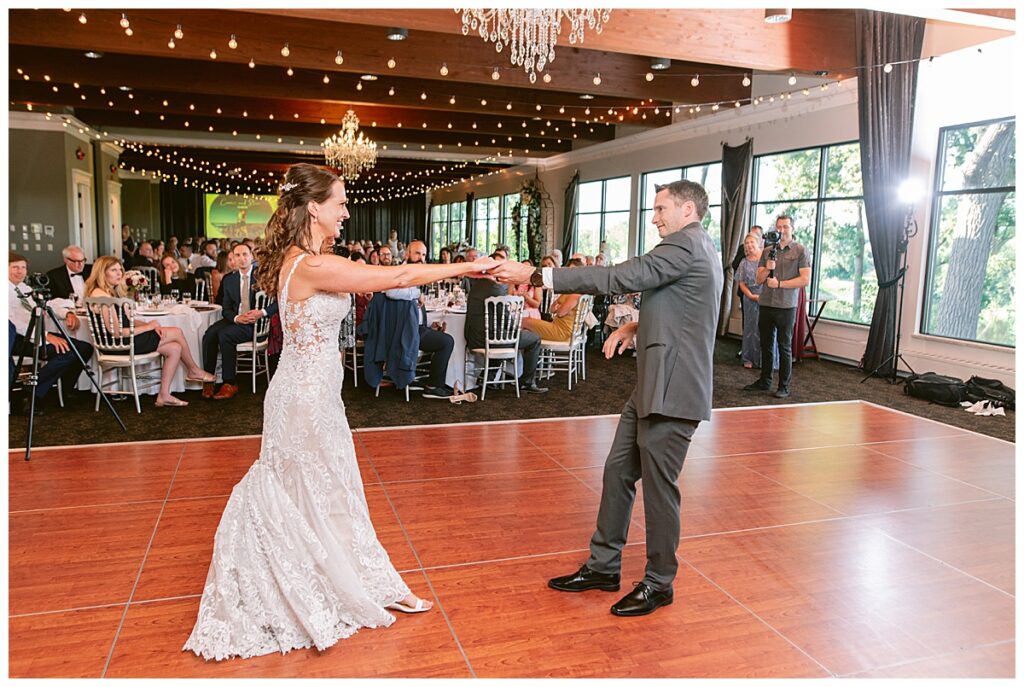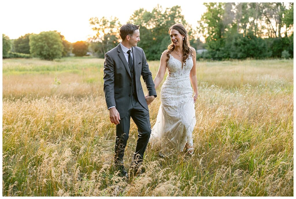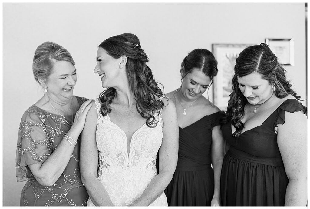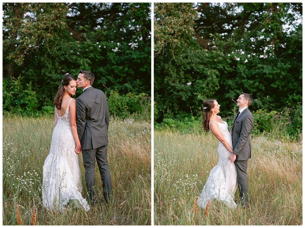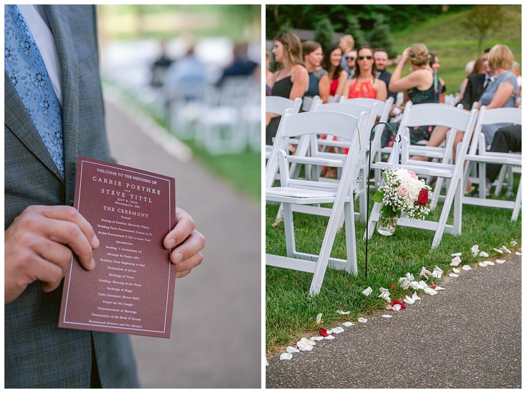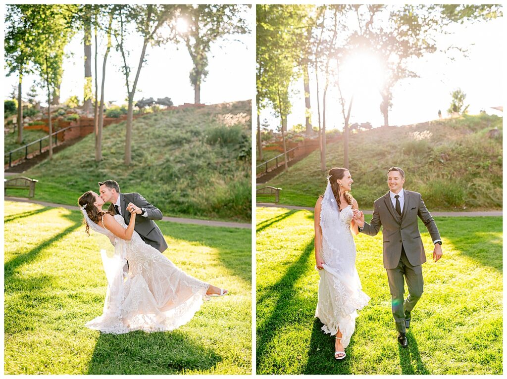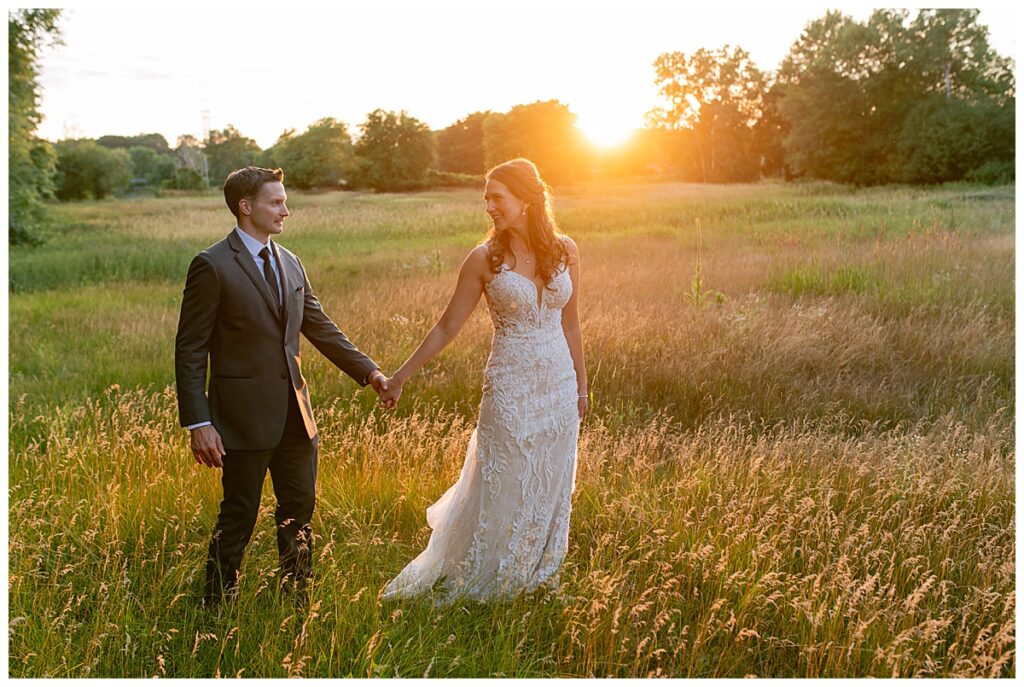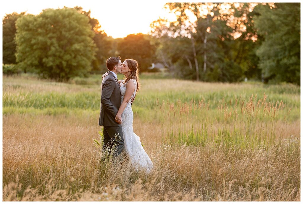 After a surprise proposal in Cabo, Mexico, Steve and Carrie began planning their July wedding. Because they both love the heat and being outdoors, they decided to host their wedding at Leopold’s Mississippi Gardens in Minneapolis. The day began with the ladies getting ready at the venue. Summer from Glamour Beauty created a beautiful updo for Carrie while Taylor from Taylor Marie Beauty provided make up for all of the bridesmaids. Carrie then got into her beautiful Martina Liana dress purchased from Raffine Bridal and then went out to meet Steve for their first look.