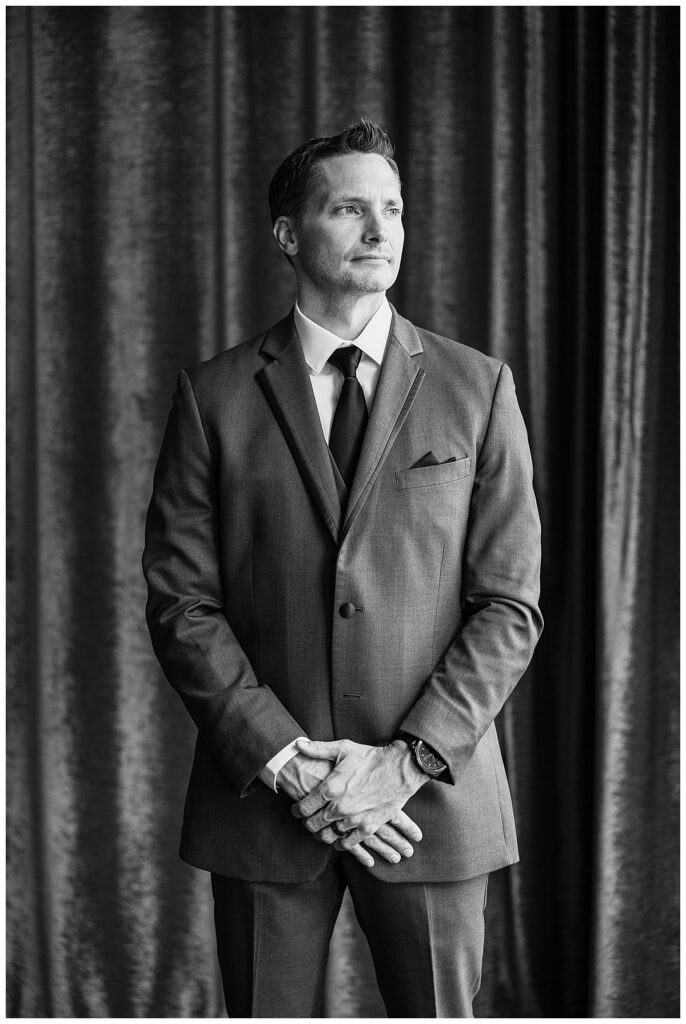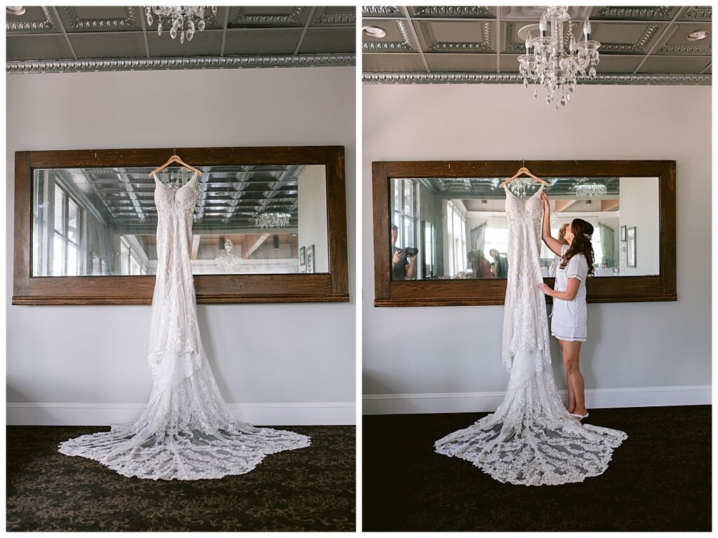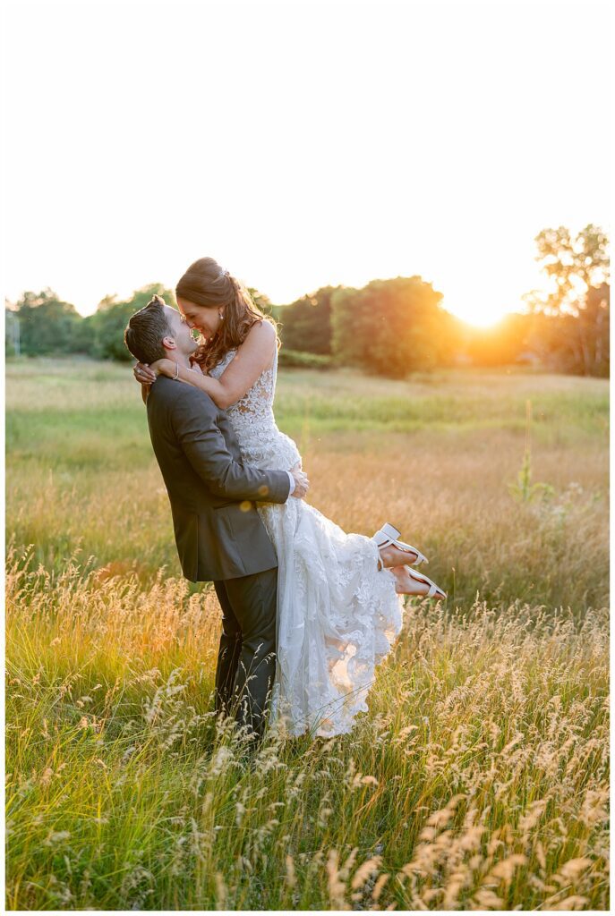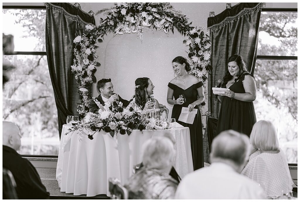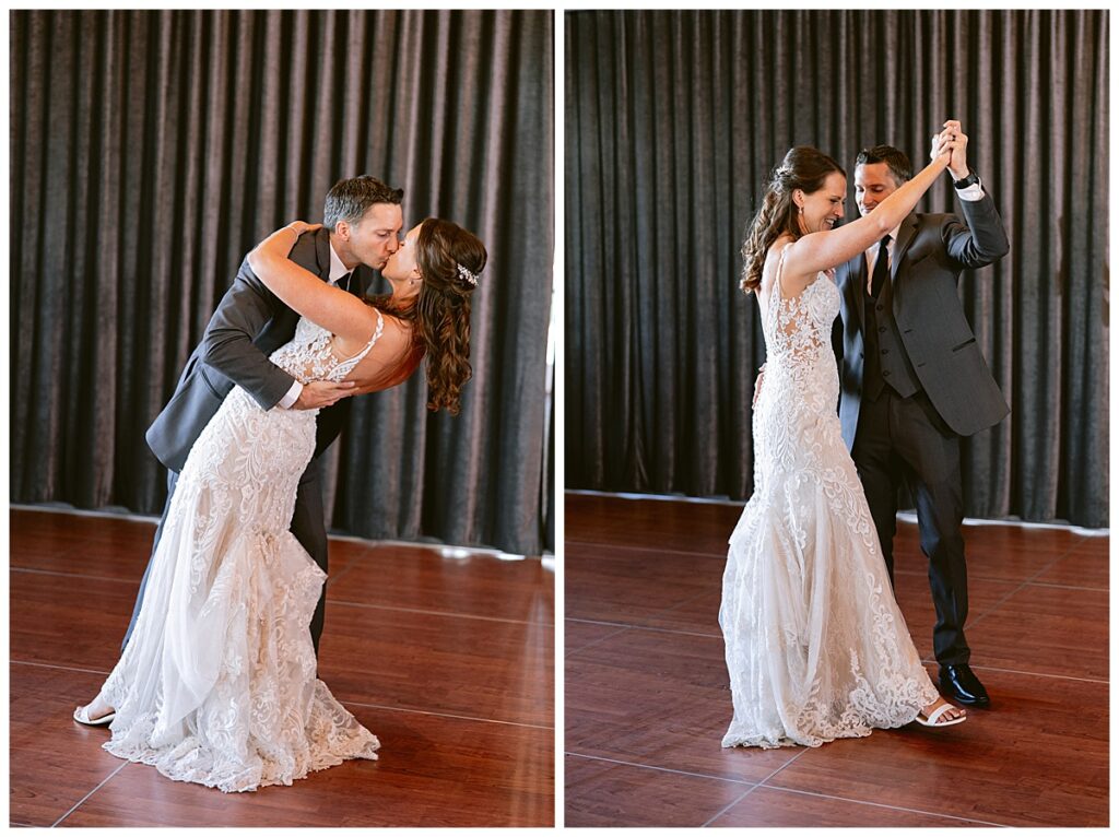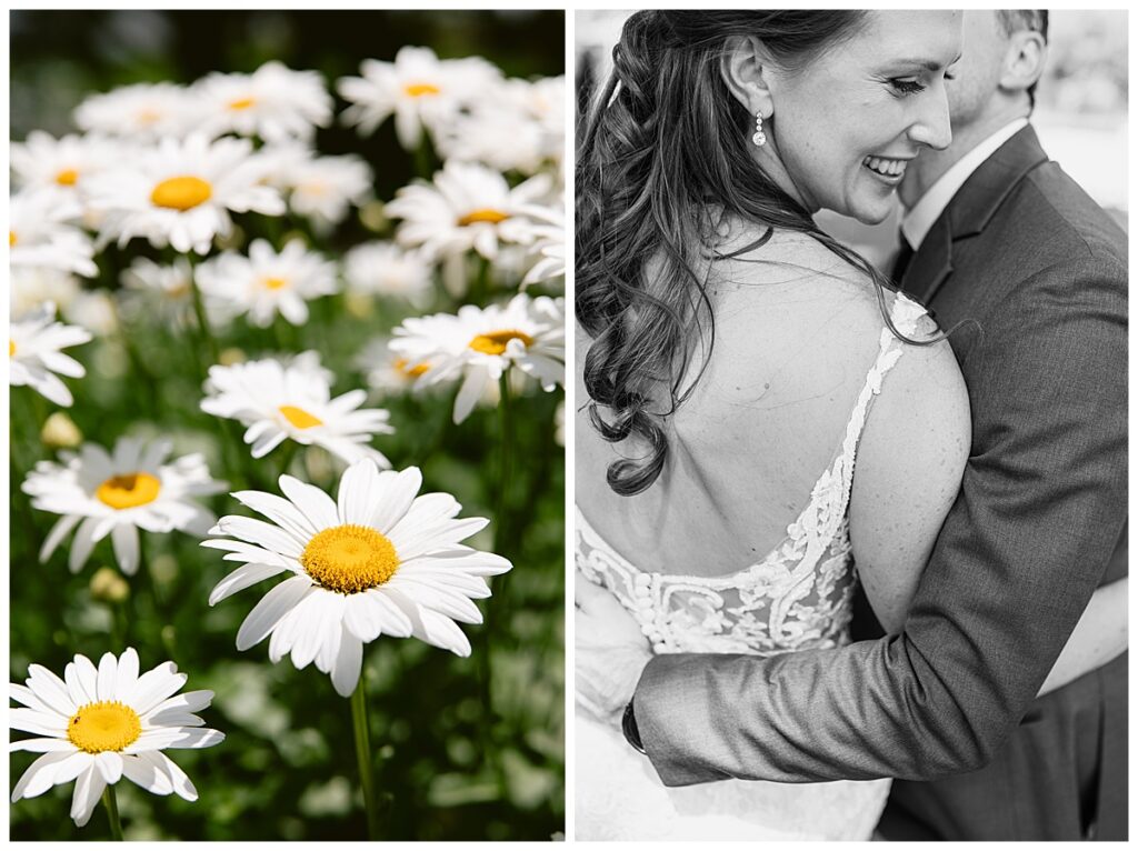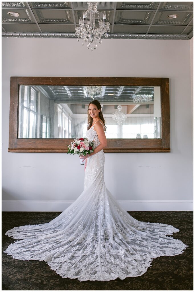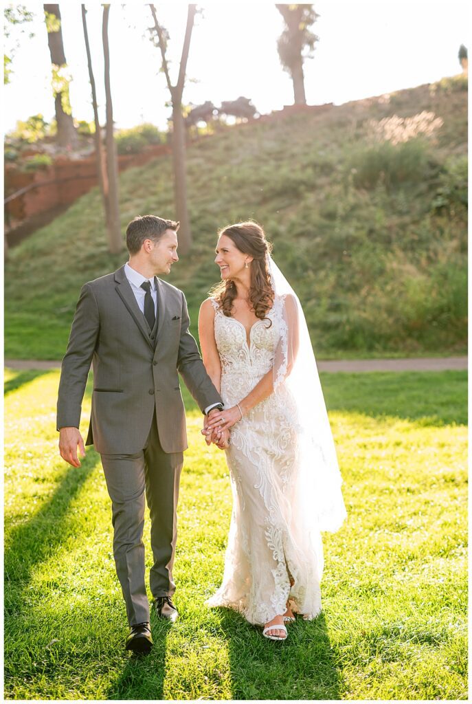 After a surprise proposal in Cabo, Mexico, Steve and Carrie began planning their July wedding. Because they both love the heat and being outdoors, they decided to host their wedding at Leopold’s Mississippi Gardens in Minneapolis. The day began with the ladies getting ready at the venue. Summer from Glamour Beauty created a beautiful updo for Carrie while Taylor from Taylor Marie Beauty provided make up for all of the bridesmaids. Carrie then got into her beautiful Martina Liana dress purchased from Raffine Bridal and then went out to meet Steve for their first look.