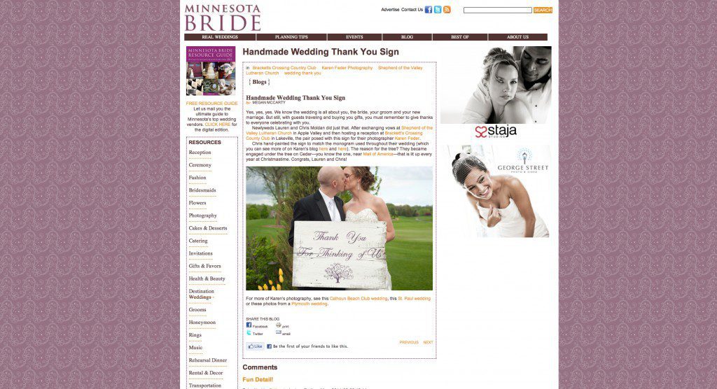 I just love Megan from the MN Bride blog. Se continually puts into words what I can not say! One of my May couples has been featured on their blog and home page. What an honor! To see the entire post click HERE