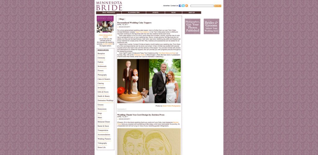 In the last week I have referred two of my clients to my all time favorite wedding blogs. I am continuously inspired by these sites and awestruck at the creativity that vendors and brides have created to make their wedding day spectacular. Check out these great sites, but make sure you have some time. I have been caught for hours perusing the sites…