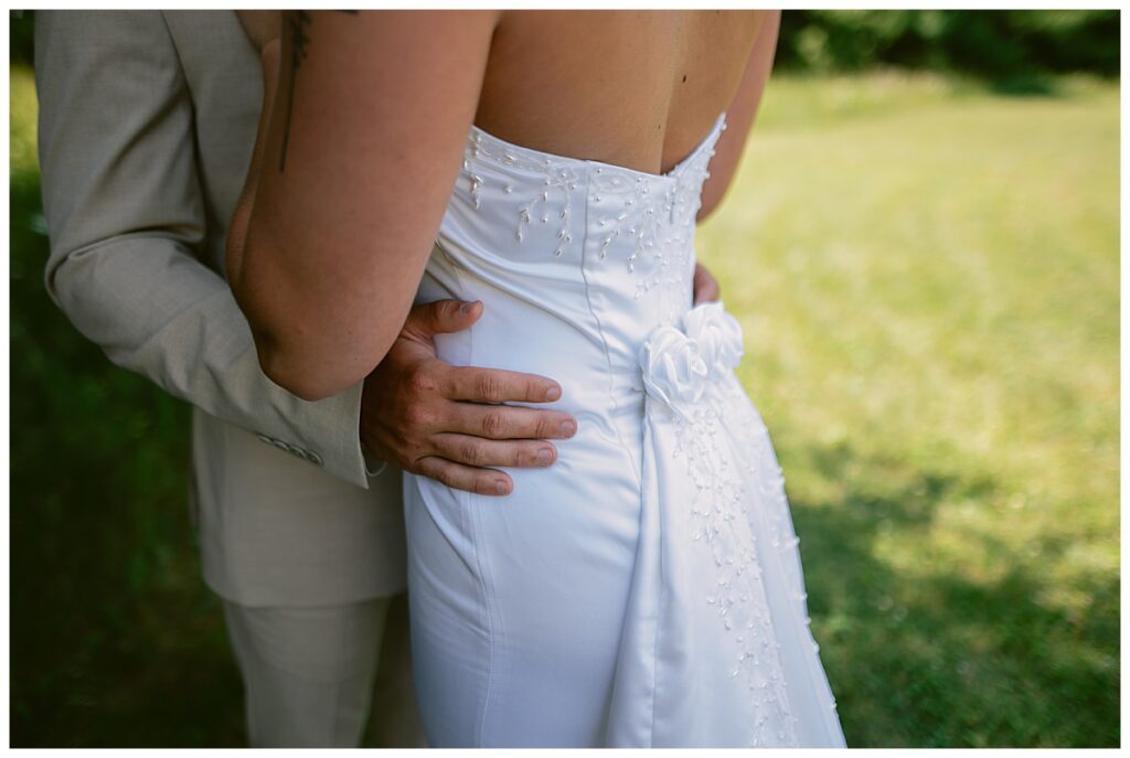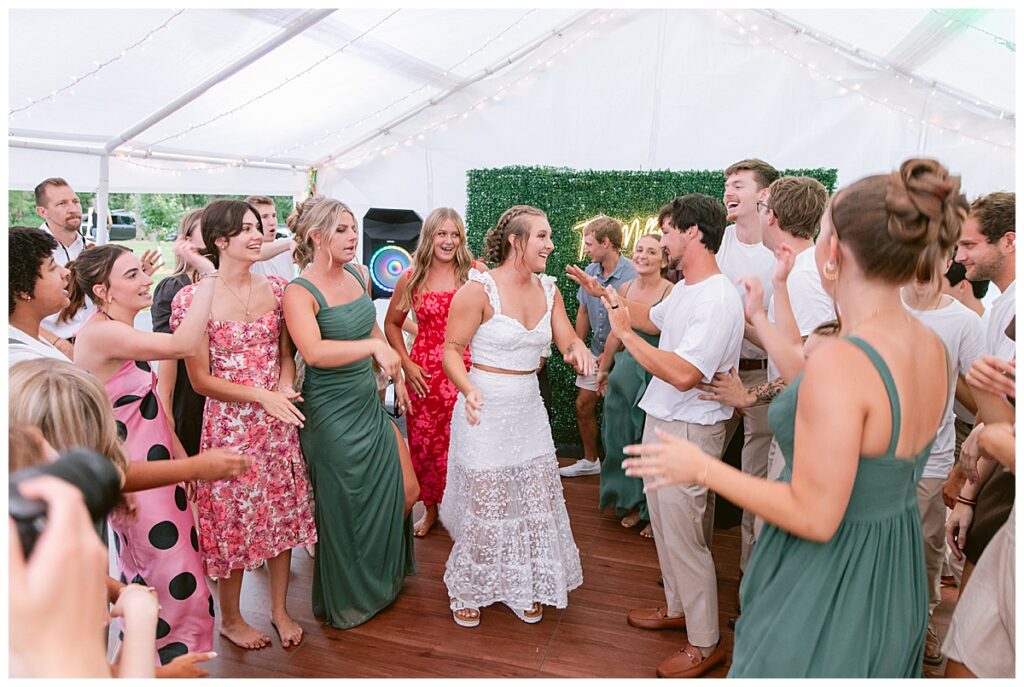 After the heartfelt ceremony, Avery made a quick change into a stunning two-piece lace dress from A’terd State. The new dress was ideal for their backyard reception, allowing her to move freely and enjoy every moment of the celebration. The wedding party was a delight to be with, bringing an infectious energy and joy that made the day even more special.