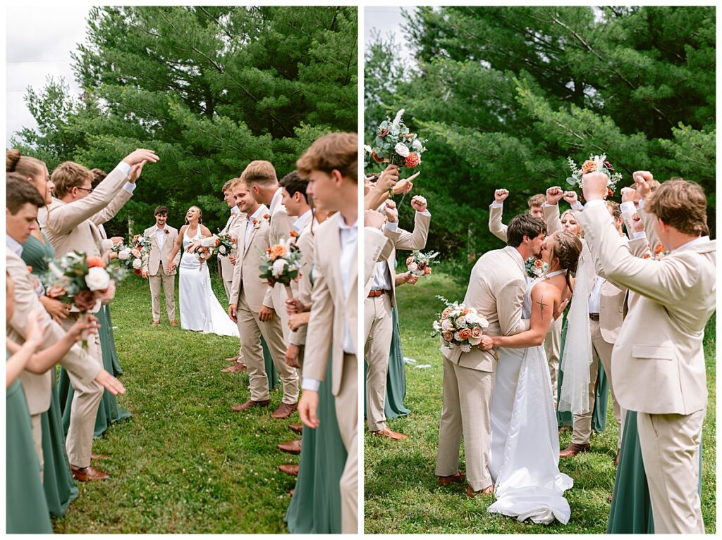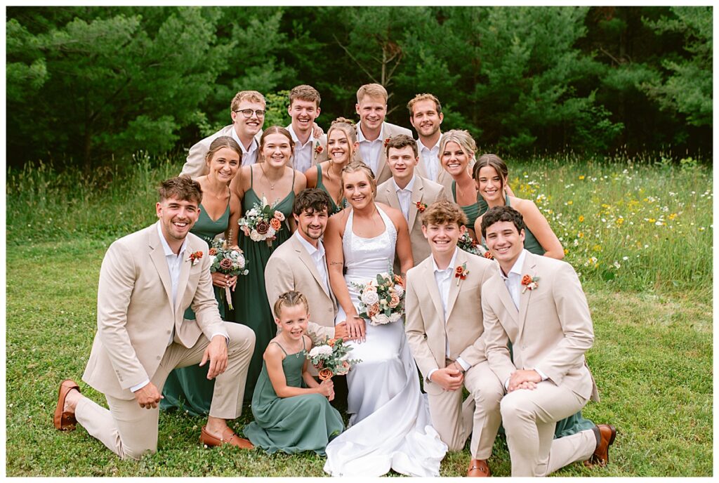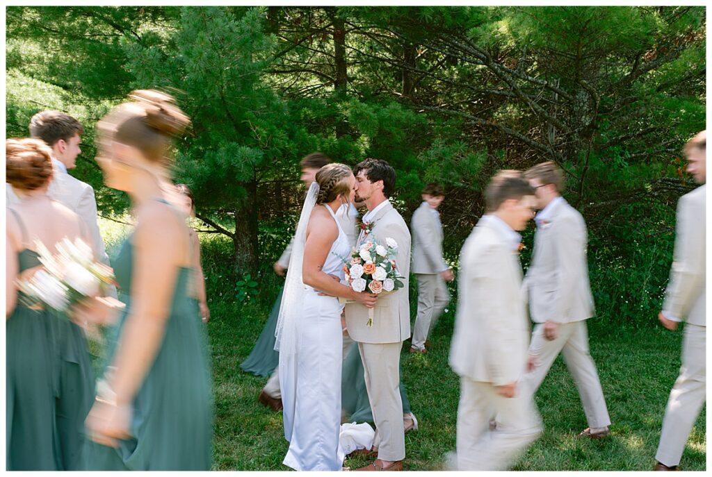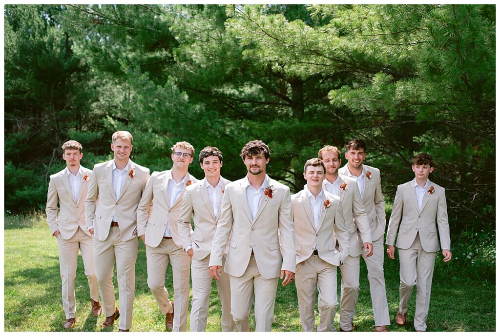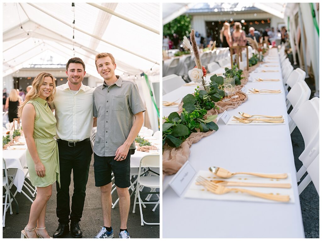 Before the ceremony, Avery and Tyler shared private vows, an intimate moment that reflected their deep connection and commitment to one another. The ceremony itself was a beautiful blend of celebration, worship, laughter and tears, with the couple surrounded by their closest family and friends. Avery and Tyler exchanged rings from Brilliant Earth and Manly Bands. The men, dressed in tan suits from Men’s Wearhouse, looked dapper and perfectly in sync with the summer vibes of the wedding while the ladies looked beautiful in their stunning Azazie dresses.