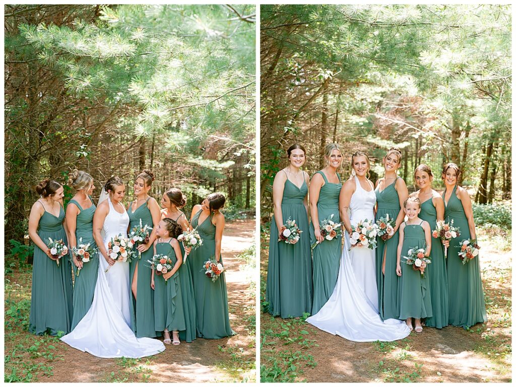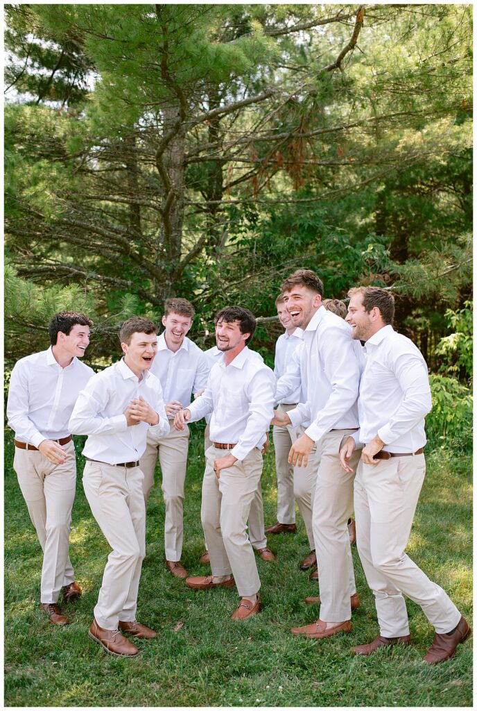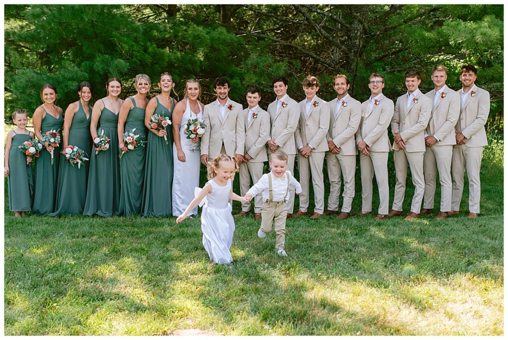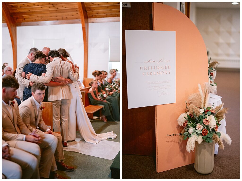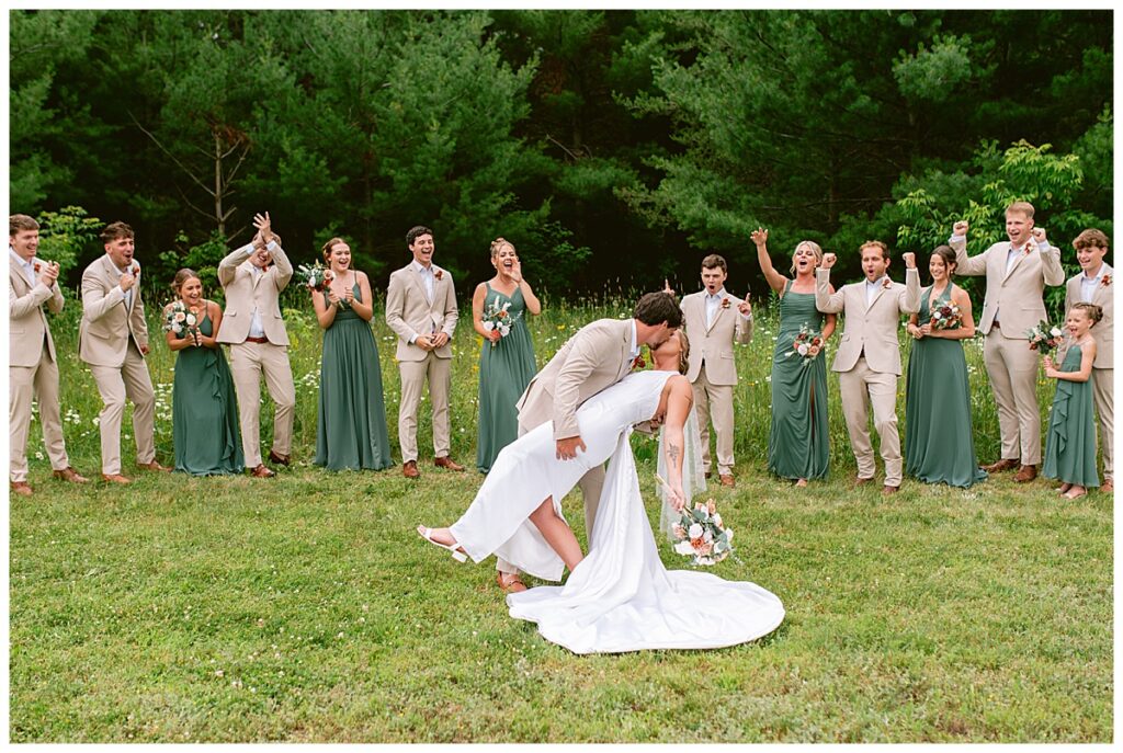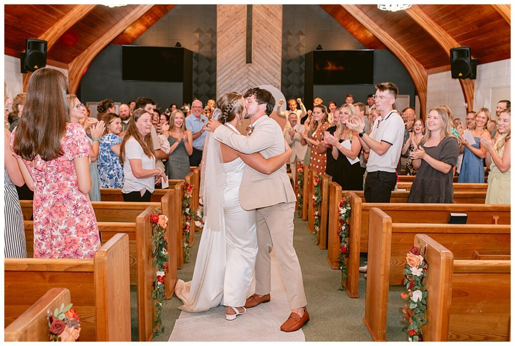 Before the ceremony, Avery and Tyler shared private vows, an intimate moment that reflected their deep connection and commitment to one another. The ceremony itself was a beautiful blend of celebration, worship, laughter and tears, with the couple surrounded by their closest family and friends. Avery and Tyler exchanged rings from Brilliant Earth and Manly Bands. The men, dressed in tan suits from Men’s Wearhouse, looked dapper and perfectly in sync with the summer vibes of the wedding while the ladies looked beautiful in their stunning Azazie dresses.