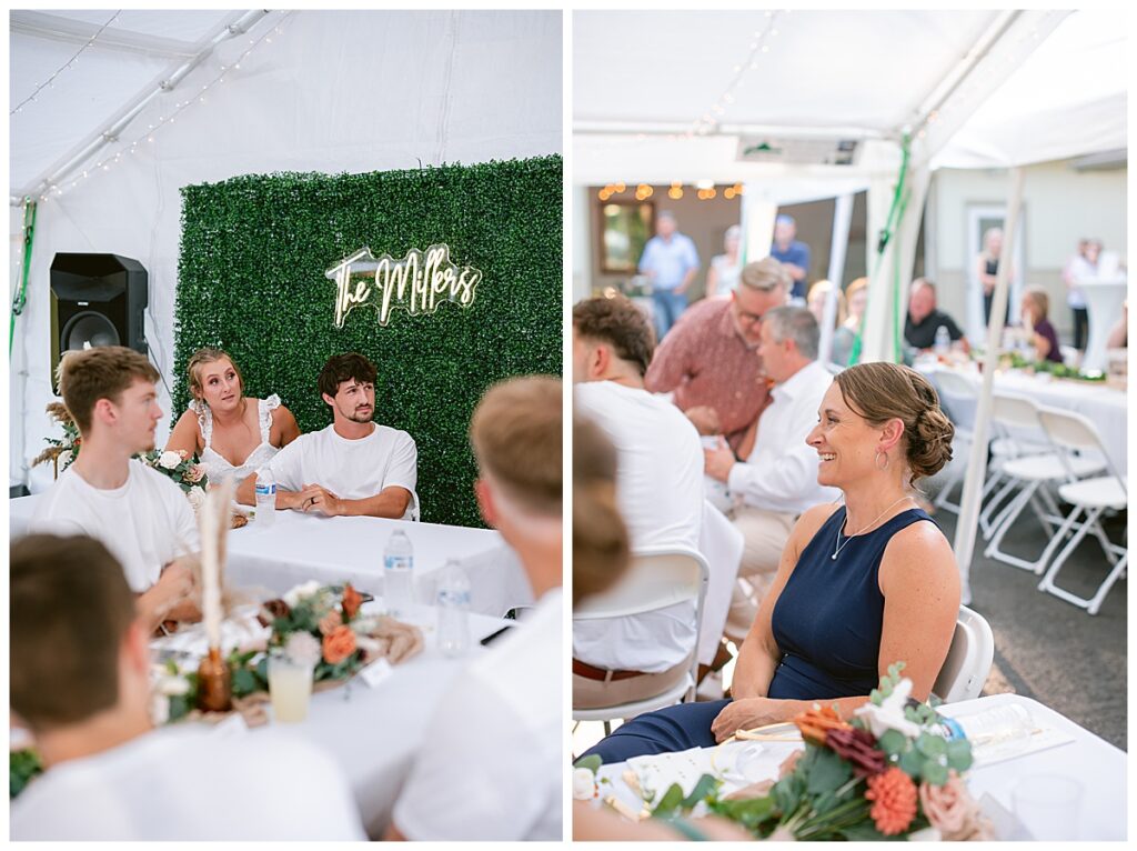 The reception was a true community affair, with friends of the family coming together to cater the event. Guests were treated to delicious ice cream sandwiches and refreshing watermelon popsicles, perfect for the warm summer evening. Hair and makeup for the bride and her party were beautifully done by Lindsey Ecklund and Ari Norgren, ensuring everyone looked their best throughout the day. The stunning videography by Alyssa Suchy captured every precious moment, creating memories that will last a lifetime and Selena Elrod of Lena Blu kept the day moving with her incredible planning skills.