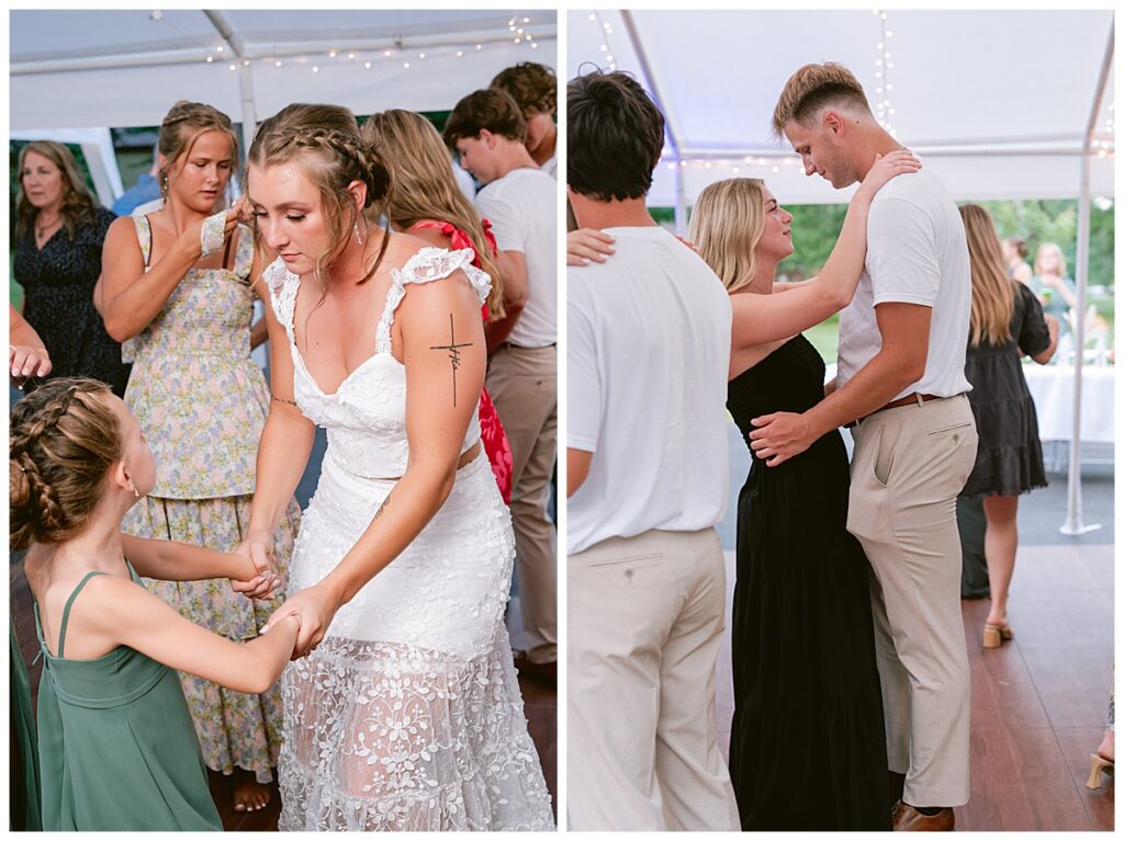 As the night progressed, laughter and music filled the air, with guests dancing and playing yard games. GHS Tent Rental provided the perfect setup, ensuring everyone was comfortable and could enjoy the festivities. Mosquito Militia’s services kept pesky bugs at bay, allowing guests to fully immerse themselves in the celebration. The couple also honored Avery’s parents’ 25th wedding anniversary by playing their first dance song, giving them a special moment to relive their own love story on the dance floor.