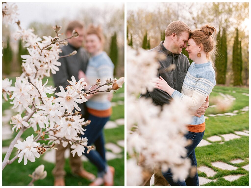 We had a perfect evening for their spring engagement session. The blooms had just began to come out and we all relished in the heat and beautiful sunbeams of the day.