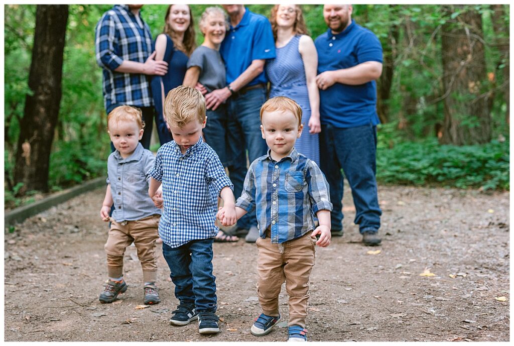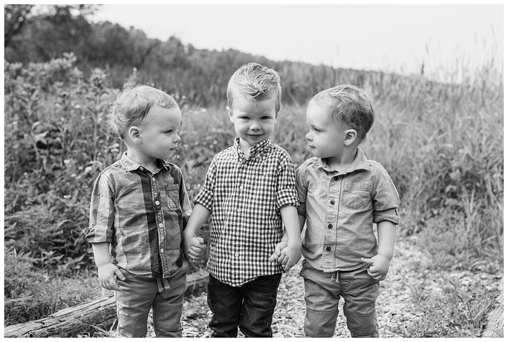 Typically when someone tells me they have two-year-old twins and a three-year-old nephew that they want photographed together, I brace myself for lots of running around, but with the Horn family it was nothing like that. These boys were some of the sweetest, most kind, laid-back boys I’ve been with. It was easy to see why they were so well behaved when their grandparents and parents were around.