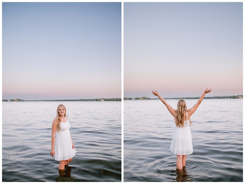As the session progressed, Ruby’s radiance shone through every pose and expression. Her smile illuminated the lens, capturing moments of joy. But what truly set Ruby’s session apart was her adventurous spirit. In a spontaneous and delightful twist, she decided to dip her toes into the refreshing waters of Lake Minnetonka. The spontaneity and joy in that moment encapsulated Ruby’s free-spirited nature and her readiness to embrace new experiences.