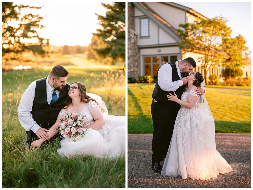 One of the most breathtaking moments of Nick and Ana’s day came during golden hour on the course at Rush Creek Golf Club. As the sun dipped low, the sky turned soft shades of gold and pink, spilling warm light across the greens. Nick and Ana walked hand-in-hand, soaking in those quiet minutes together while I captured portraits that truly radiated joy and romance.