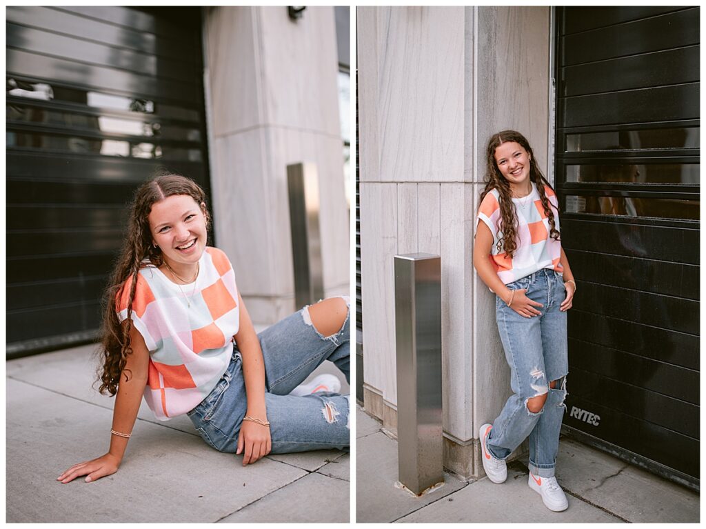 Abbie’s senior photo session in downtown Wayzata was absolutely perfect. The weather couldn’t have been better—sunny skies, a soft breeze off Lake Minnetonka, and golden hour light that made every shot glow. It felt like the whole evening was designed just for her.