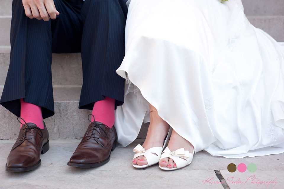 About a month ago I posted that I was looking for a groom to sport some sweet socks.  Laura and Steve saw the post and popped these sweet socks on!
