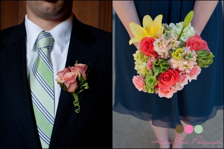 The men’s suits were Jones New York, from Mens Wearhouse. The groomsman’s ties Charter Club, from Macy’s.