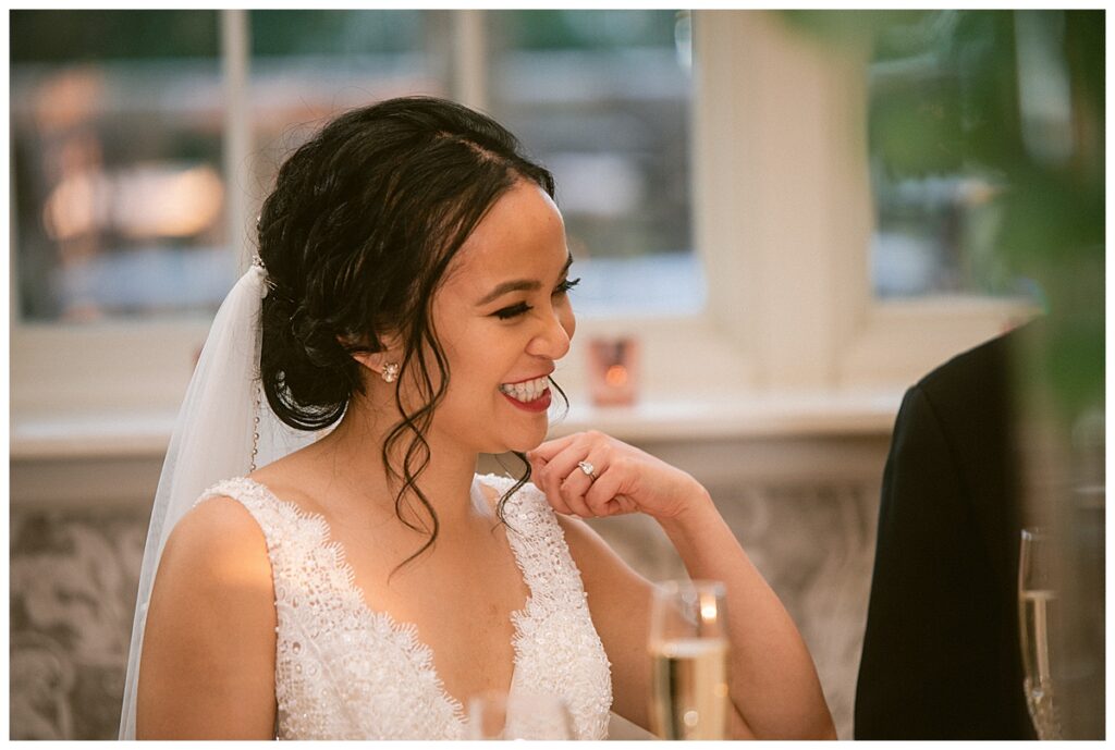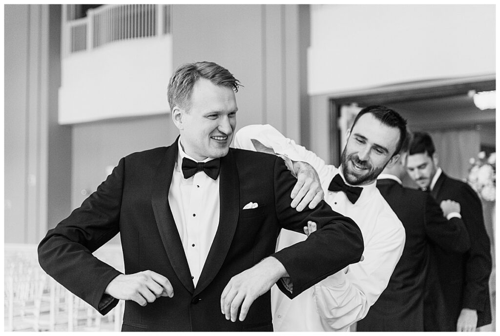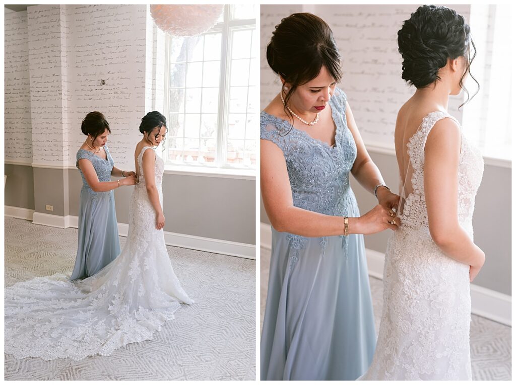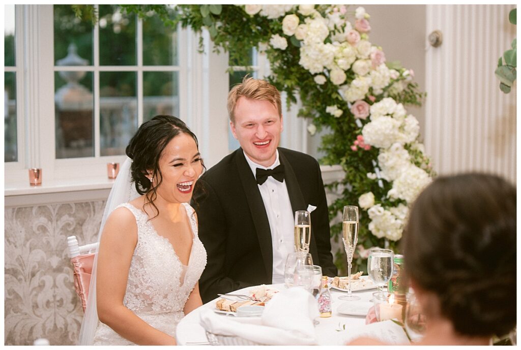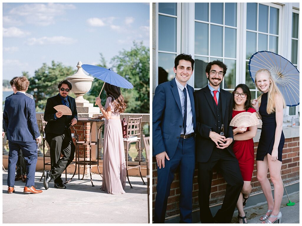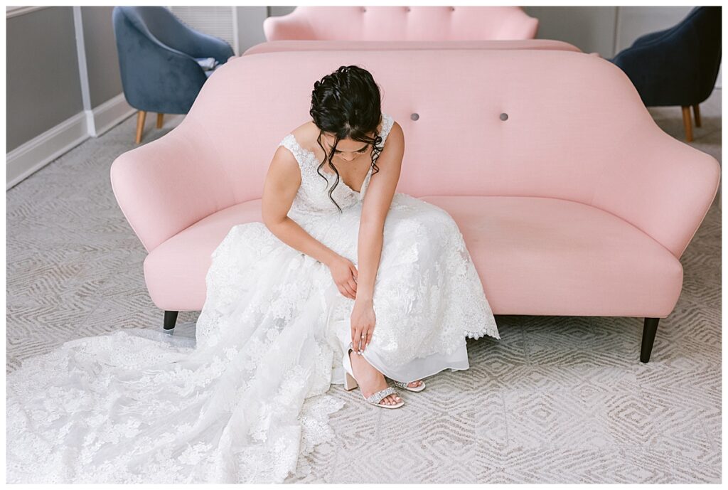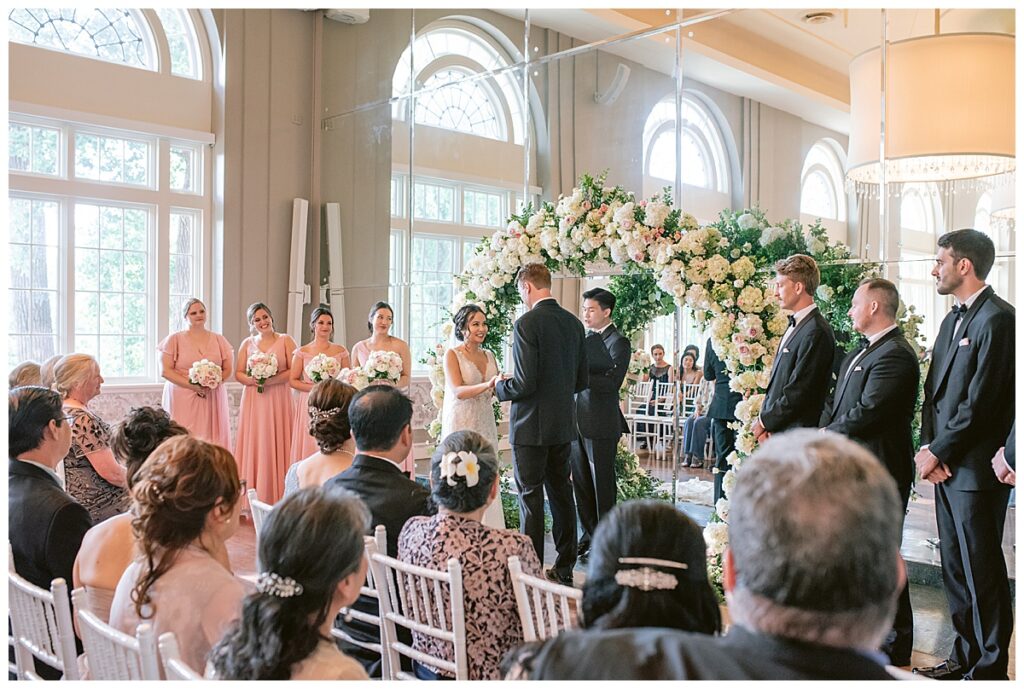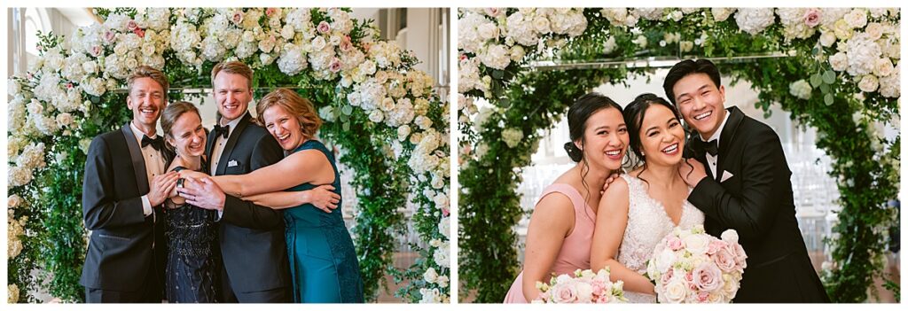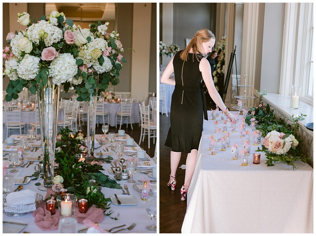 Tim and Milada chose to host their wedding at The Beach Club in Minneapolis. Located right off the Bde Maka Ska shoreline, the club is known for it’s class and elegance and provides the perfect backdrop for a beautiful urban wedding. Milada and her ladies began their morning getting ready with Sandy Xiong who did hair and make-up. They arrived at The Beach Club and got ready in the beautiful bridal suite where Milada mother helped her into her stunning dress from Vera’s House of Bridals. She and Tim chose to do their first look on the winding staircase, and then headed outdoors for photos on the streets in front of the club. The wedding party soon joined them with the ladies wearing blush colored dresses from David’s Bridal.The bouquets of garden roses and hydrangea from Richfiled Florals were the perfect accents when placed against the dresses and the classic black suits Tim and his groomsmen wore. We then headed to the green space near the club with the wedding party and had such a blast together with the men posing with croquet sticks (Tim’s favorite outdoor game!) and the women enjoying their time together.