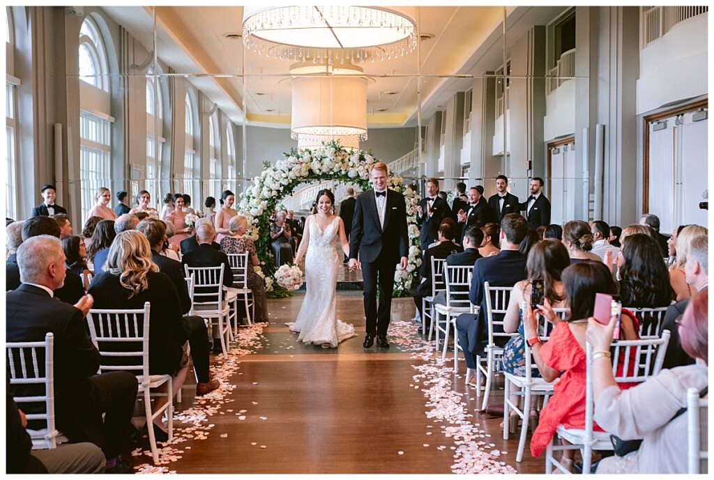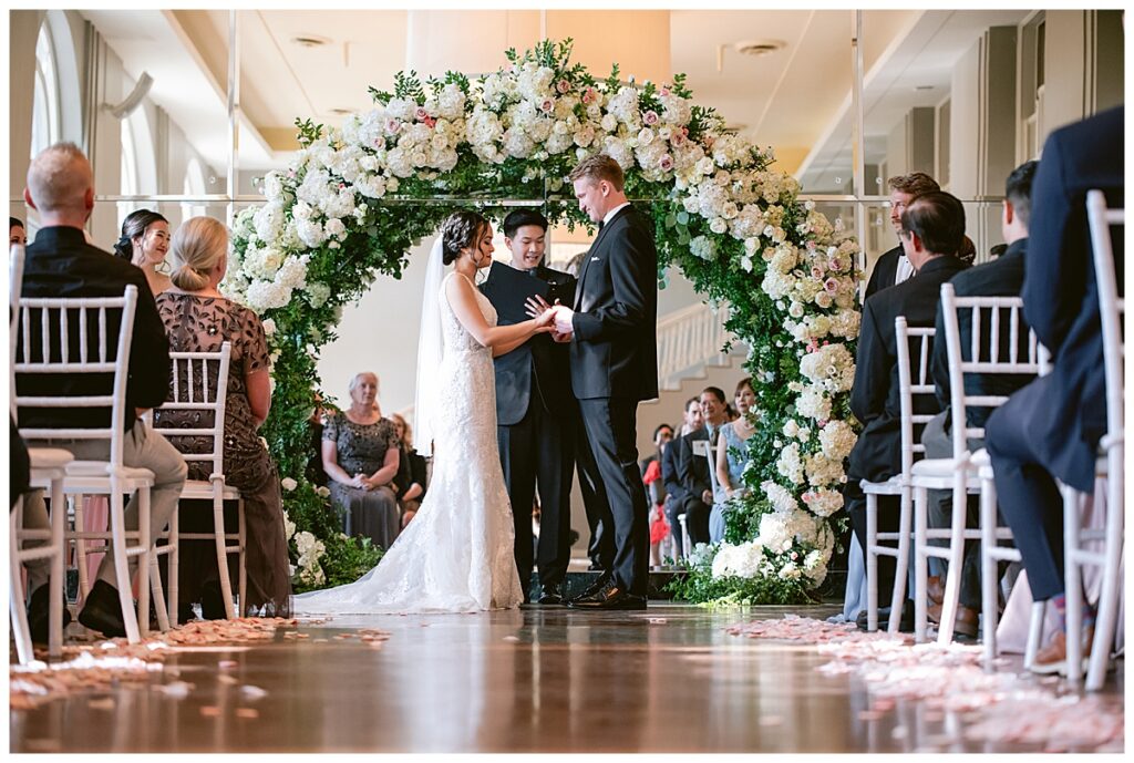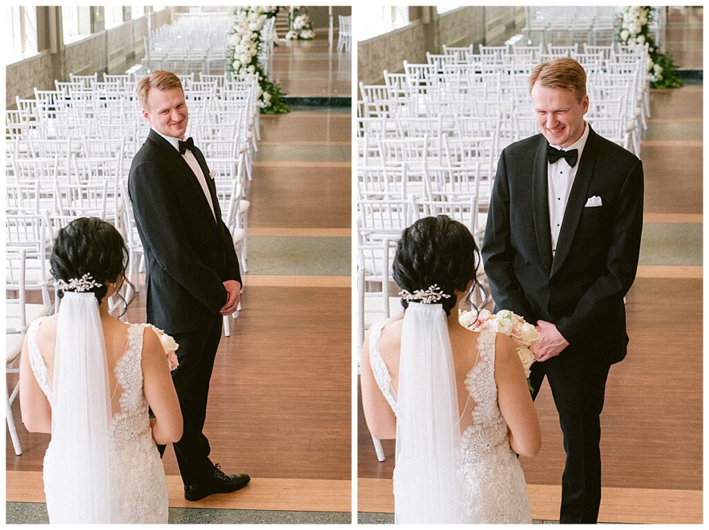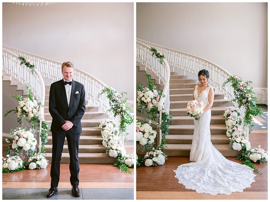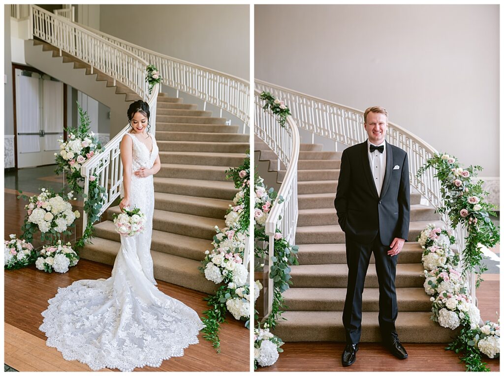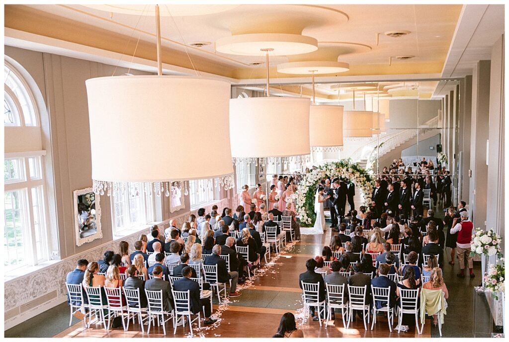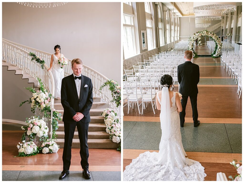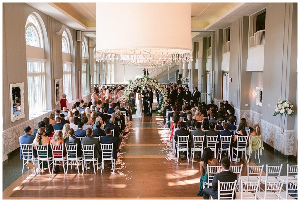 The ceremony began with Milada and her father walking down the grand staircase and Tim and Milada exchanged rings from Chalmer’s Jewelers and James Allen while their guests looked on. The couple were celebrated as they were pronounced husband and wife, and then greeted guests on the Solarium Terrace for hors d’oeuvres and then headed in for an incredible dinner provided by D’Amico Catering. Alexis of Rosewood Events and Weddings helped Tim and Milada’s wedding day vision come to life and the ceremony and reception space were absolutely stunning. After toasts and cake, the couple came to the dance floor for their first dance and Adagio kept the party going form guests all night long. We ended the night with a beautiful golden hour in front of the club and on the lake. Tim and Milada, congratulations. What a beautiful day we had.