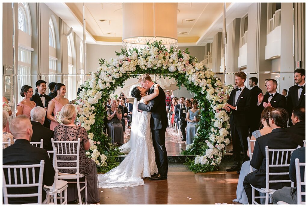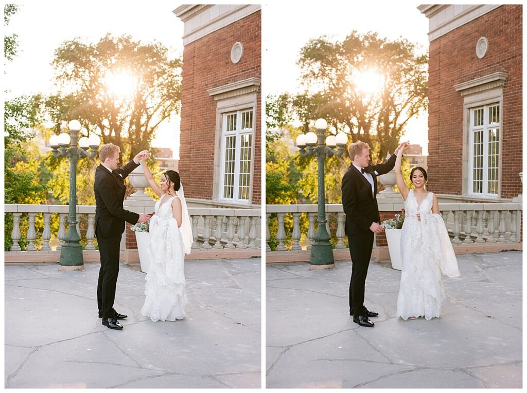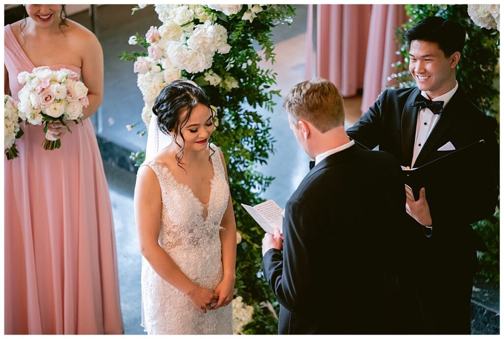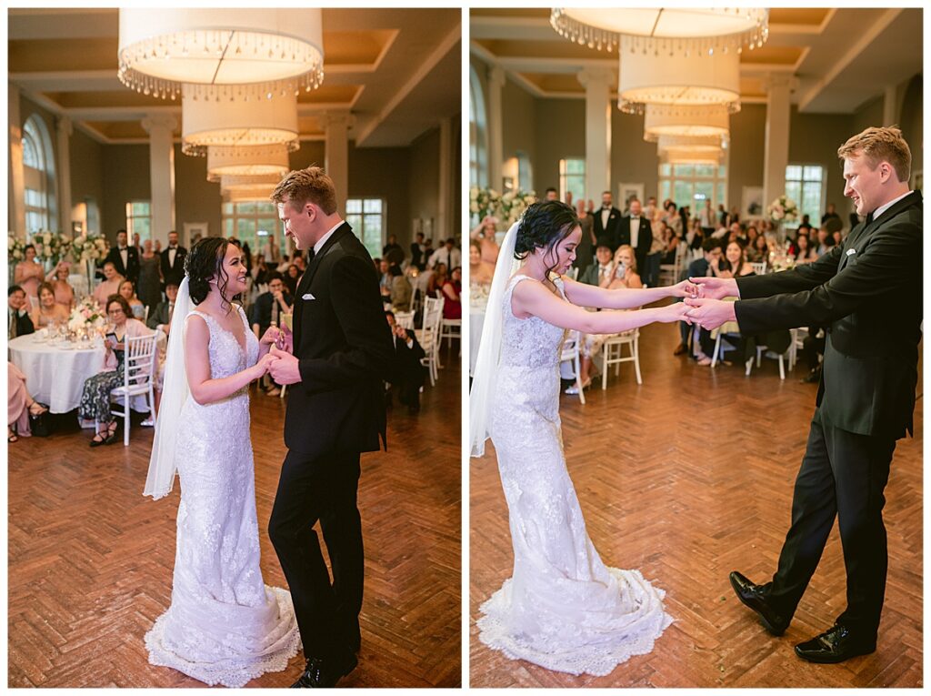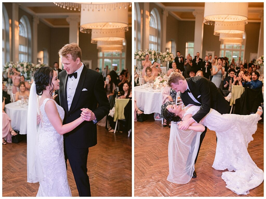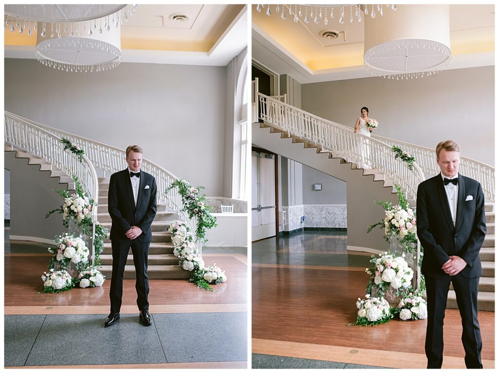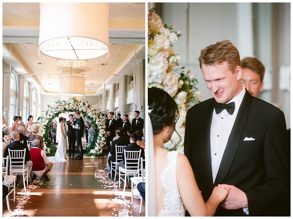 The ceremony began with Milada and her father walking down the grand staircase and Tim and Milada exchanged rings from Chalmer’s Jewelers and James Allen while their guests looked on. The couple were celebrated as they were pronounced husband and wife, and then greeted guests on the Solarium Terrace for hors d’oeuvres and then headed in for an incredible dinner provided by D’Amico Catering. Alexis of Rosewood Events and Weddings helped Tim and Milada’s wedding day vision come to life and the ceremony and reception space were absolutely stunning. After toasts and cake, the couple came to the dance floor for their first dance and Adagio kept the party going form guests all night long. We ended the night with a beautiful golden hour in front of the club and on the lake. Tim and Milada, congratulations. What a beautiful day we had.