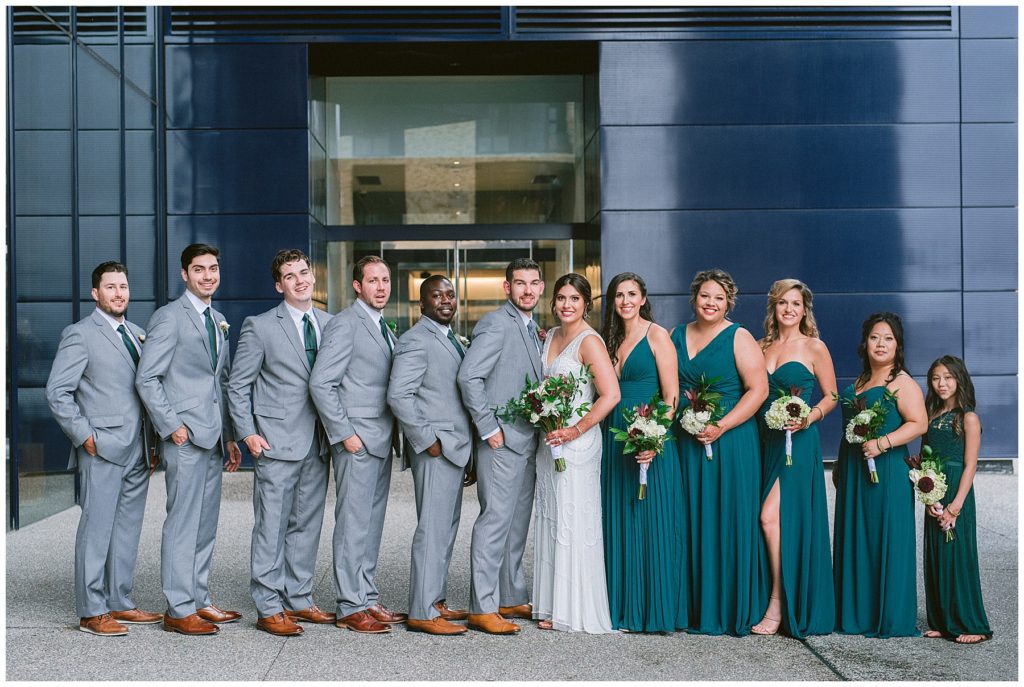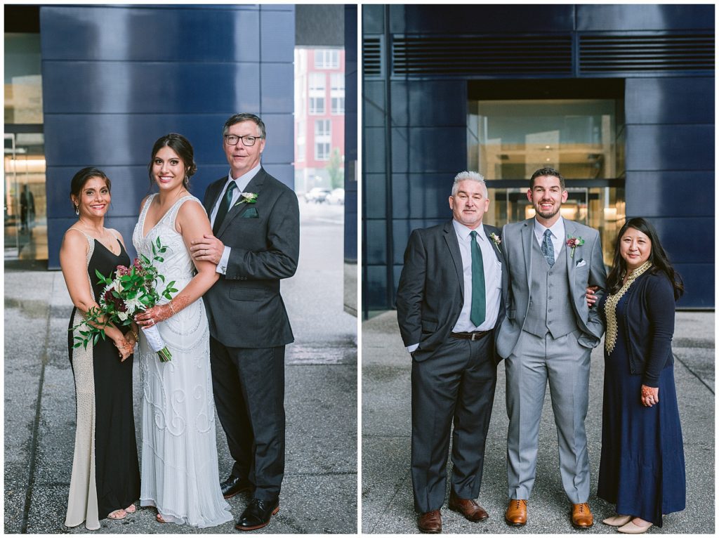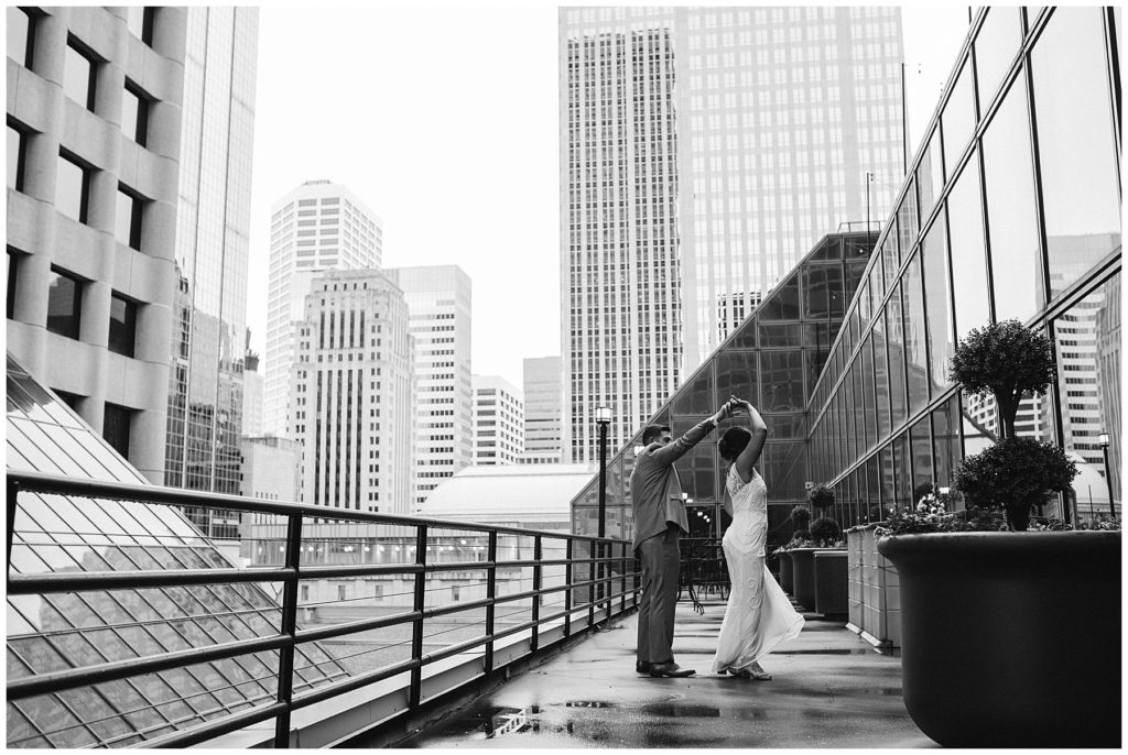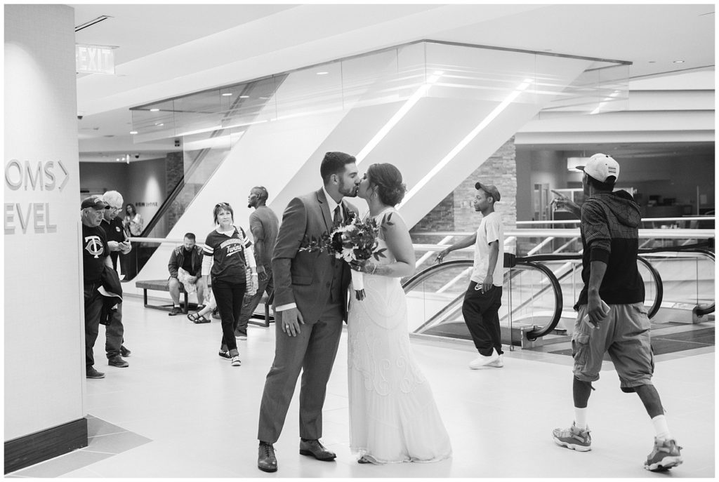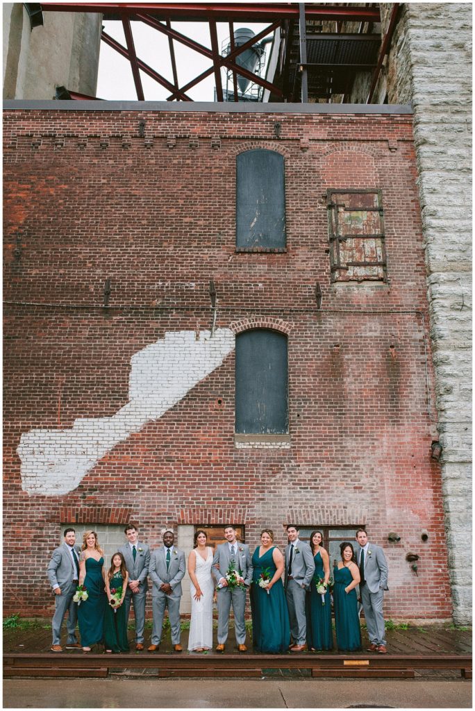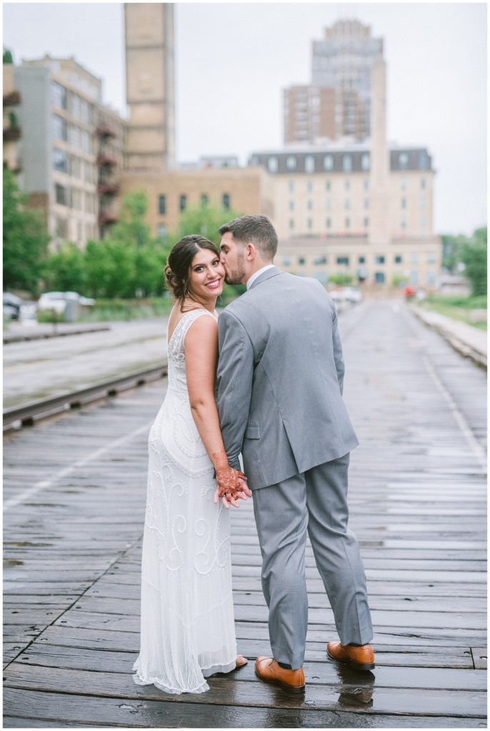 After the ceremony, the wedding party changed into Western attire as a surprise for guests and we headed downtown for photos. The weather took a turn for the worst and rains came just as we arrived at the Guthrie Theater. Thankfully we were able to used the beautiful space for group and family photos and by the time we finished, the rain cleared and we were able to head around Mill City for photos.