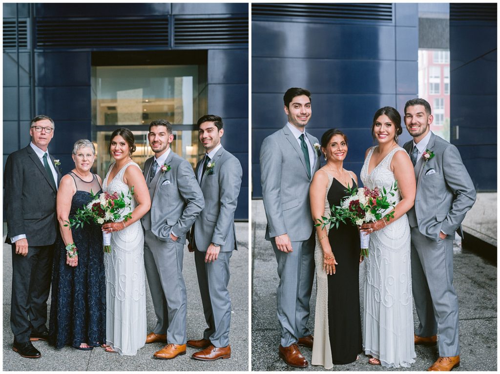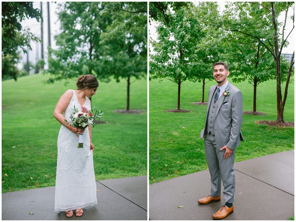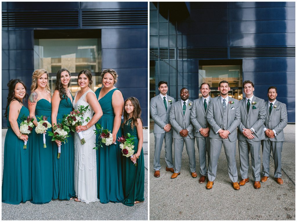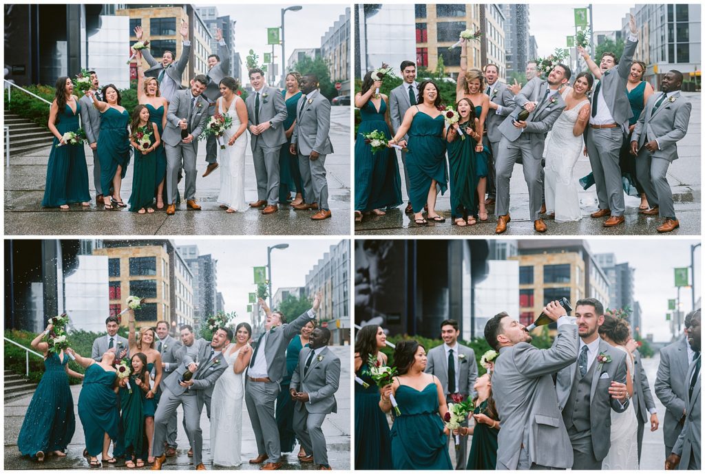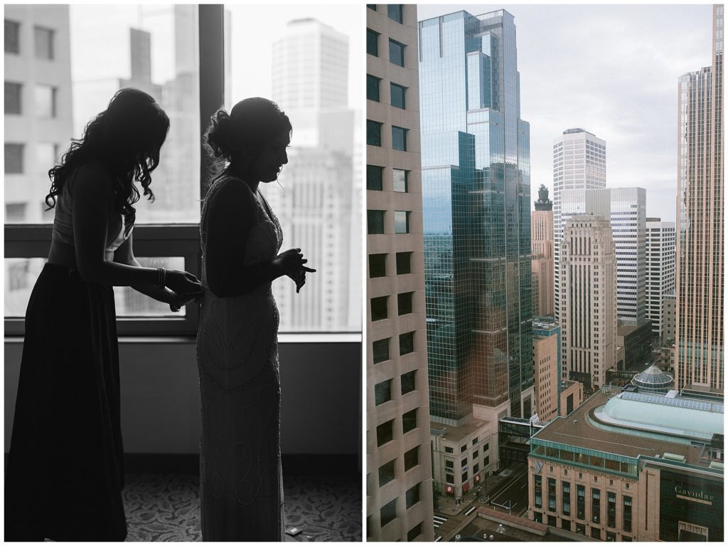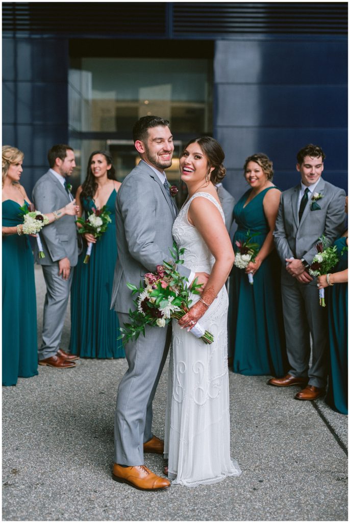 After the ceremony, the wedding party changed into Western attire as a surprise for guests and we headed downtown for photos. The weather took a turn for the worst and rains came just as we arrived at the Guthrie Theater. Thankfully we were able to used the beautiful space for group and family photos and by the time we finished, the rain cleared and we were able to head around Mill City for photos.