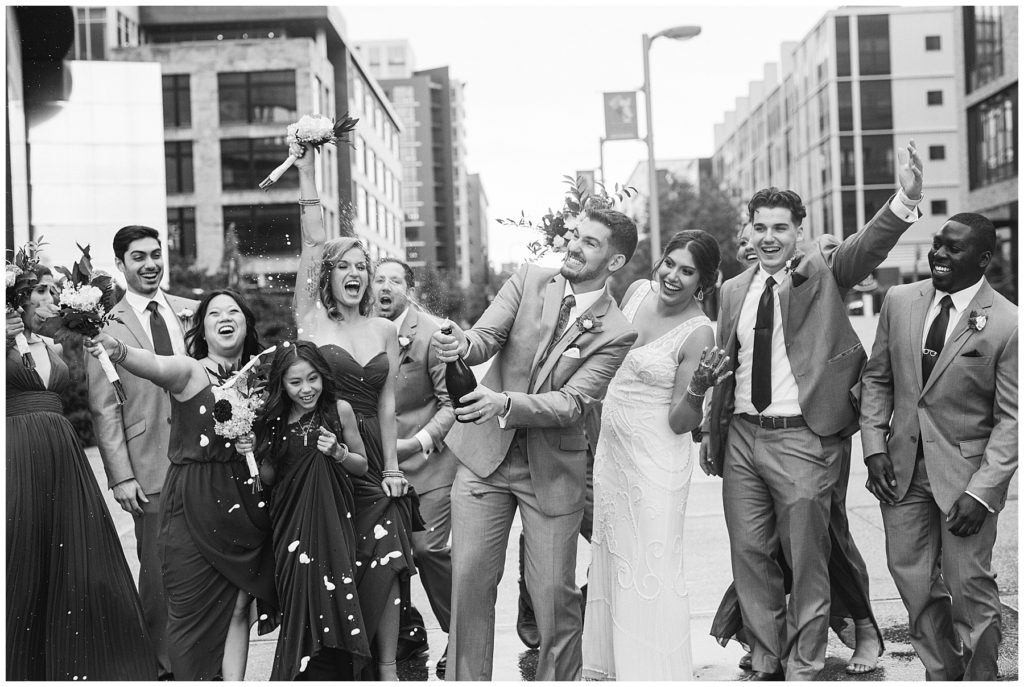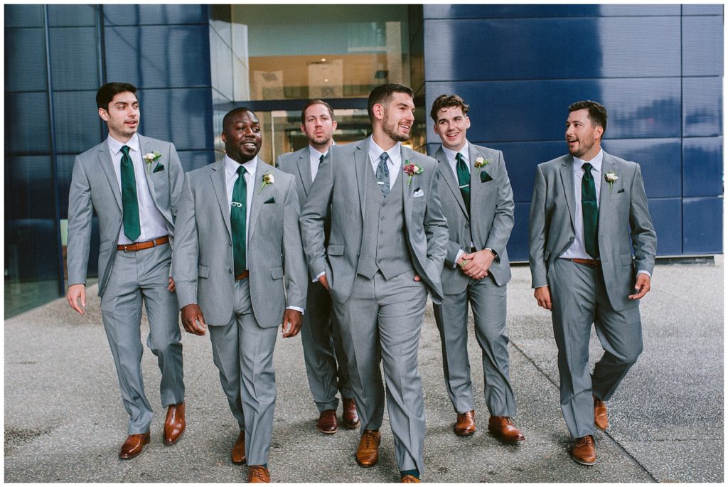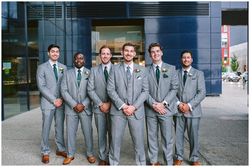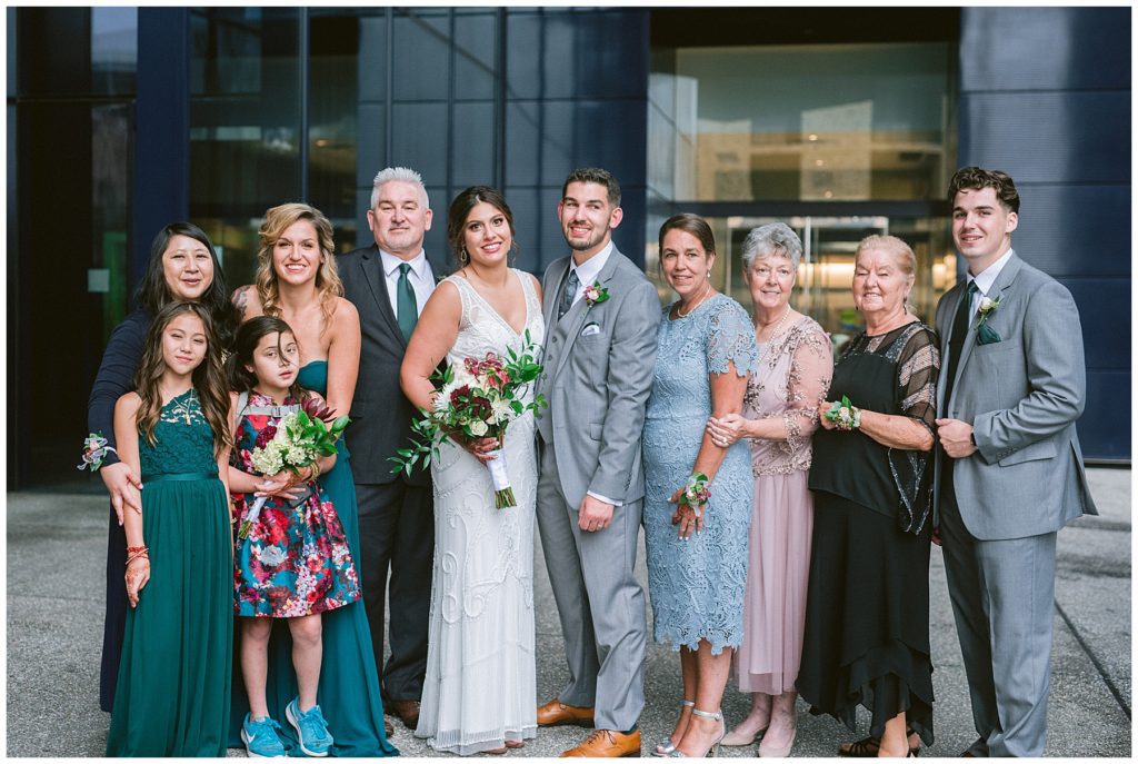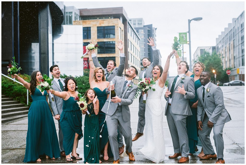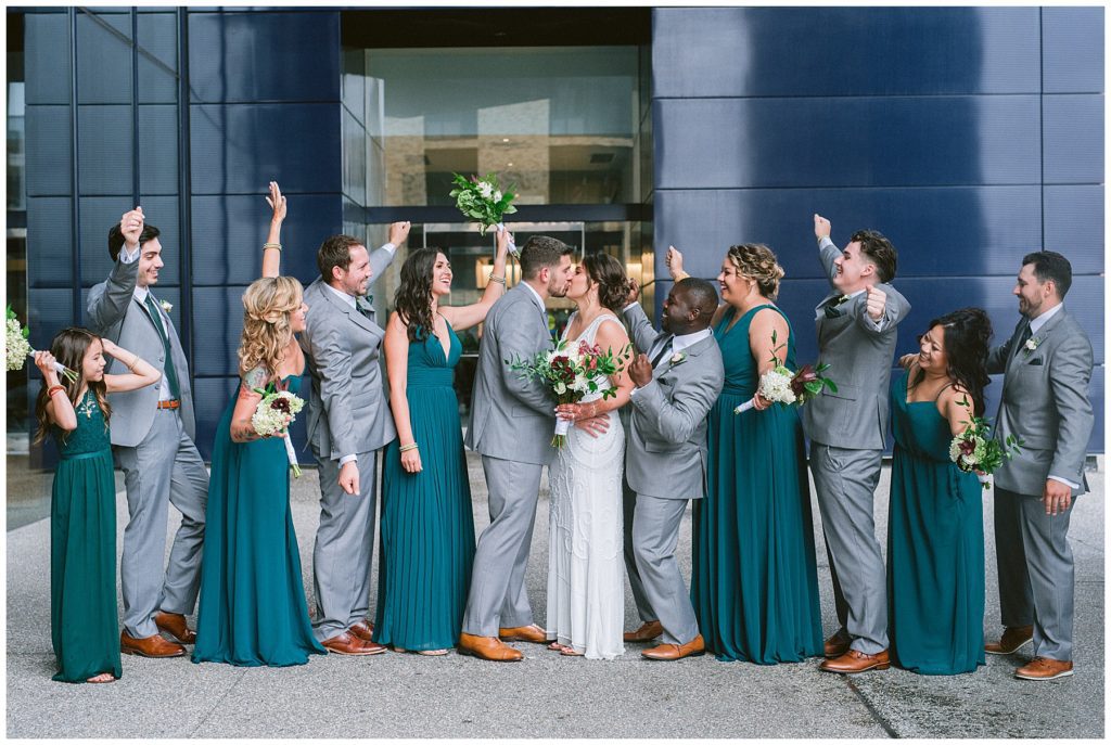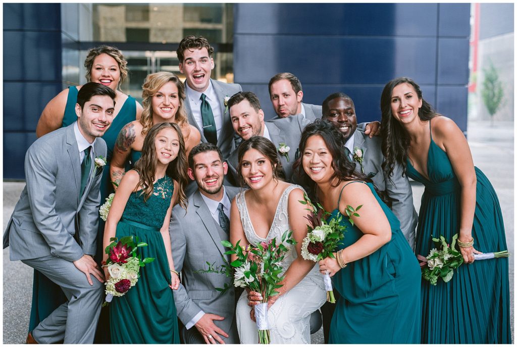 After the ceremony, the wedding party changed into Western attire as a surprise for guests and we headed downtown for photos. The weather took a turn for the worst and rains came just as we arrived at the Guthrie Theater. Thankfully we were able to used the beautiful space for group and family photos and by the time we finished, the rain cleared and we were able to head around Mill City for photos.