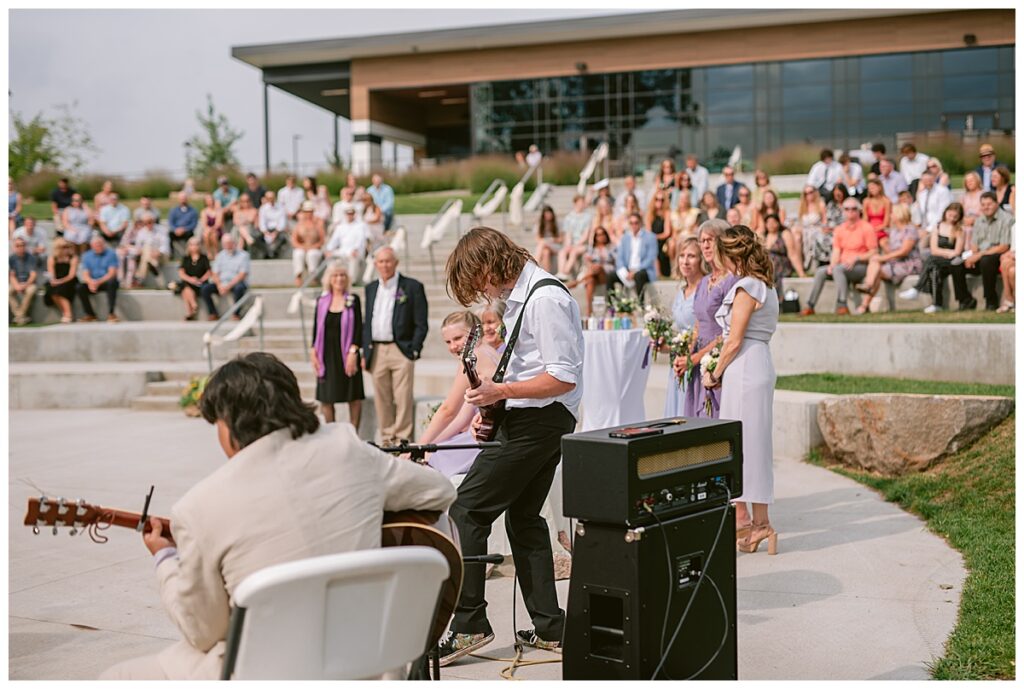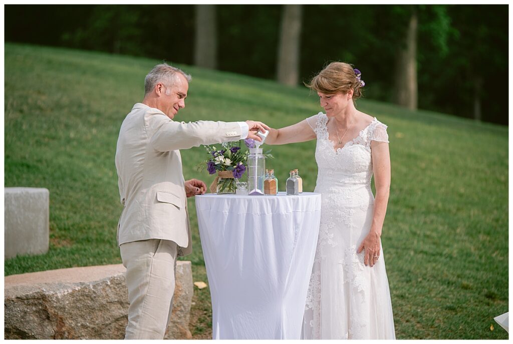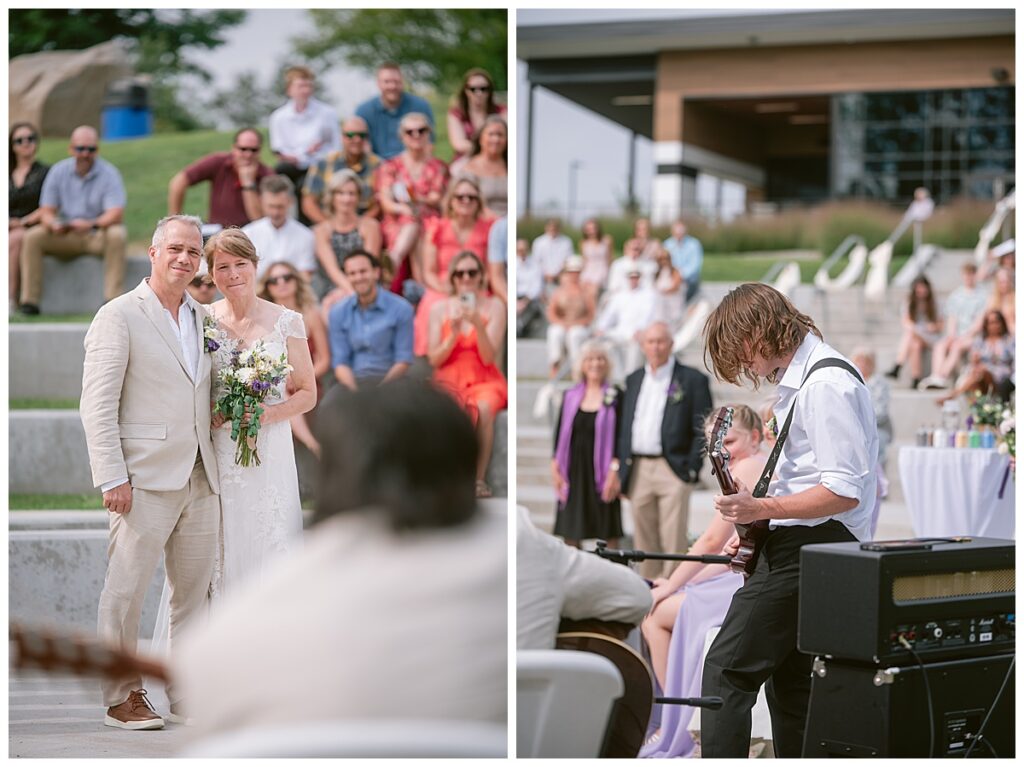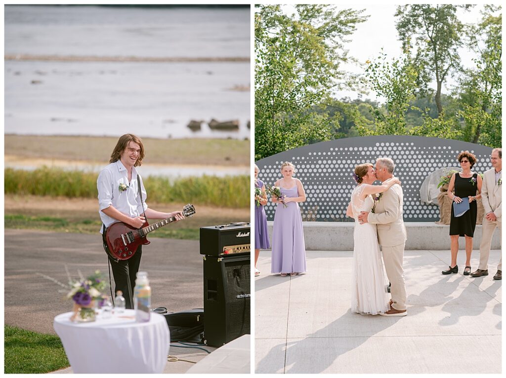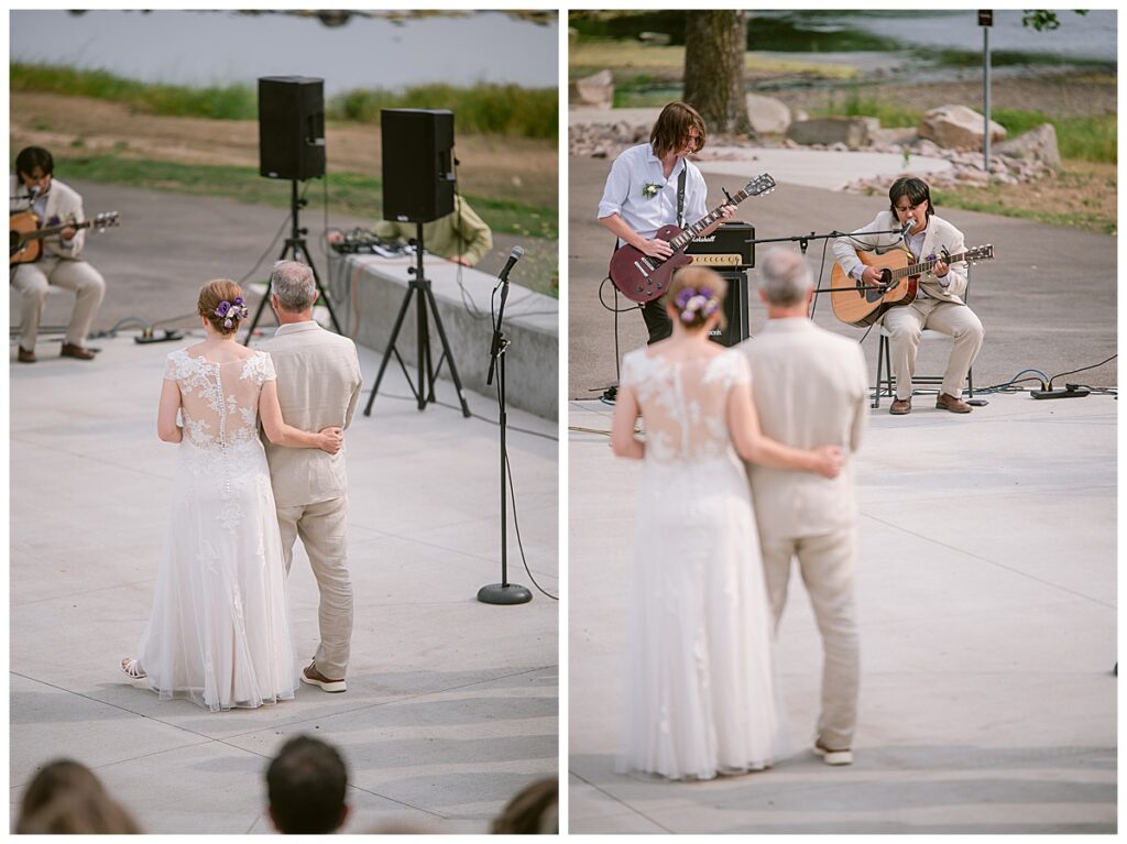 Friends and family came from near and far to celebrate the couple exchange vows. Jonathan‘s sister-in-law, Jessica, officiated their beautiful ceremony while Jonathan‘s son, Alex and nephew Rowan, played a heavy metal piece for the couple, and a sand ceremony was done to show the blending of the two families Jonathan and Dana chose to exchange rings from Bergstrom Studio and ended the ceremony with a kiss while guests celebrated with the couple.
