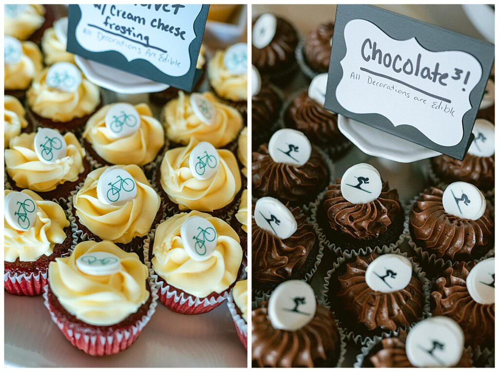 The cocktail hour was followed by tasty Thai and Filipino food from Arroy Thai, and Megan Johnson of Little Sister Bake Shoppe created the most perfect cake and cupcakes, complete with decals of skis, bikes, and kayaks for guests to enjoy. Jonathan and Joe of Harmony DJ Entertainment brought the party to life and all enjoyed time together to celebrate this beautiful couple. Congratulations, Dana and Jonathan, it was a joy to work with you. I hope you enjoy your honeymoon in Greece!